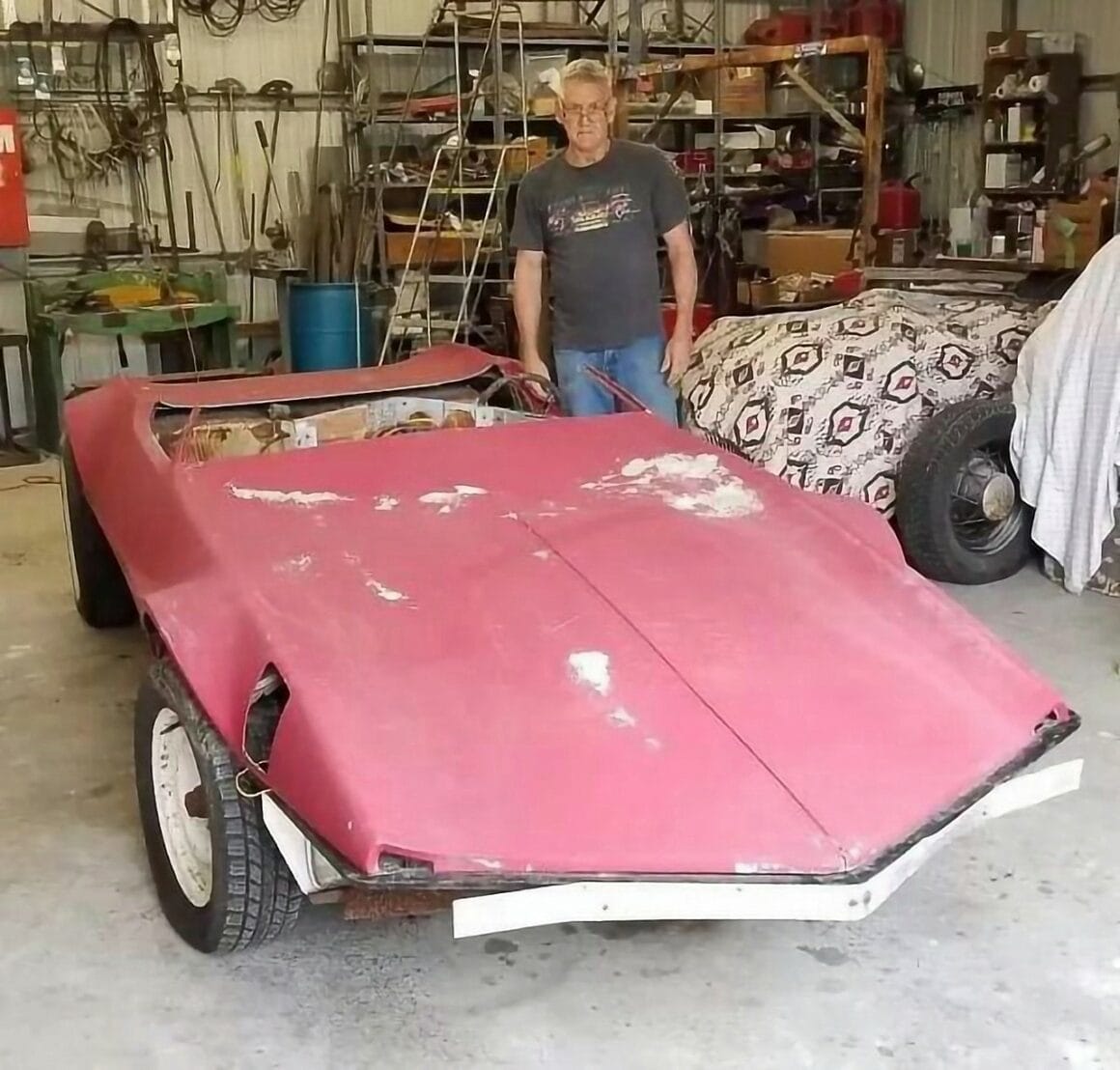 Malheureusement, Ray Cannara n’a pas reçu le crédit pour son influence sur l’avenir du design automobile dans le monde, il a gardé son chef d’œuvre dans le box garage ou il avait été construit jusqu’à la fin des années 1970, date à laquelle il l’a vendu par besoin de liquidités. Après une utilisation dans des conditions inconnues, le Hot Roadster “Cannara Wedge” finira ensuite stocké sur un terrain vague pendant de nombreuses années jusqu’à ce qu’il soit redécouvert par Geoff Hacker de Undiscovered Classics en 2016. Le principal problème rencontré par Geoff Hacker était que, lorsqu’il a découvert l’épave du Cannara Wedge, personne ne savait ce que c’était. Il a échangé un kit Cimbria pour avoir la propriété de cette épave et est retourné à son garage à Tampa, en Floride, puis a commencé à tenter d’en retracer l’histoire. Il avait remarqué le point de pivot inhabituel des portes et avait deviné qu’elles avaient été conçues et construites par un professionnel, et non par un amateur de jardin. Il s’est avéré qu’il avait plus raison qu’il n’aurait pu l’imaginer.