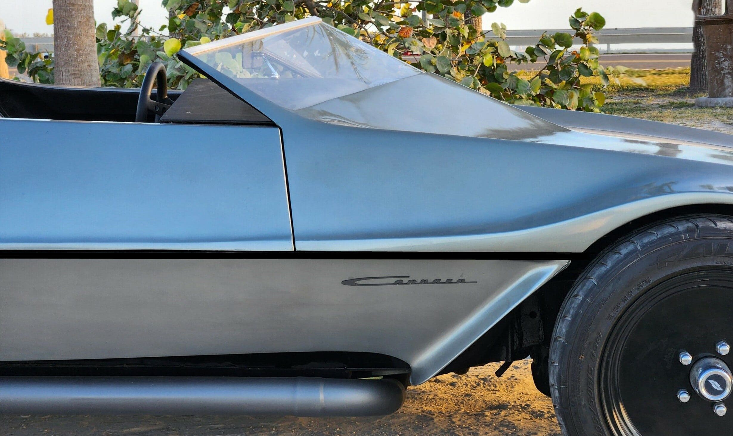 Il n’a pas dit que l’engin était la création de Ray Cannara. Nombreux sont ceux qui ont désigné la Bizzarrini Manta de Giorgetto Giugiaro ou l’Alfa Romeo Carabo de Marcello Gandini comme les premières voitures en coins issues de ce qui est une sorte d’escroquerie, alors que automobiles ont toutes deux fait leurs débuts en 1968, deux ans après que Ray ait terminé sa voiture et l’a conduite à travers les États-Unis avec sa mère se tenant à un fusil de chasse qui servait de poignée de retenue au tableau de bord… “Ce qui est de plus en plus évident” en avait dit Raffi Minasian, designer automobile et juge du Concours d’élégance de Pebble Beach, “c’est que ce design est clairement l’un des premiers de ce type, mais plus précisément, c’est la première voiture à embrasser/ réaliser complètement tous les aspects de la conception “en coin”, plutôt que d’utiliser simplement des éléments de conception vectoriels ou linéaires. Ce design est l’adoption pleine et entière du thème “en coin”, à la fois en tant que direction conceptuelle et en tant que voiture complète”...