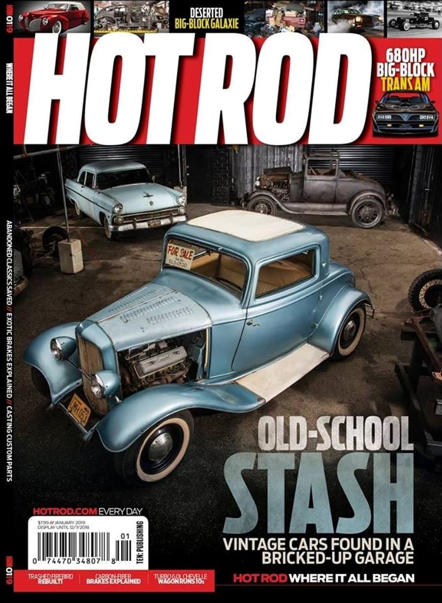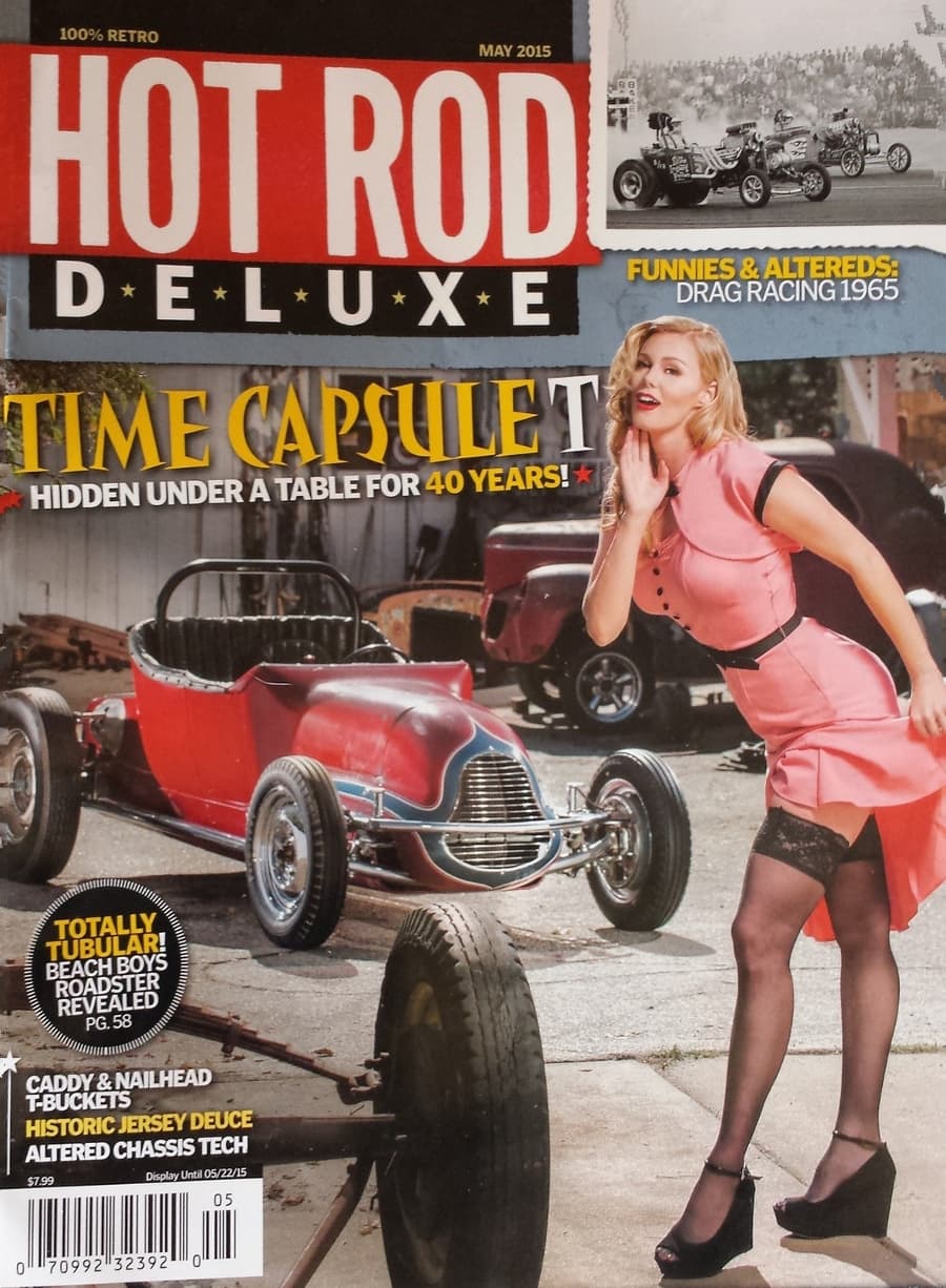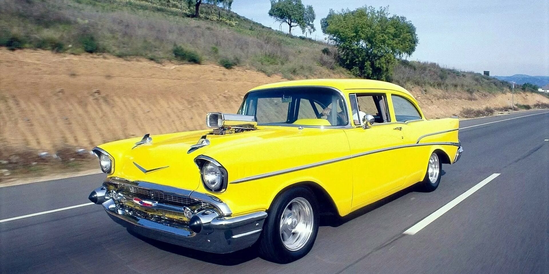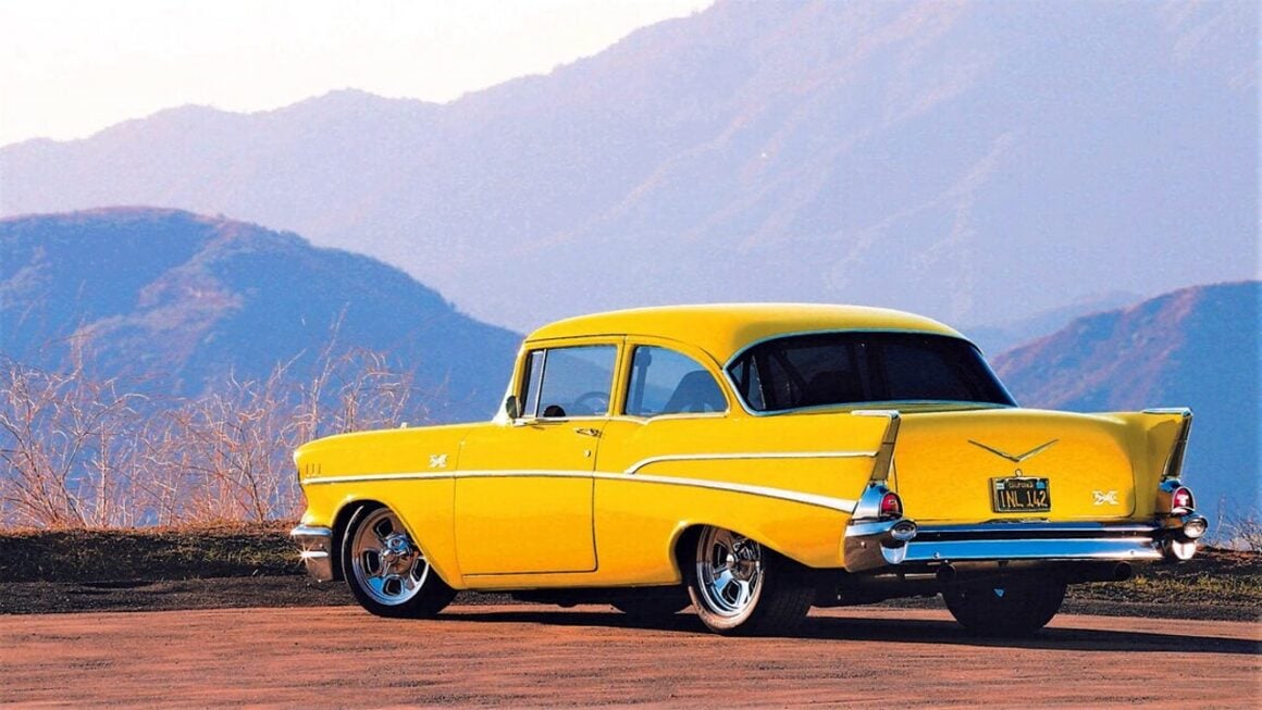 Elle avait été un Coupé jaune Two-doors Chevy Bel-Air “Hot-Roddisée”, équipée d’un gros V8 glougloutant pour servir la cause et la promo du magazine Hot-Rod, le “Number One” de la presse dédiée aux Hot-Rods, Street-Machines, Muscle-Cars aux USA. Le magazine Hot-Rod n’est pas une création perso, il a été pompé/copié/plagié du magazine Throttle après la guerre de ’40’45 par Robert Petersen ! Un vol cynique immoral et irrespectueux qui va le rendre milliardaire (même format, même look, mêmes couleurs, même présentation, même sujets et clientèle).