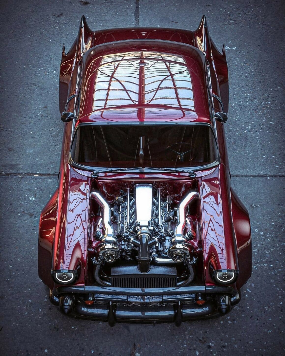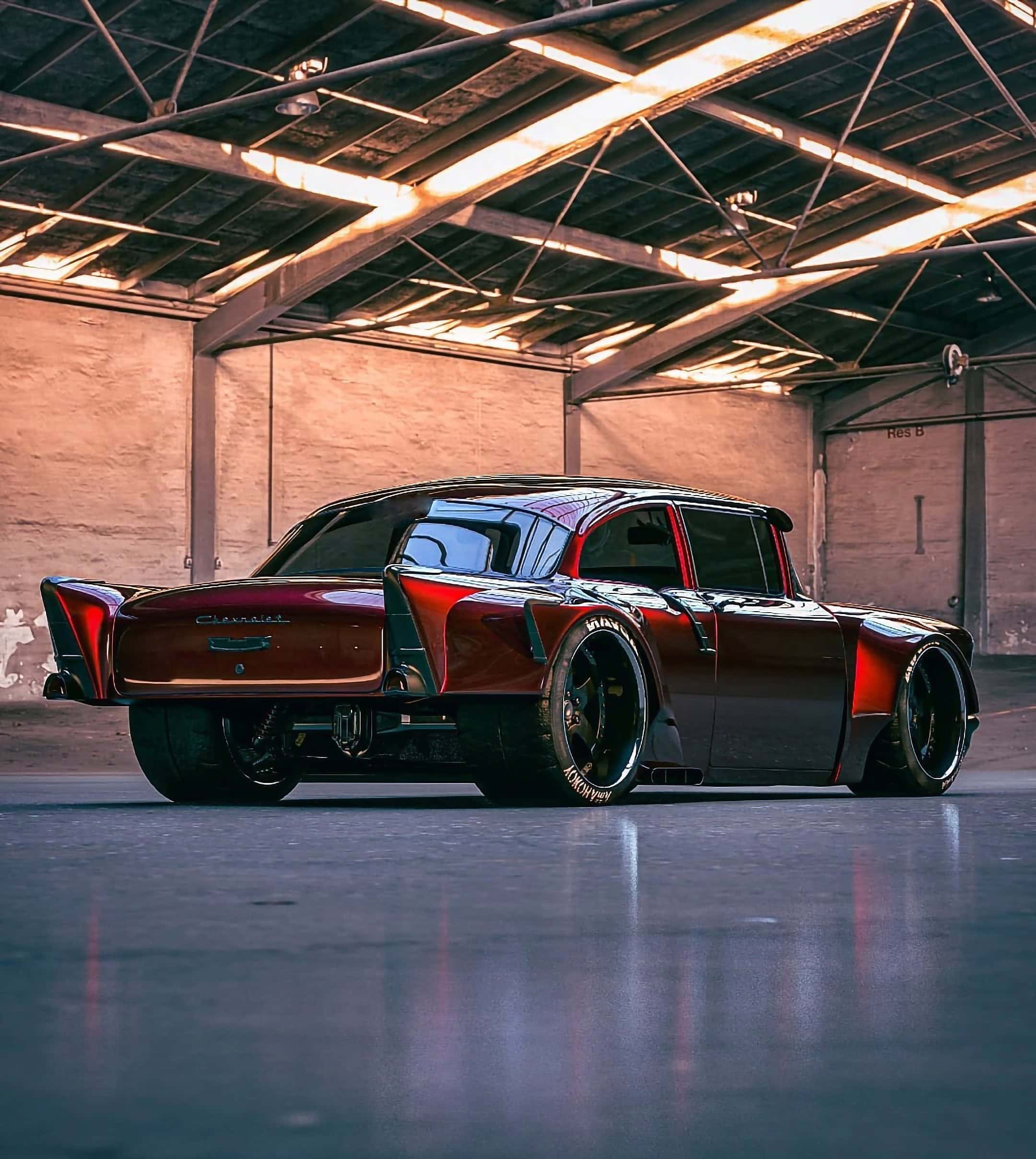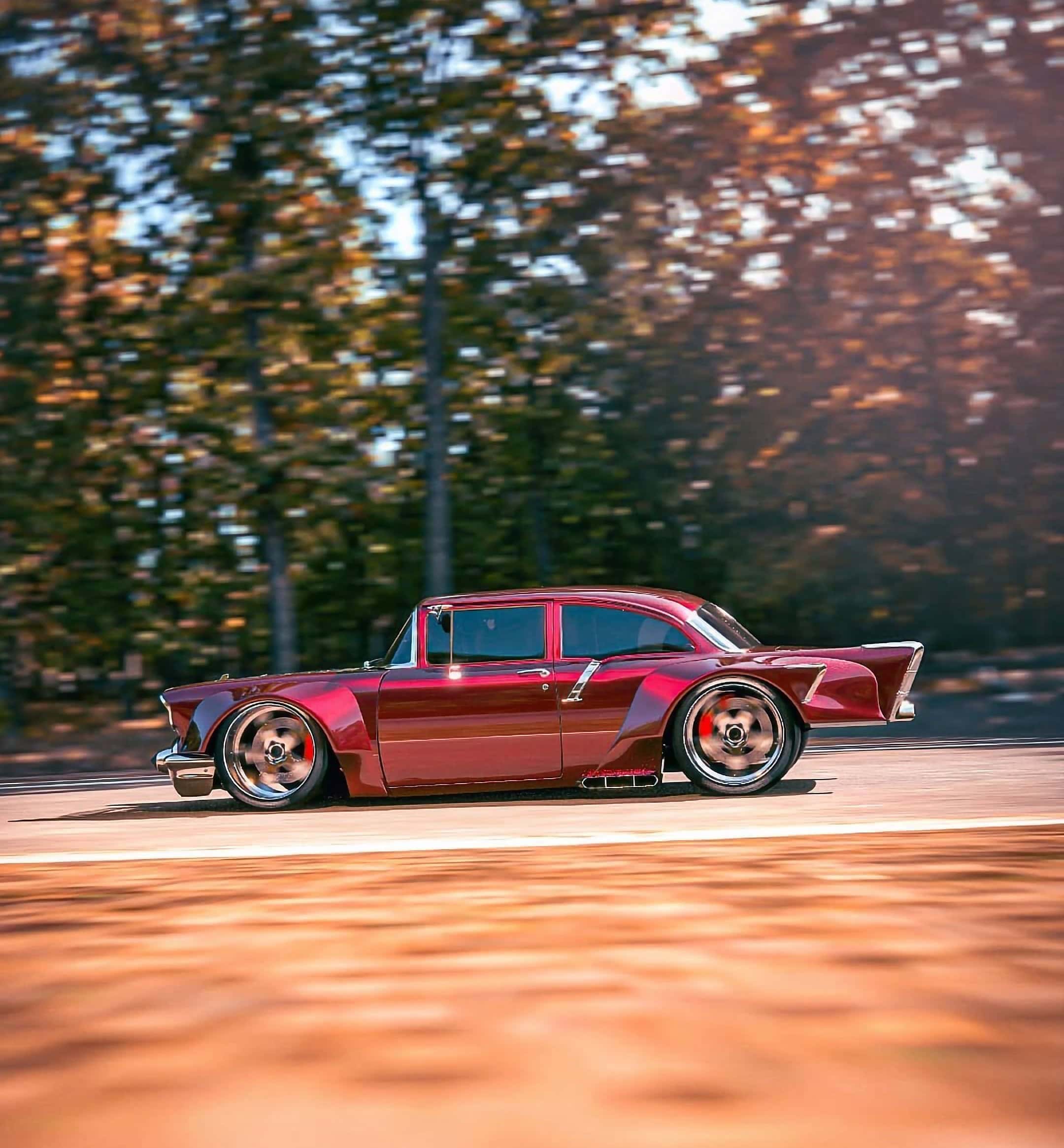 Au crépuscule de sa carrière en 1957, elle était surtout remarquable pour les débuts du V8 à petit bloc 283ci de Chevrolet. Maintenant, Timothy Adry Emmanuel, maître des pixels a décidé d’un retour exceptionnel en frappant le monde de l’imagination automobile avec sa vision d’une Chevy 1957 Hell-Air, équipée de toutes les cloches et sifflets du Hot Rodding dans une version impossible. Notez la position allongée qui voit le gros-porteur ’57 One-Fifty tomber au sol à tel point que même les fourmis craindraient pour leur propre vie. Ensuite, vérifions d’abord l’arrière. C’est là que réside un ensemble de caoutchoucs plus larges que nature ainsi qu’un peu de stéroïdes NASCAR via le système d’échappement latéral Boom Tube. Ohhhhhhhhh ! Maintenant, vous pouvez boucler la boucle et rêver. Ai-je oublié quelque chose ? l’Habitacle ? Ahhhhhhhh !Plus que probablement pas puisque, malheureusement, il n’y a pas de vue intérieure à proprement parler…
