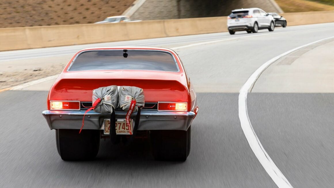 Je me dois d’être honnête, chers internautes qui avez payé sans souciller l’euro demandé, malgré la crise économique qui vous frappe au portefeuille : Bradley ne fait pas des tonnes de kilomètres avec la voiture, mais il l’a conduite dans les rues. La Nova dispose d’un système d’alimentation en état de marche qui lui permet de parcourir une distance décente et Bradley conduit généralement la voiture à la station-service locale pour la remplir de carburant à indice d’octane 93. Il y a un petit réservoir à l’avant et un plus grand réservoir de 14 gallons situé derrière le siège comme capacité supplémentaire. Le réservoir arrière alimente le réservoir avant, qui à son tour alimente le moteur via une pompe mécanique.