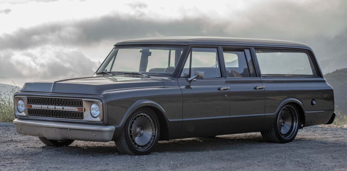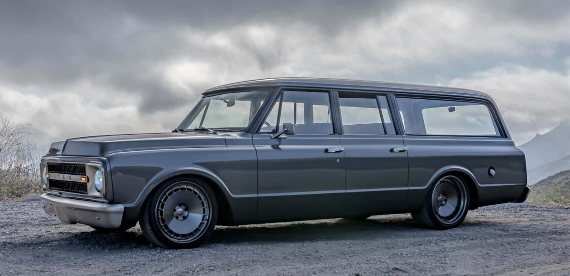 Egalement aux lois scientifiques, toujours conçues, sans qu’on en ait clairement conscience, sur le modèle des lois juridiques. Toujours est-il que pour en revenir au Suburban ’70 original, il me faut vous écrire qu’il est arrivé en plein milieu de la septième génération de 1967 à 1972. Il s’agissait d’une plate-forme robuste avec une carrosserie sur châssis et un choix de deux ou quatre roues motrices. L’acheteur de ce Suburban Reformer voulait cependant aller dans une direction complètement différente. En plus que d’être capable de faire du tout-terrain, l’acheteur voulait qu’il soit bas de ligne comme collé à la route, et cette bête fait toutes ces choses.