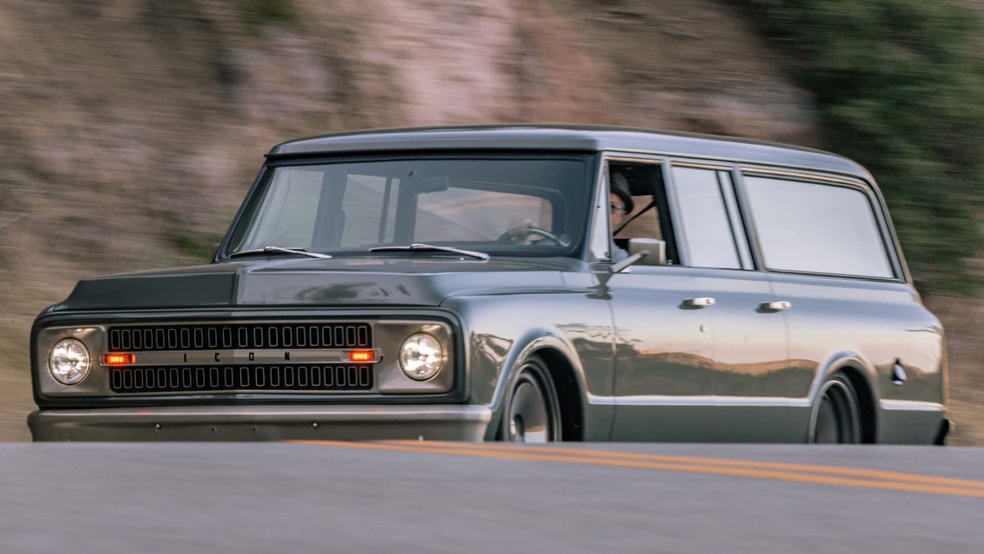 Il a fallu 50 heures rien que pour usiner la calandre en aluminium… et Jonathan Ward a imaginé pour cela un design inspiré de l’architecte Mies van der Rohe. Le VUS a également reçu des pièces redessinées pour les poignées de porte, le tableau de bord, le volant et à peu près toutes les garnitures. Les roues sont des pièces personnalisées de HRE. L’acheteur voulait du pouvoir et Icon le lui a donné… Nelson Racing Engines a construit un V8 biturbo de 427ci basé sur le moteur Chevy LS. Il développe maintenant 1.000cv avec 900 lb-pi de couple. La puissance est transmise à l’arrière via un pont Dana 60 par l’intermédiaire d’une boîte automatique à quatre rapports.