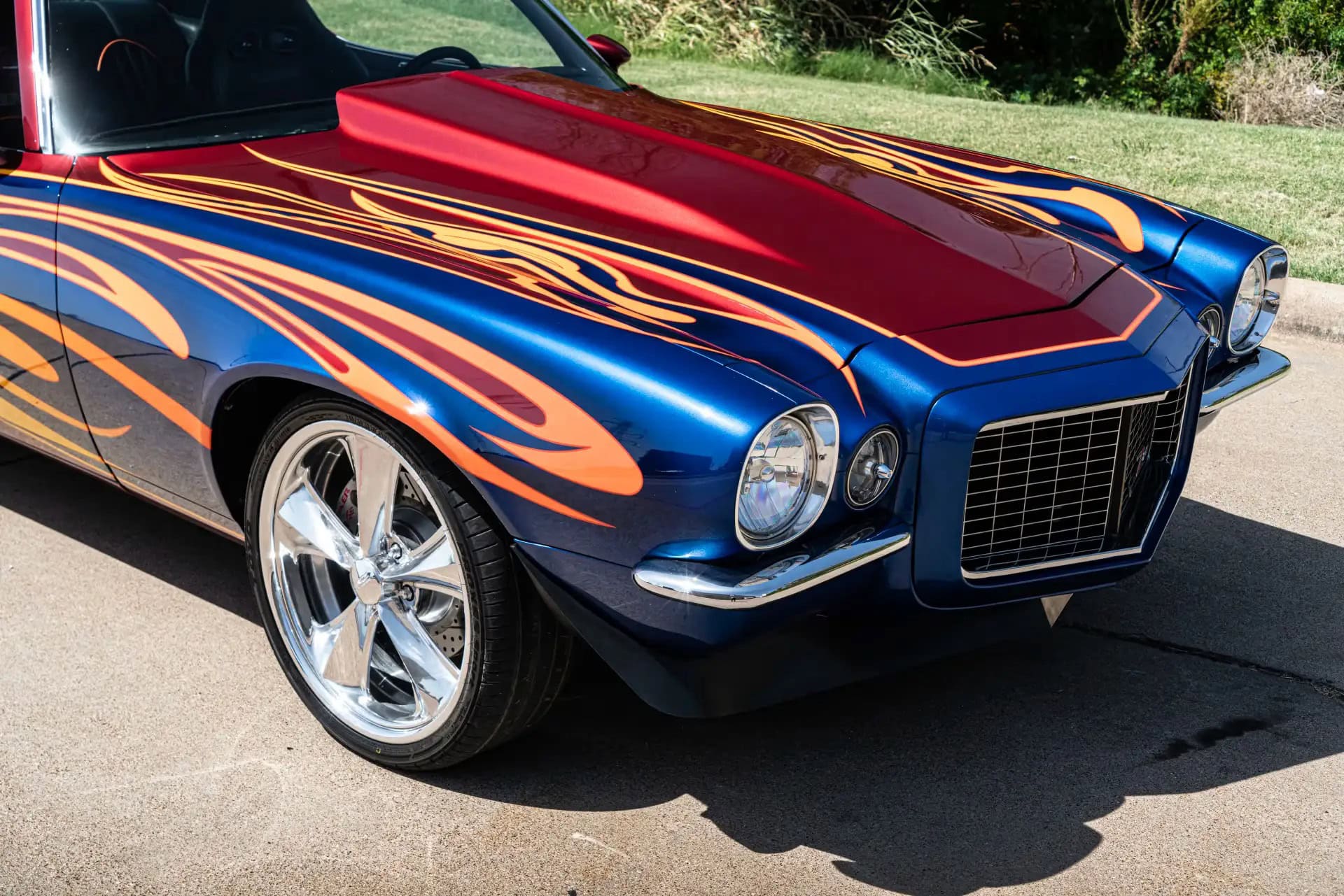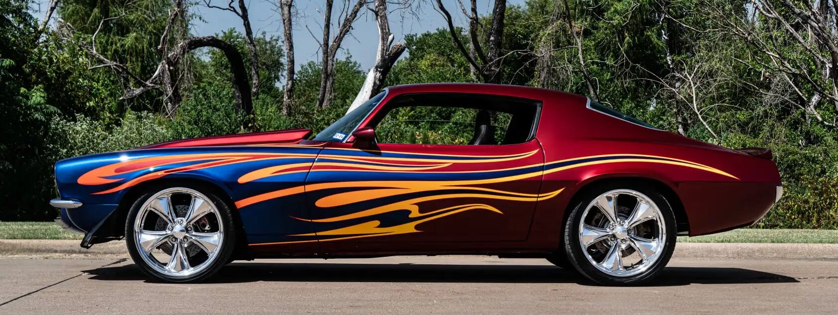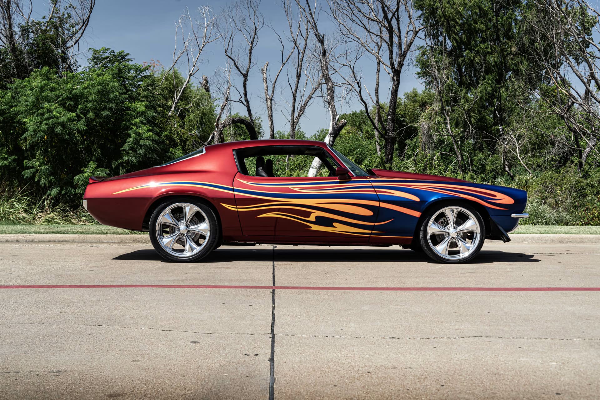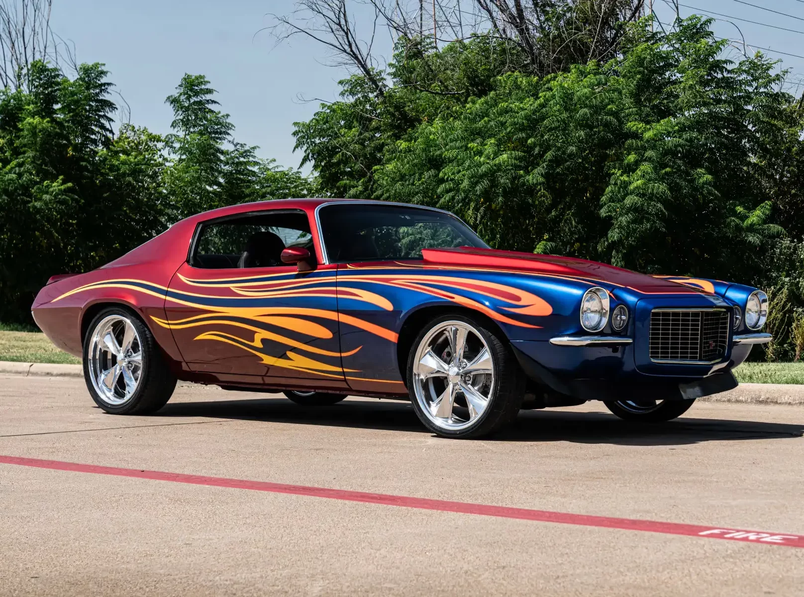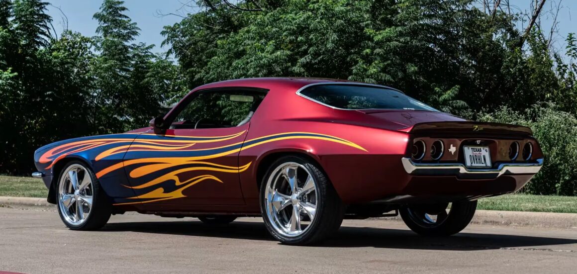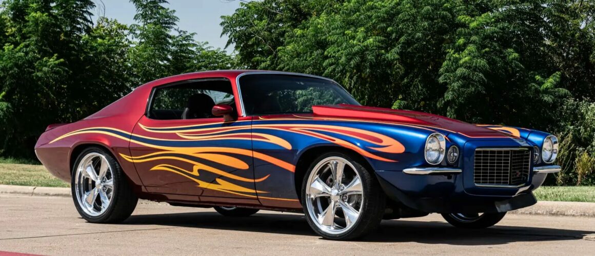 Cela me spermet malgré-tout de réaliser quelques saillies en rapports non-protégés… Ces automobiles ayant toutes plus de 18/20 ans et étant consentantes des tortures infligées, mes rares détracteurs n’auront donc pas le prétexte d’attaques en règles pour viols répétitifs… Cette Chevrolet Camaro Z28 de 1971 a été sélectionnée pour débuter ce renouveau qui n’ira pas qu’à se limiter à des légendes/photos à cause de son travail de flammes, le plus cool jamais vu.