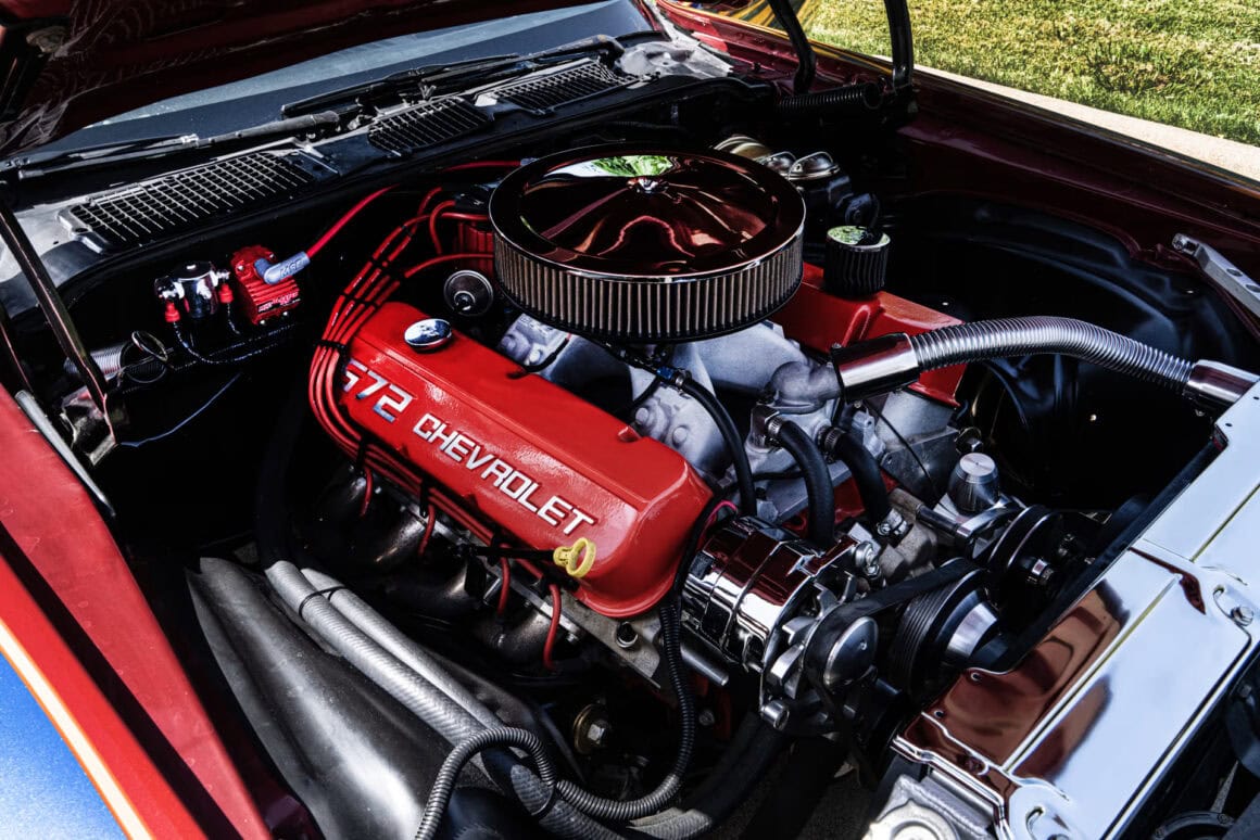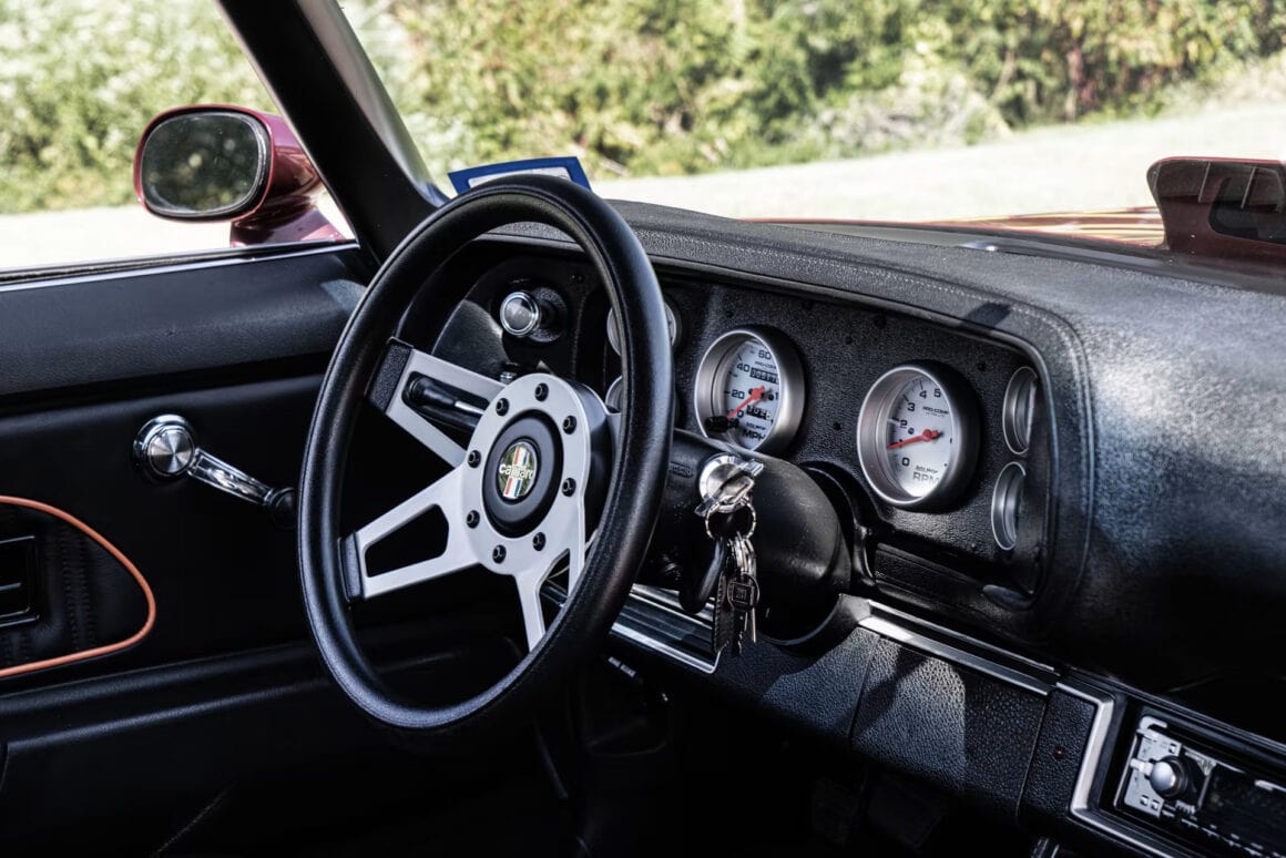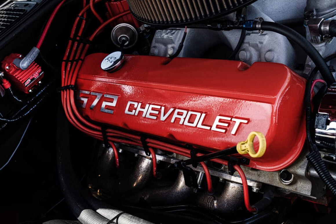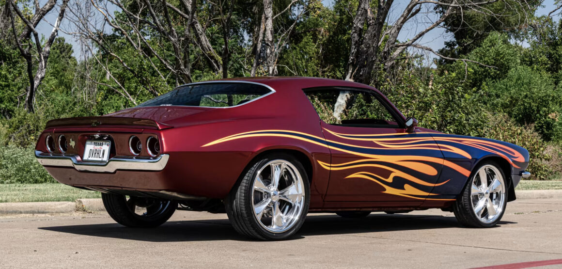 Ce n’est pas vieux comme les délires de la Bible, mais ce n’est pas d’hier… Que soit… Outre l’extérieur qui crie “Hot Rod”, c’est une construction décente à défaut d’être récente. Sous les flammes oranges et bleues se trouve un Big Block GM Performance 572ci. Il s’agit d’un moteur récent, pas celui qui était dans la voiture lorsque Foose l’a modifiée. Ce V8 cracheur de feu développe 600cv et est relié à une Muncie M21 manuelle à 4 vitesses avec un levier Hurst.