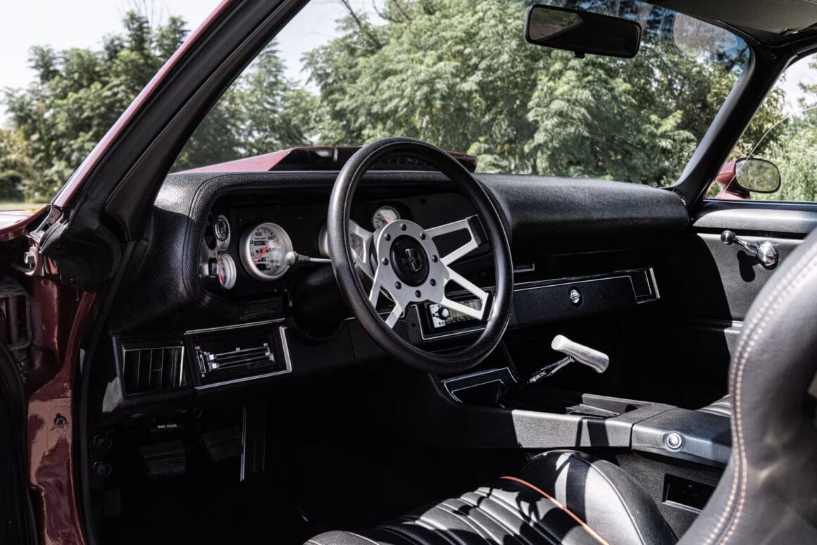 Il envoie “la purée” à un pont arrière Currie de 9 pouces. Il a également d’autres améliorations du châssis comme les freins à disque Baer aux 4 roues et une suspension modifiée avec des barres stabilisatrices avant et arrière Hotchkis. Vous remarquerez peut-être également qu’il dispose d’une conversion frontale de 1970… La nouvelle exposition du Musée Automobile Savoy proposait jusqu’il y a quelques mois de découvrir le garage de Chip Foose.