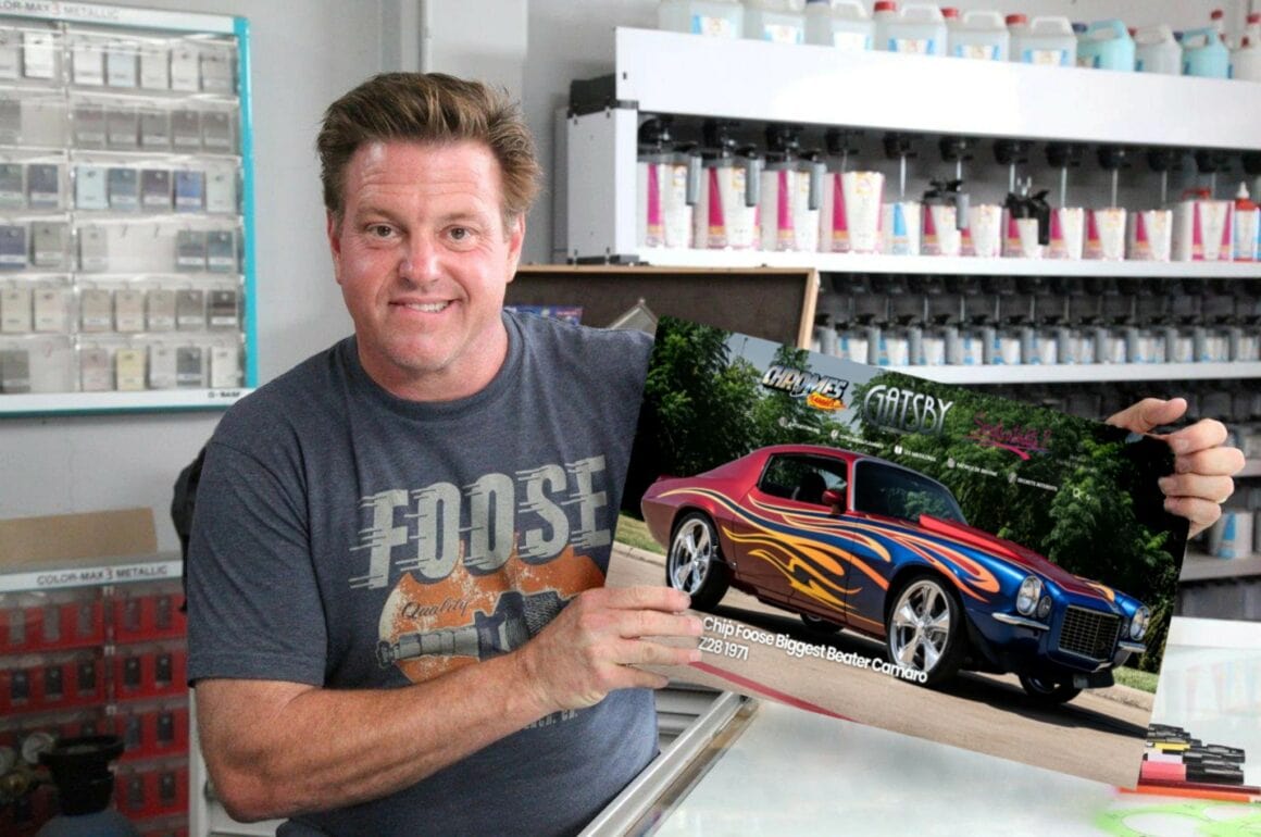 Chip est un célèbre designer-carrossier automobile américain qui a travaillé pour plusieurs entreprises majeures du domaine aux USA, avant de créer Foose Design à la fin des années 1990. Lauréat de nombreuses récompenses pour ses créations, exposant régulier au SEMA Show de Las Vegas, Chip Foose a customisé principalement des voitures américaines, modifiant les carrosseries en restant dans l’esprit de l’auto et modernisant les parties mécaniques.