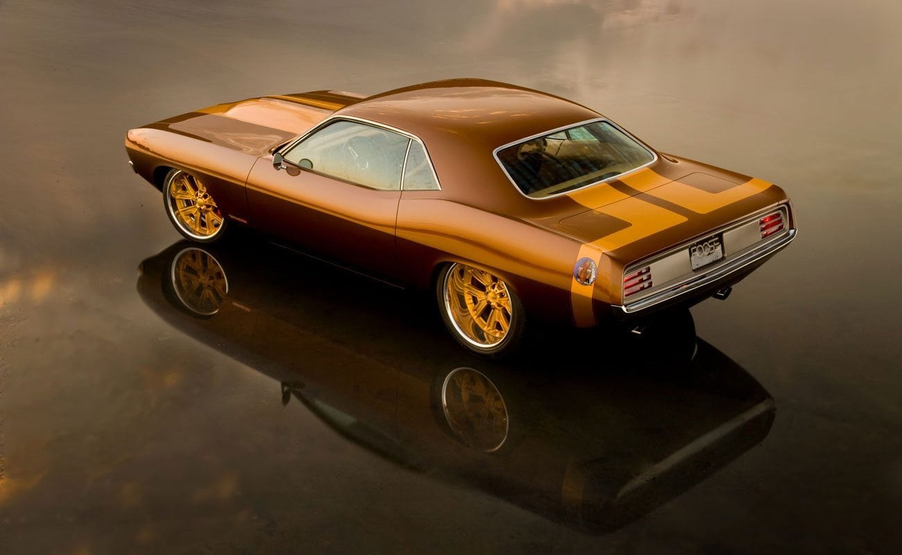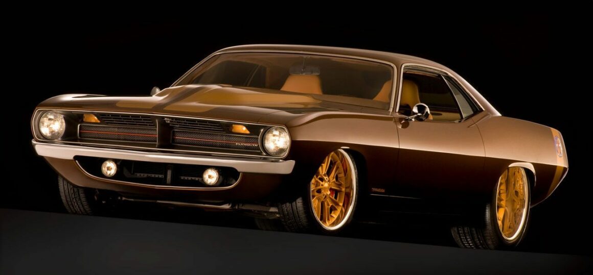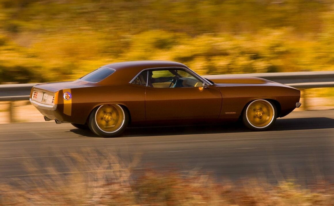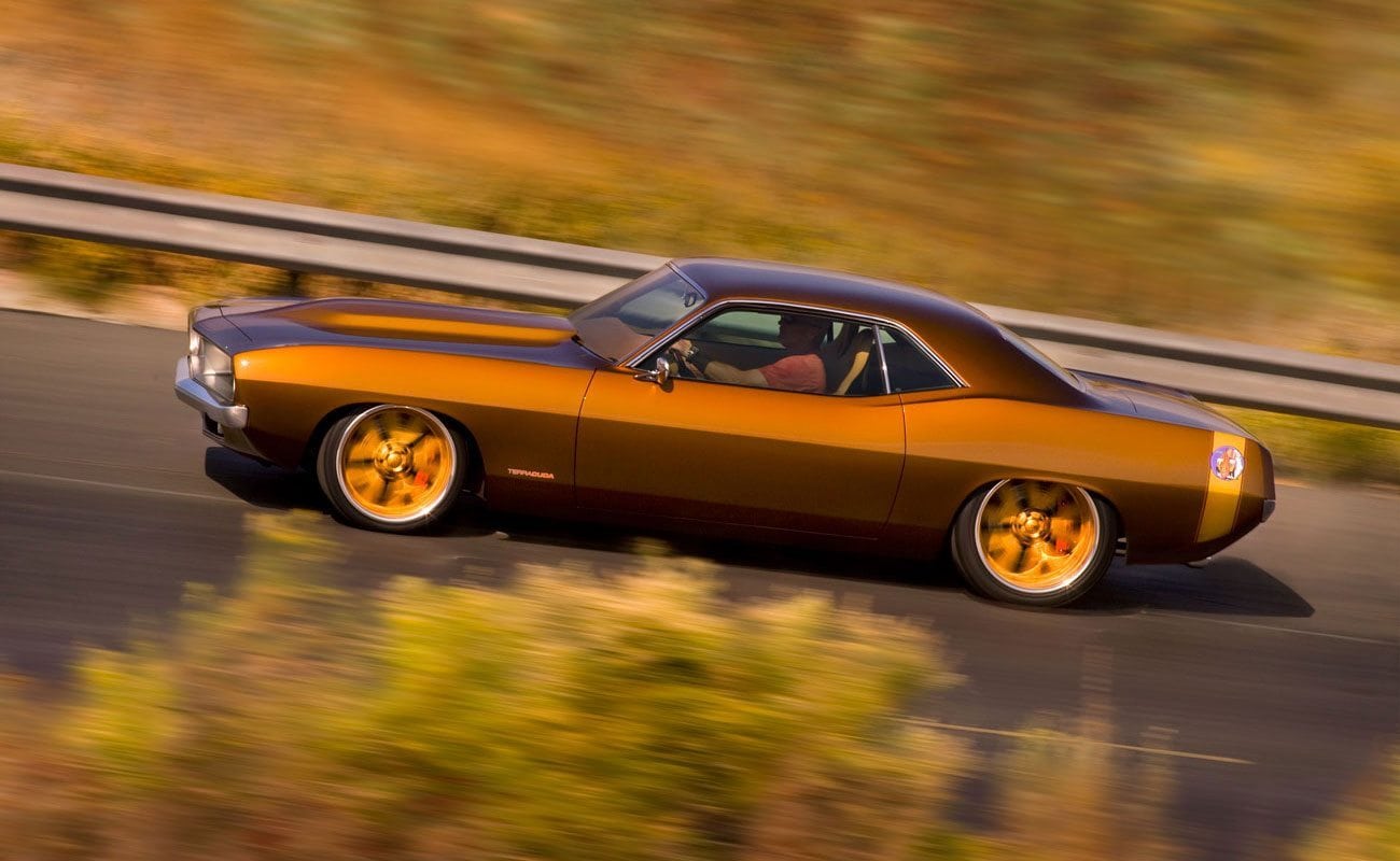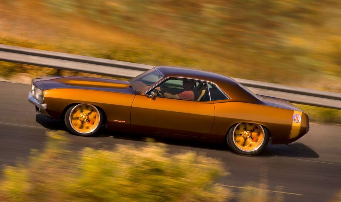 L’histoire de la Terracuda a commencé le jour où le propriétaire Darren Metropoulos a montré à Chip sa montre Breitling et lui a demandé de construire une voiture aux mêmes couleurs. Les ors et les bruns distinctifs de cette montre sont devenus l’inspiration de cette muscle car fortement personnalisée. Commençant par une Barracuda “stock” monocoque de 1970, le véhicule a finalement été 100% transformé. Chip a conçu un châssis entièrement nouveau et a travaillé avec Art Morrison pour le construire.