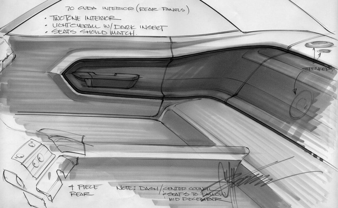 Chip et les personnes avec lesquelles il travaille et qu’il inspire l’inspirent également à prendre des risques et à construire le prochain niveau, à rechercher quelque chose de nouveau et de différent. Repousser toutes les limites tout en gardant cette voiture à la fois classique et futuriste témoigne de l’excellence qui est présente chez Foose Design. Le design rend hommage à la légende de Barracuda, et le Terracuda Brown rappelle les réfrigérateurs à avocats et la moquette à poils longs des années 70…