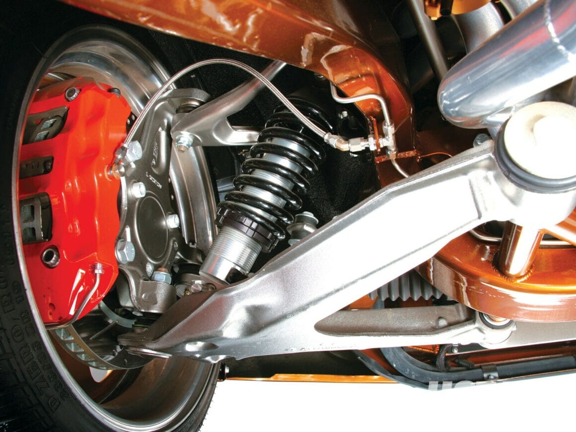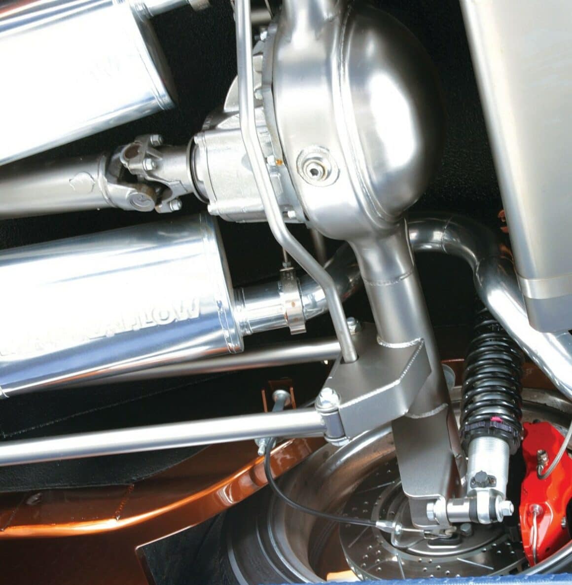 Le déplacement de l’emplacement des roues a également fourni un dégagement supplémentaire pour abaisser la voiture. Les Barracuda originales de 70 sont difficiles à abaisser car les passages de roue intérieurs et les charnières du capot heurtent le pneu avant, de sorte que l’équipe de Chip a dû construire de nouvelles charnières et repenser la façon dont le capot s’ouvrait pour rendre la position aussi méchante qu’elle l’est. Le problème avec la réingénierie d’une chose, c’est que vous devez ensuite réparer la chose à côté, et la chose à côté et encore, jusqu’à ce que vous finissiez par appeler la hotline du suicide.