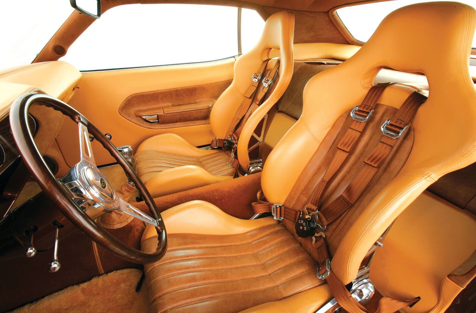 Les autres modifications de carrosserie sont nombreuses : le plancher et les baignoires arrière sont en acier de calibre 14 et surélevés de 2 pouces, les pare-chocs et les panneaux latéraux ont été remodelés, la calandre est personnalisée et les bas de caisse ont été allongés et soudés au cadre Art Morrison sous la voiture pour créer une structure ridiculement rigide qui ressemble à une voiture d’aujourd’hui. Pas comme les unibodies rigides comme de la réglisse des années 70. L’intérieur est tout aussi étonnant que l’extérieur, avec des panneaux intérieurs personnalisés recouverts de cuir luxuriant.