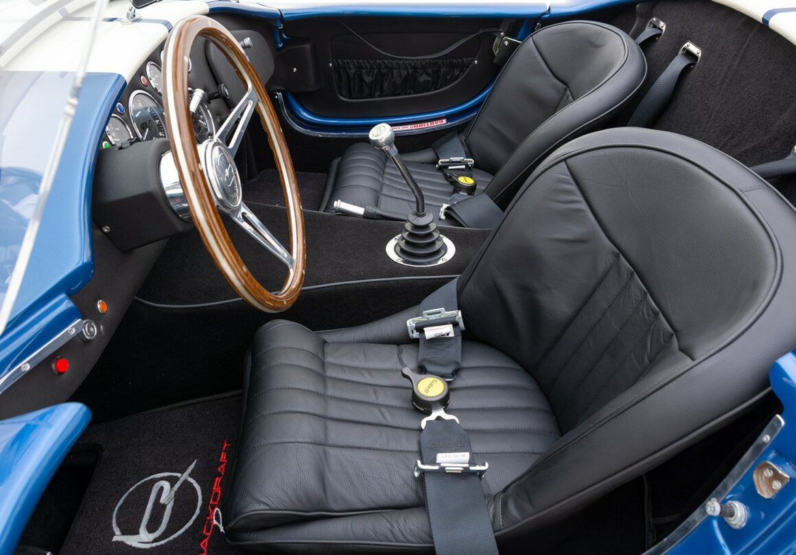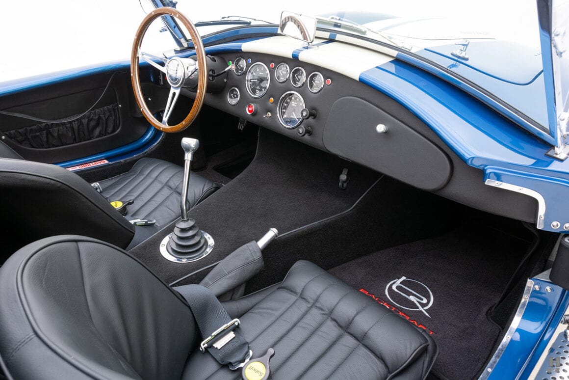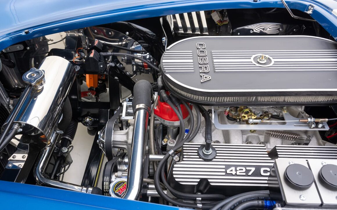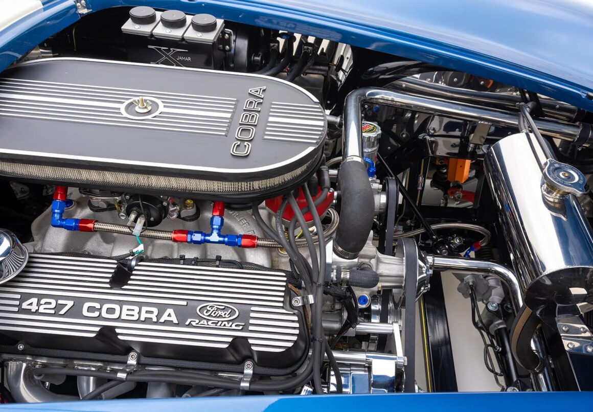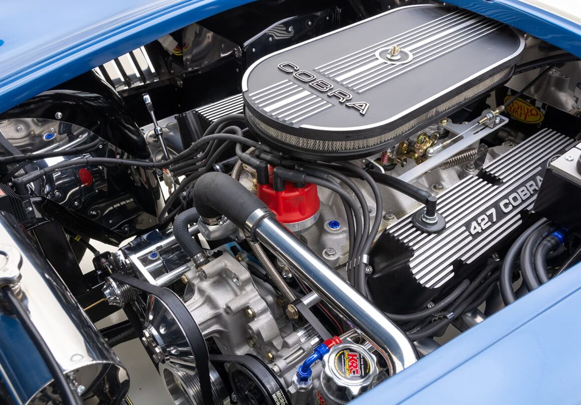Le moteur amélioré/boosté en option, à 504cv et 536 lb-pi de couple, est soutenu par une transmission Tremec T-5 à 5 vitesses ! Ce roadster 427 Cobra RT4 évocateur et bien équipé, introduit un certain nombre d’améliorations dans la suspension arrière indépendante inspirée de la BMW M3 .