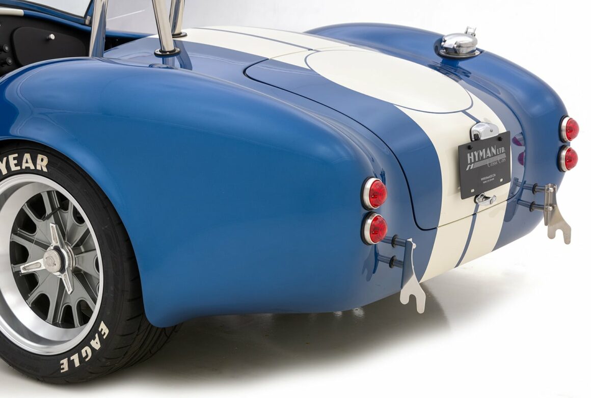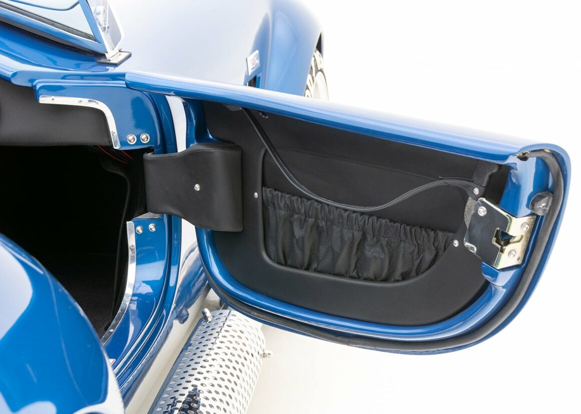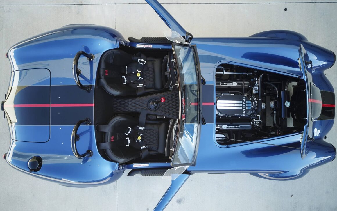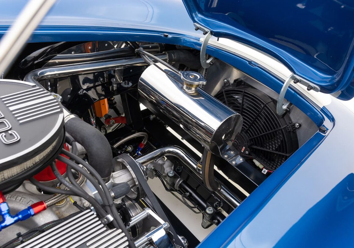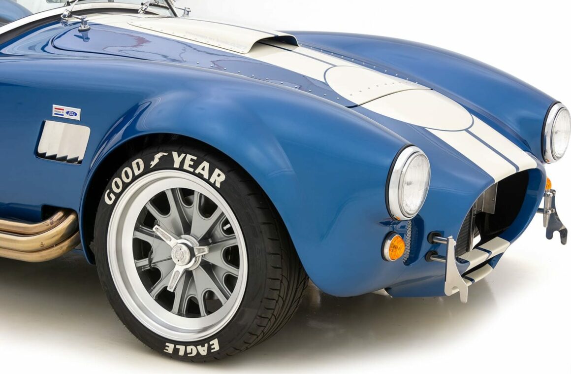 Le moteur amélioré/boosté en option, à 504cv et 536 lb-pi de couple, est soutenu par une transmission Tremec T-5 à 5 vitesses ! Ce roadster 427 Cobra RT4 évocateur et bien équipé, introduit un certain nombre d’améliorations dans la suspension arrière indépendante inspirée de la BMW M3 .