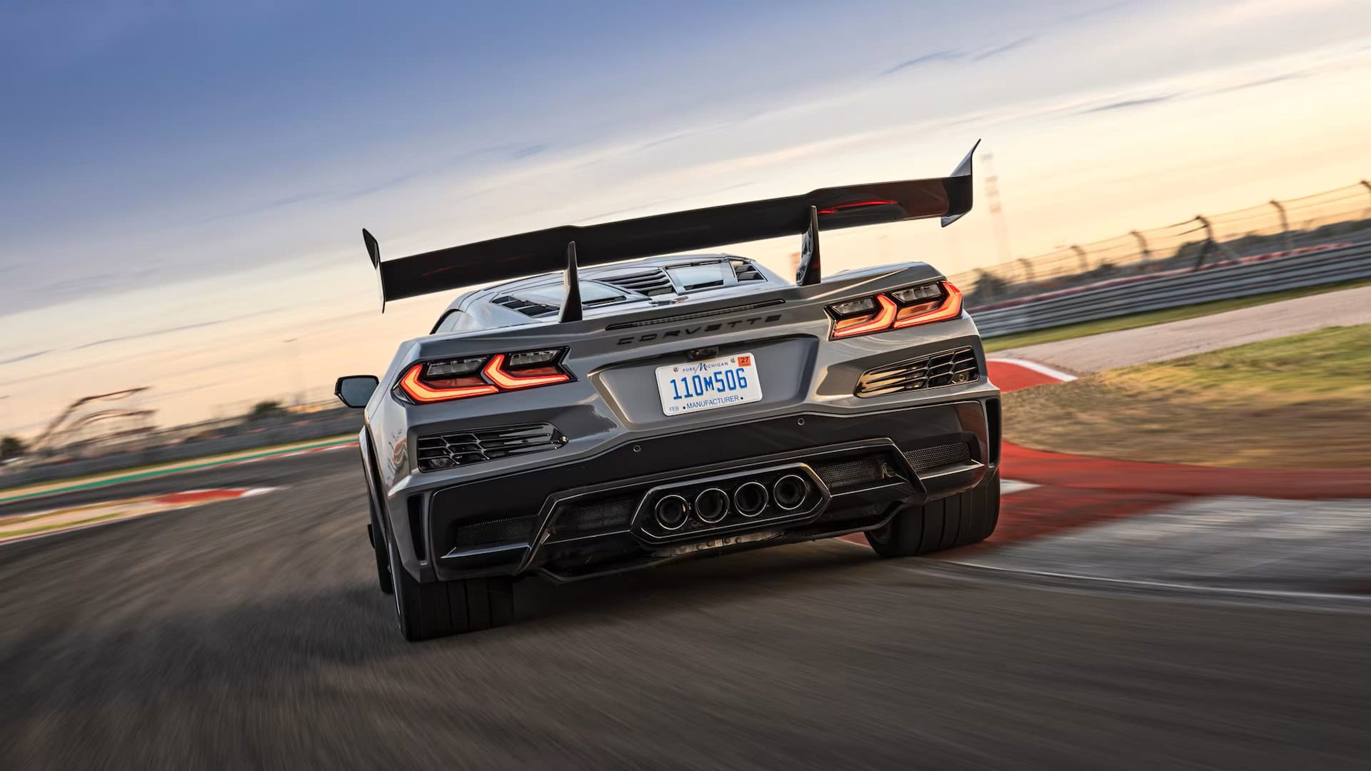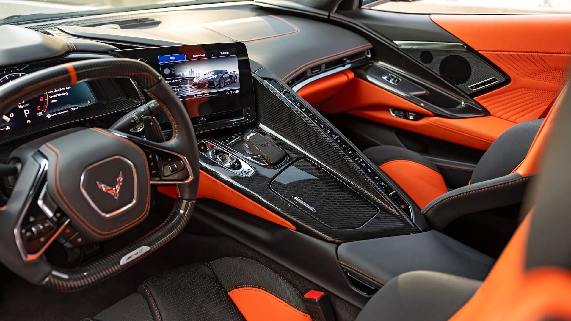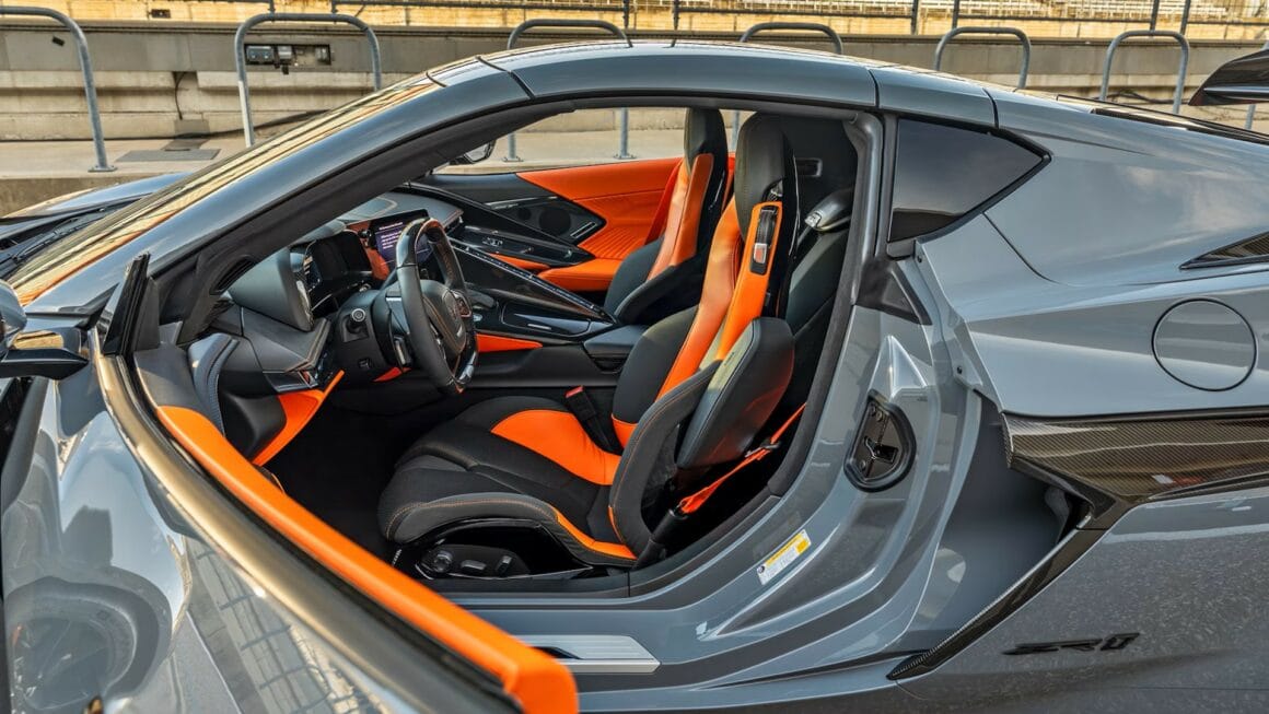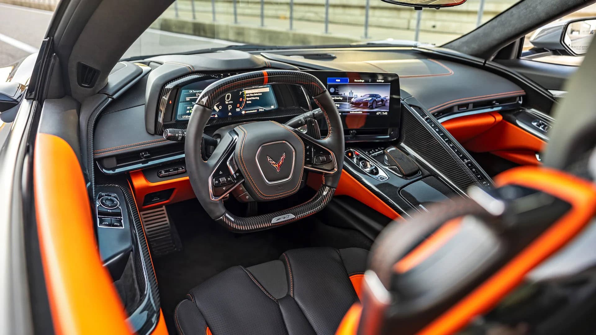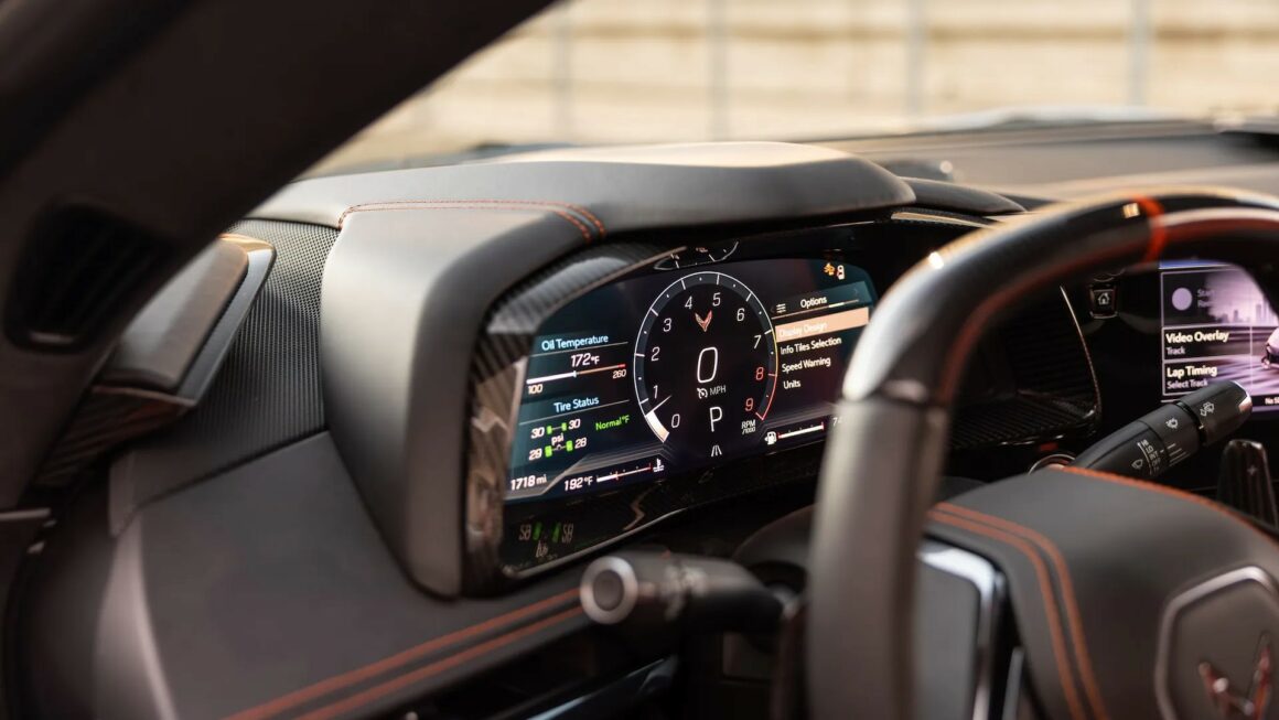 Ouaihhh ! Mais avec des ressorts plus rigides (tous les ZR1 incluent également un réglage manuel de l’alignement des pistes, comme on le voit sur d’autres Corvette’s) et des pneus Michelin Cup 2 R orientés piste. Il y a là, encore plus d’adhérence à votre disposition, car la suspension et les caoutchoucs Cup 2 R s’associent aux éléments aérodynamiques, y compris un aileron arrière en fibre de carbone et un volet Gurney sur le capot, ainsi que des plans de plongée avant, des virures de canalisation du flux d’air sous la voiture et un sous-aileron de Z06 – pour en faire une voiture puissamment maniable et Kitée, même si plus lourde (ce n’est pas un miracle). D’énormes freins Brembo en carbone-céramique de 15,7 pouces à l’avant et de 15,4 pouces à l’arrière gèrent l’entreprise sans faiblir lorsqu’il est temps de saigner l’énorme élan…
