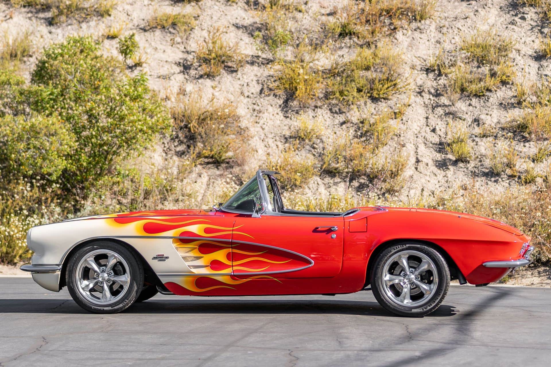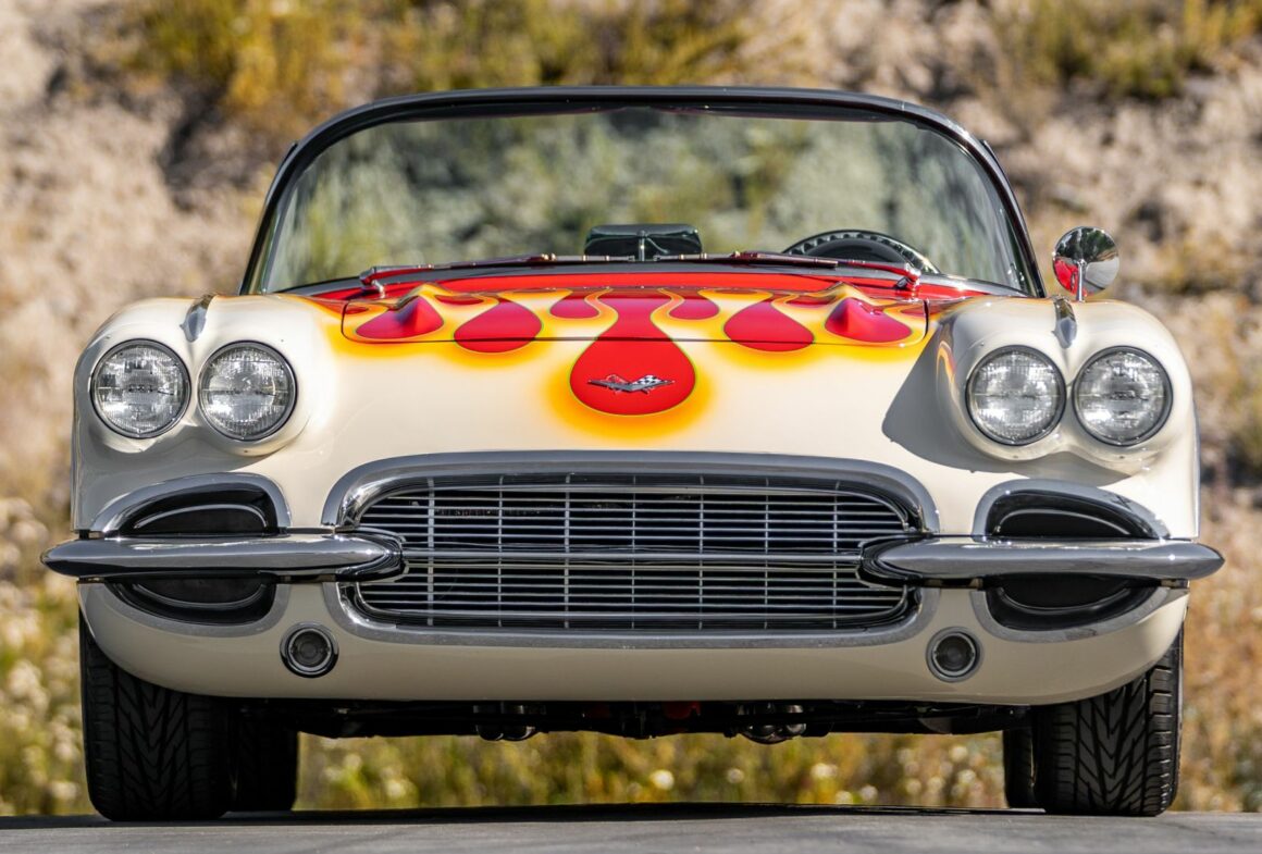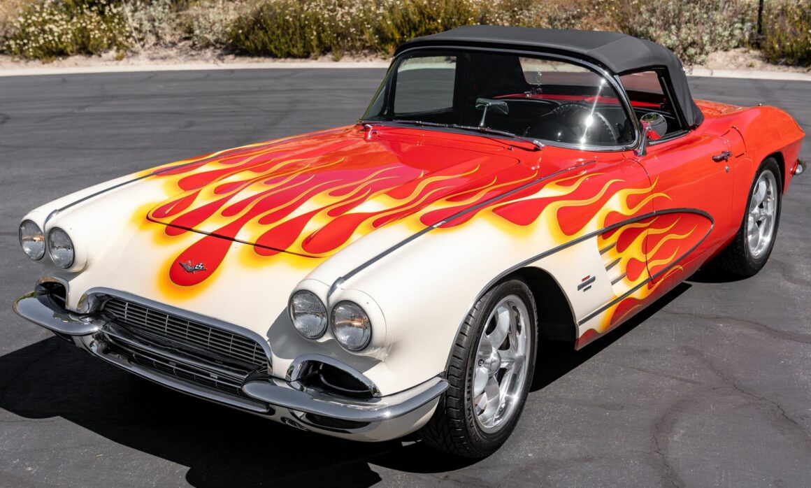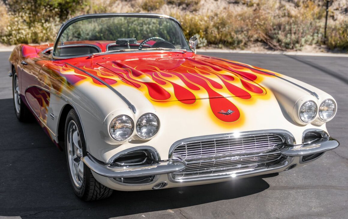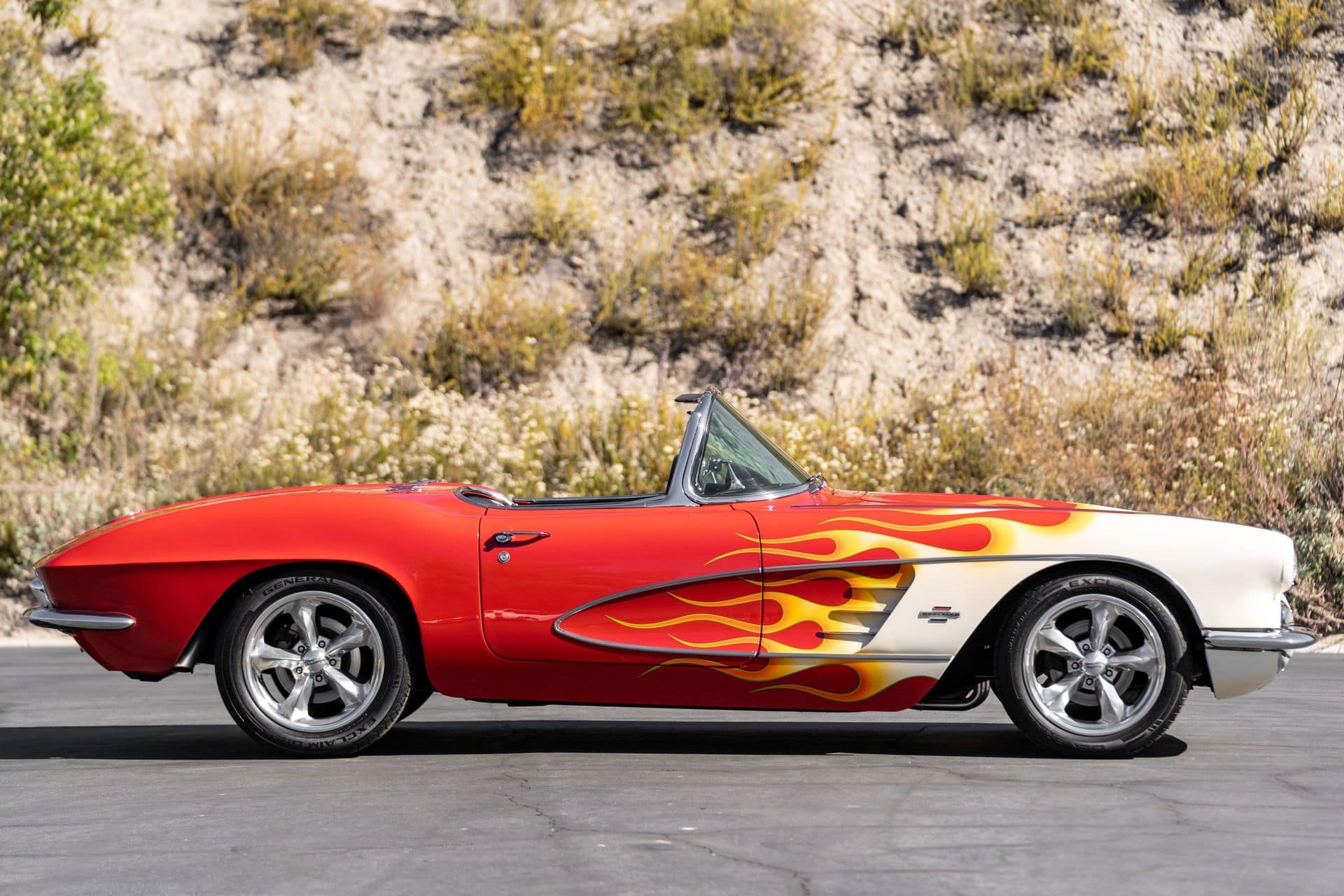 Daryl Coleman, le Cow-Boy propriétaire de la bête a donc pensé à “relooker” sa Corvette 1961 entièrement d’origine, mais il ne pouvait pas supporter l’idée de détruire et ruiner sa C1 aussi parfaite. La solution lui est venue en lisant Top Wheels qui faisait l’apologie des chromes et des flammes… Cela lui a donné l’idée de la faire peindre en Chromes&Flammes…