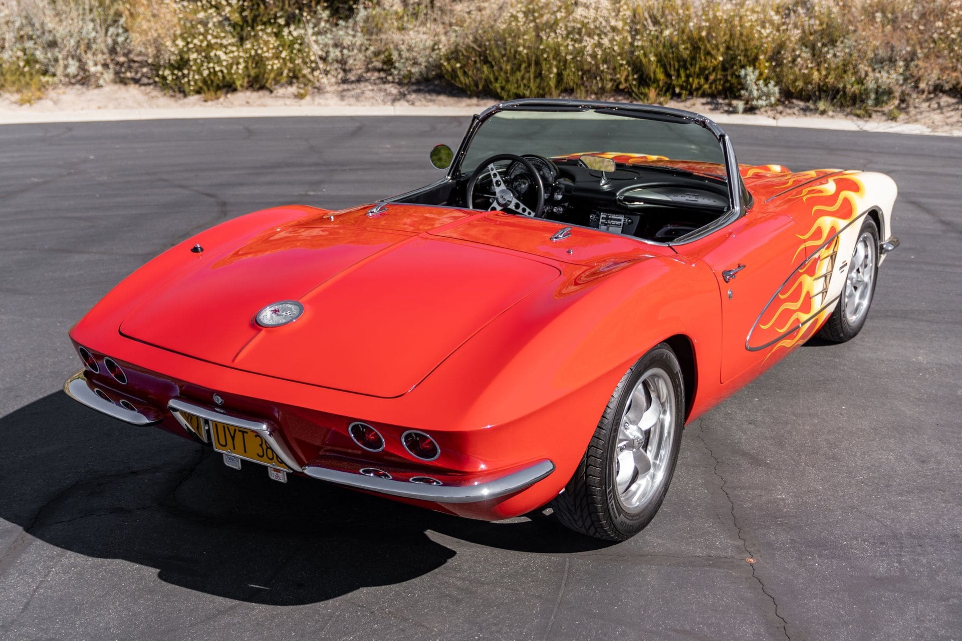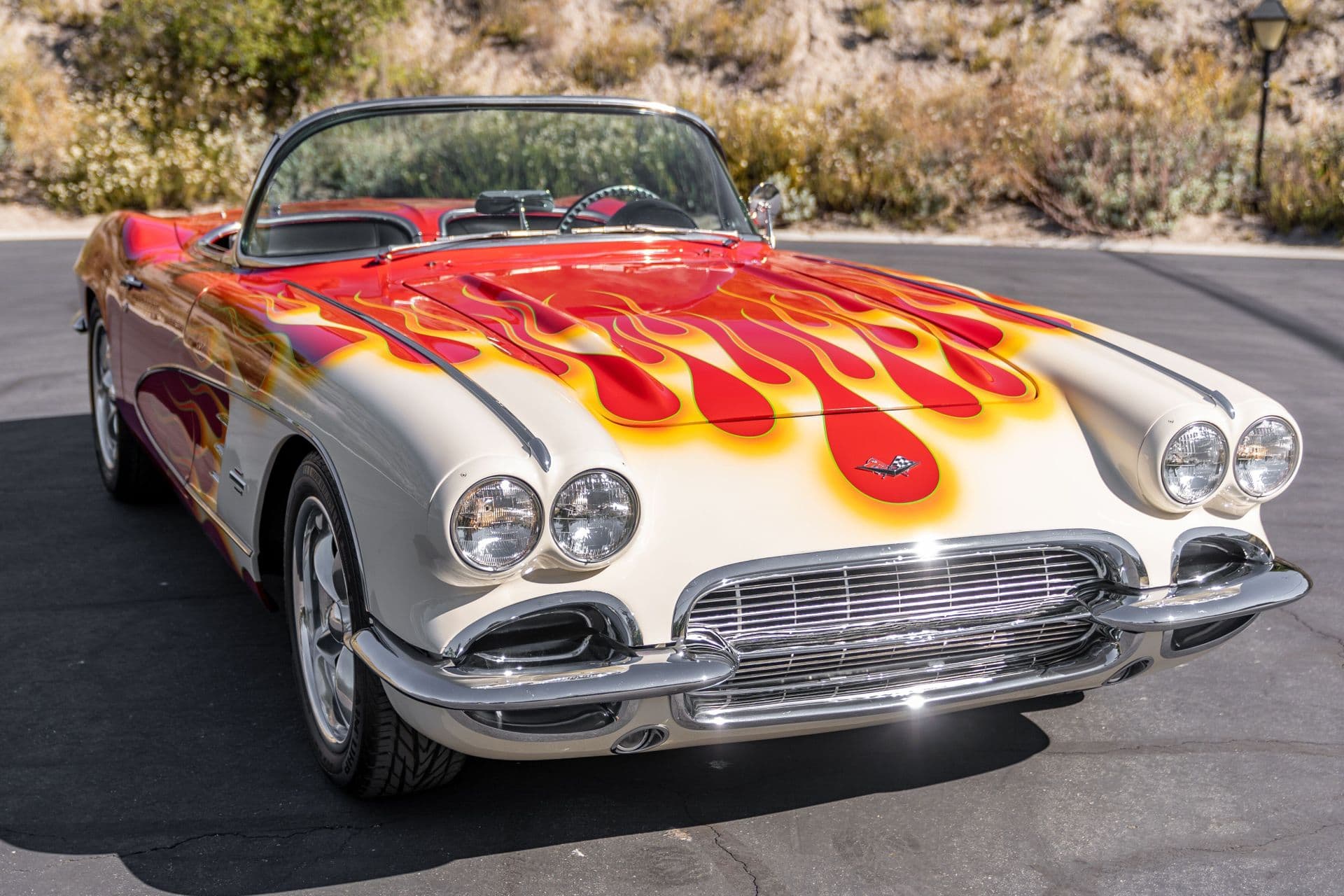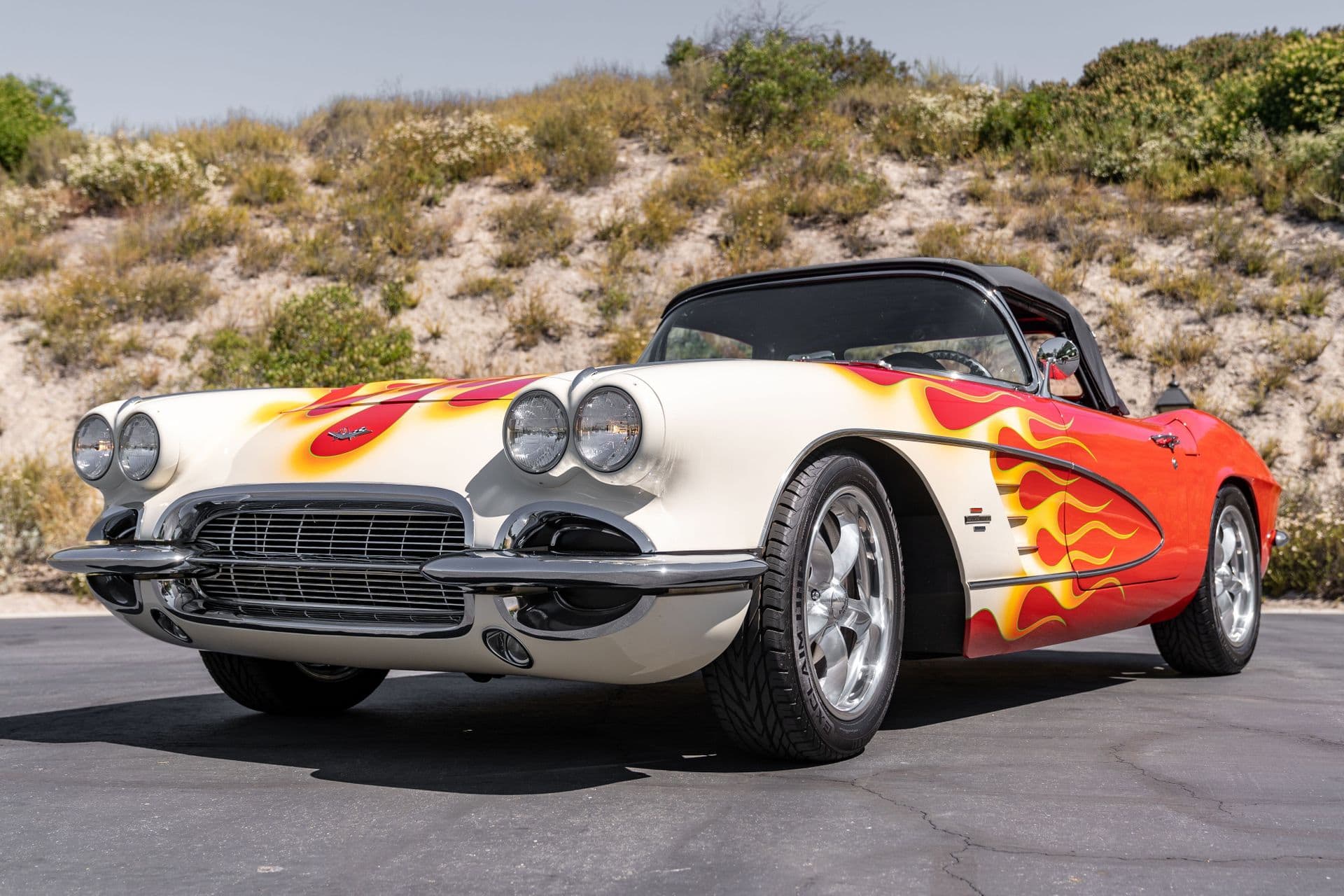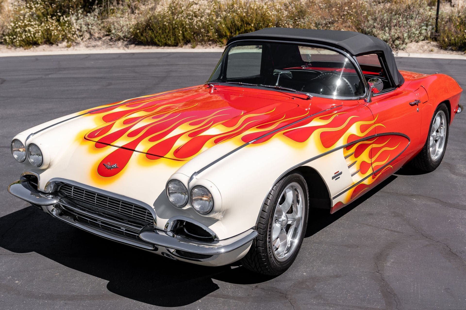 Daryl Coleman, le Cow-Boy propriétaire de la bête a donc pensé à “relooker” sa Corvette 1961 entièrement d’origine, mais il ne pouvait pas supporter l’idée de détruire et ruiner sa C1 aussi parfaite. La solution lui est venue en lisant Top Wheels qui faisait l’apologie des chromes et des flammes… Cela lui a donné l’idée de la faire peindre en Chromes&Flammes…