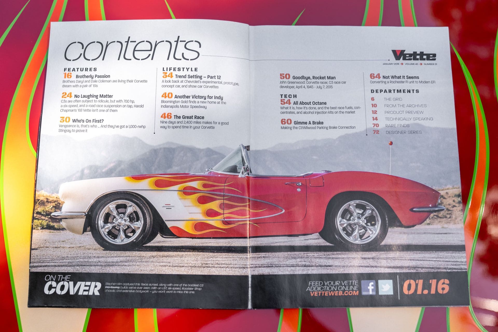 Présentée dans divers magazines qui n’étaient ni distribués ni forcément vendus en Europe, dont la France, tels : Vette, Super Chevrolet, Hot Rod et TopWheels (la version américaine de Chromes&Flammes), elle est connue pour être la TOP ONE de Californie, si pas des USA et vraisemblablement du monde, si pas de l’univers connu…