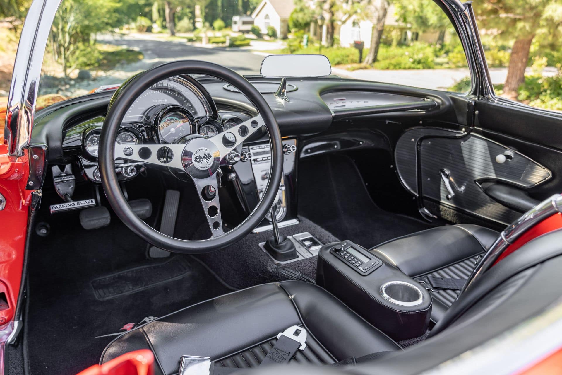 Le moteur V8ohv 283ci, double quad, 270cv a été complètement reconstruit avec des collecteurs et des silencieux Flowmaster qui améliorent le flux d’échappement. La transmission est manuelle à quatre vitesses finalisé par un quick-change Positraction 3,70:1. Une radio Wonder Bar est présente mais est déconnectée car une chaîne stéréo moderne fonctionnelle est installée.
