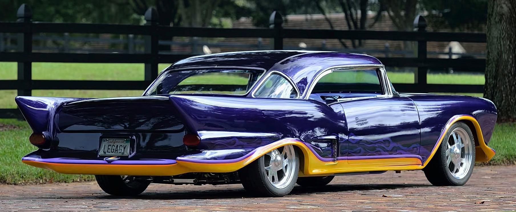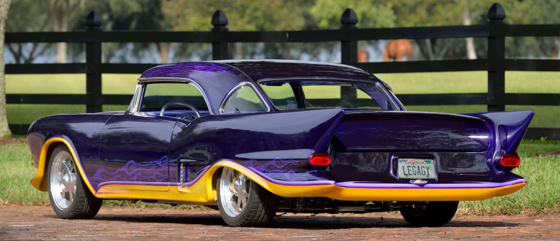 Un p’tit résumé pour terminer : Acquise par Joe Cusumano en 1995 cette “Legagy” a été sacrée “Grand Champion ISCA en 1997”, puis “1er prix Barris roi des voitures customisées au salon Portland Roadster 1998”. Cette voiture a servi de promo pour ses matchs de boxe et a même fait le tour de la Suède, de la Finlande et de l’Australie. La construction utilisait une Chevrolet1957 et l’installation d’un moteur V8 Corvette 327 CI de 1962 avec un Blower GM 671.