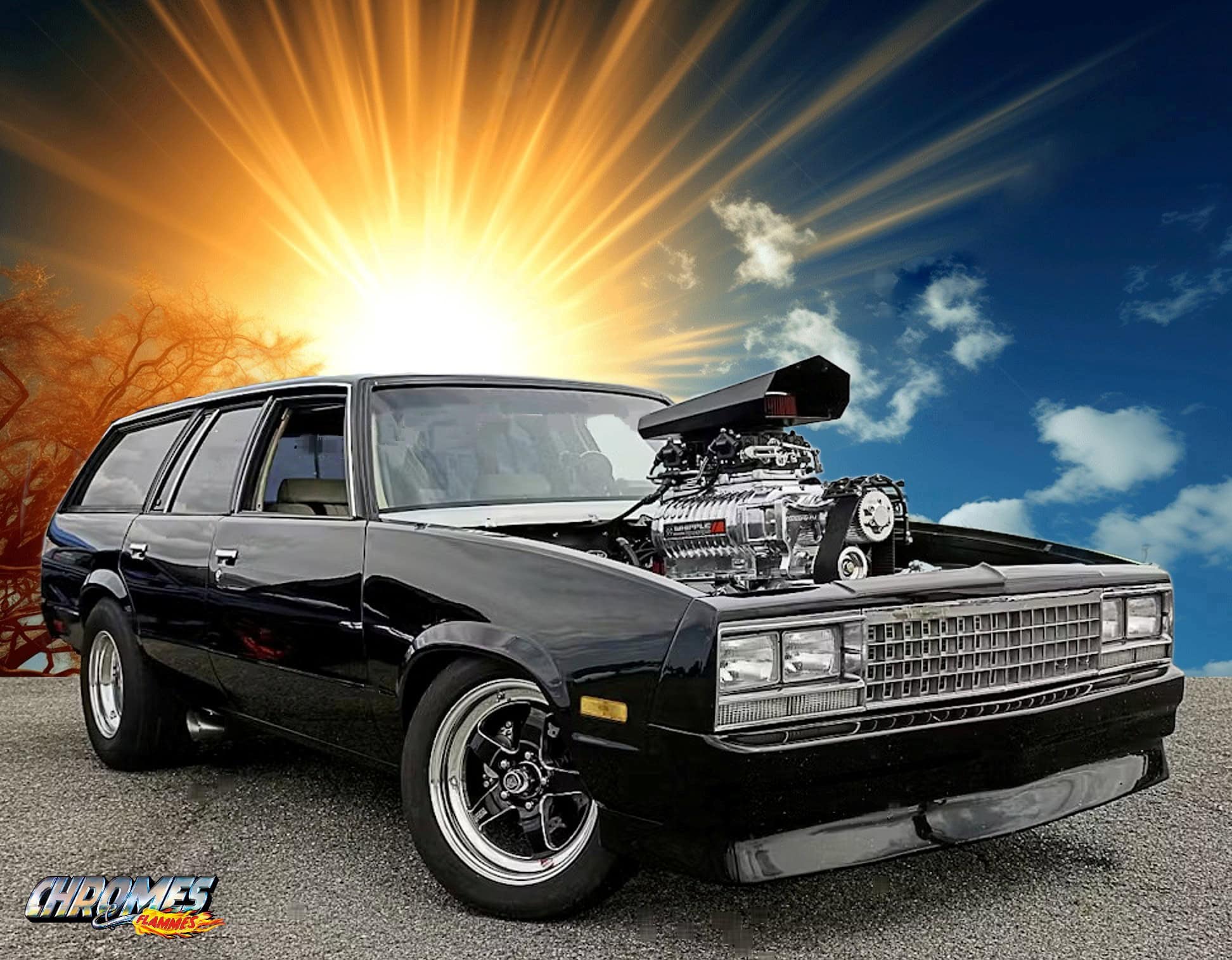 À l’arrière, Travis a installé de nombreux composants “Trick Chassis” ainsi qu’un pont arrière de 9po de chez “Quick Performance”… Une transmission “TH400”, un convertisseur de couple “PTC” et un overdrive de “Gear Vendors” rendent ce break étonnamment agréable à conduire sur route. La voiture correspond exactement à ce que Travis avait imaginé, et il estime que c’est le moyen idéal d’honorer les souhaits de son ami. Après tout, quoi de plus cool qu’un break Malibu équipé d’un gros compresseur Roots et capable de rouler confortablement en ville … Voilà, comme on dit familièrement : “On en a fait le tour”… Je n’en ai pas plus à vous en écrire… Bye bye…