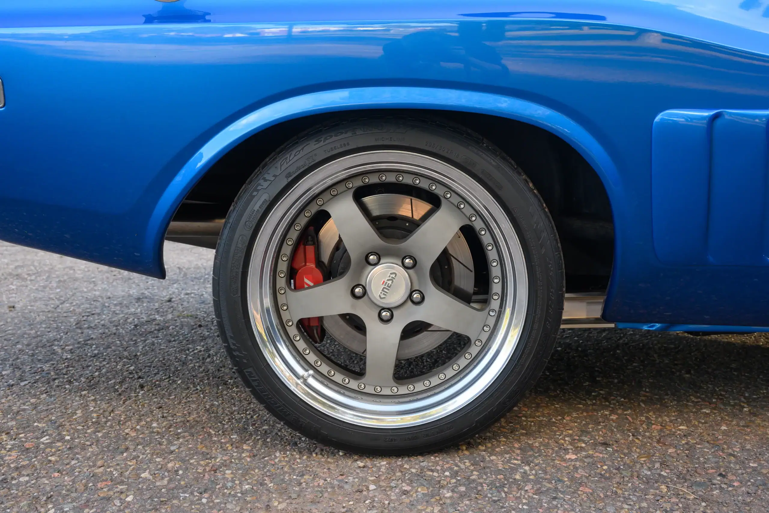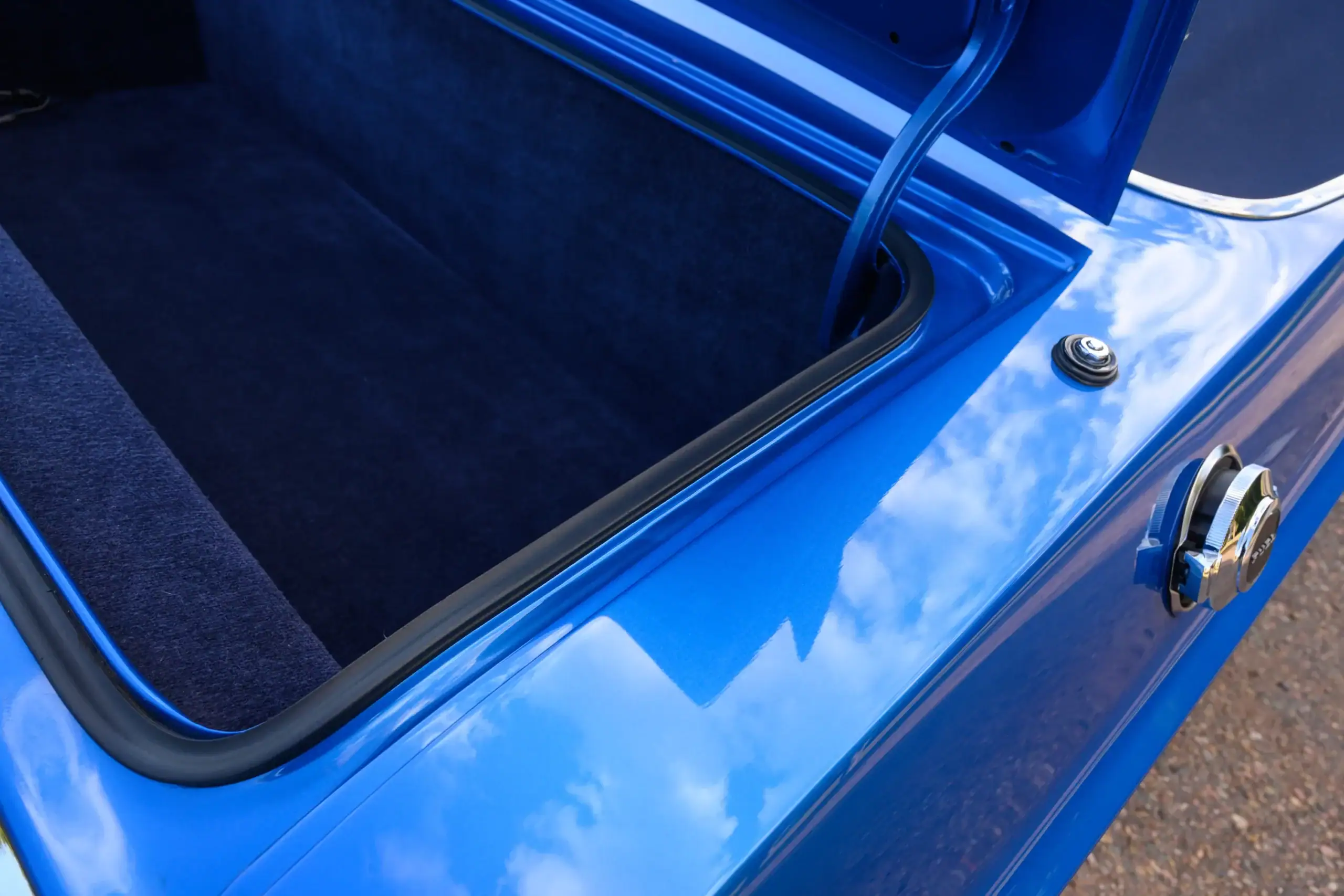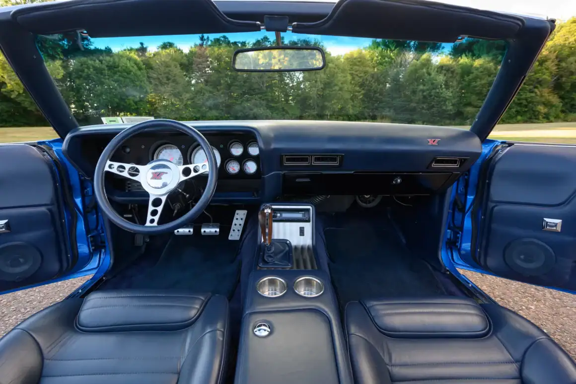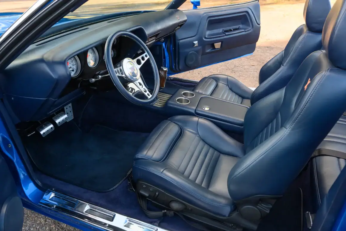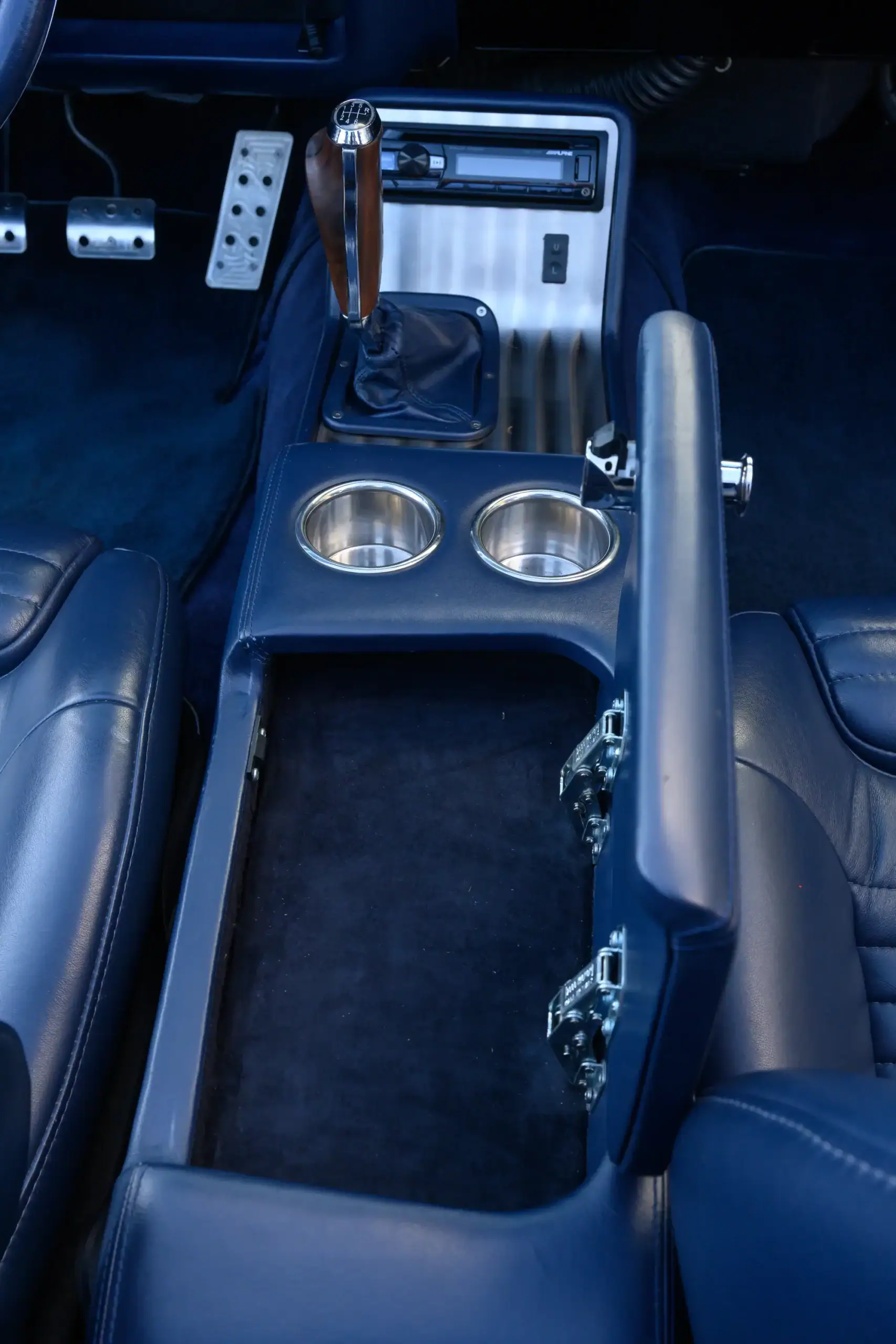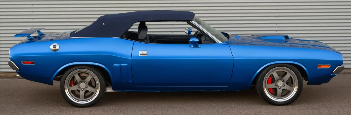 Notez que l’intérieur a été entièrement remanié, d’une finition bleue scintillante qui devient irisée au soleil. Véritable supercar moderne construite à la main et vêtue de tôles Challenger de 1971, ce cabriolet est au sommet du monde du restomod car doté d’un savoir-faire de classe mondiale, d’une attention particulière aux détails et d’une ingénierie sans limites.