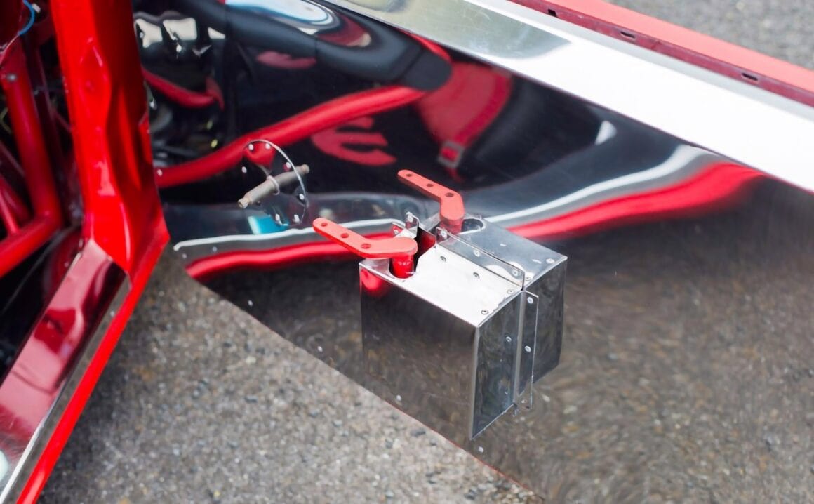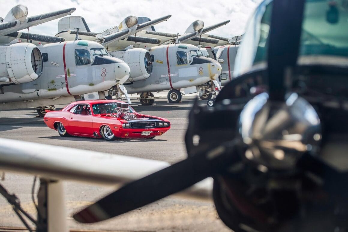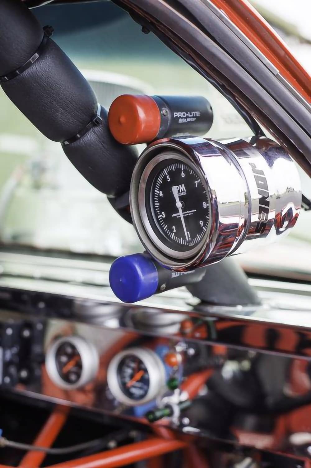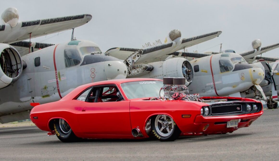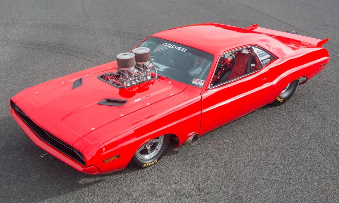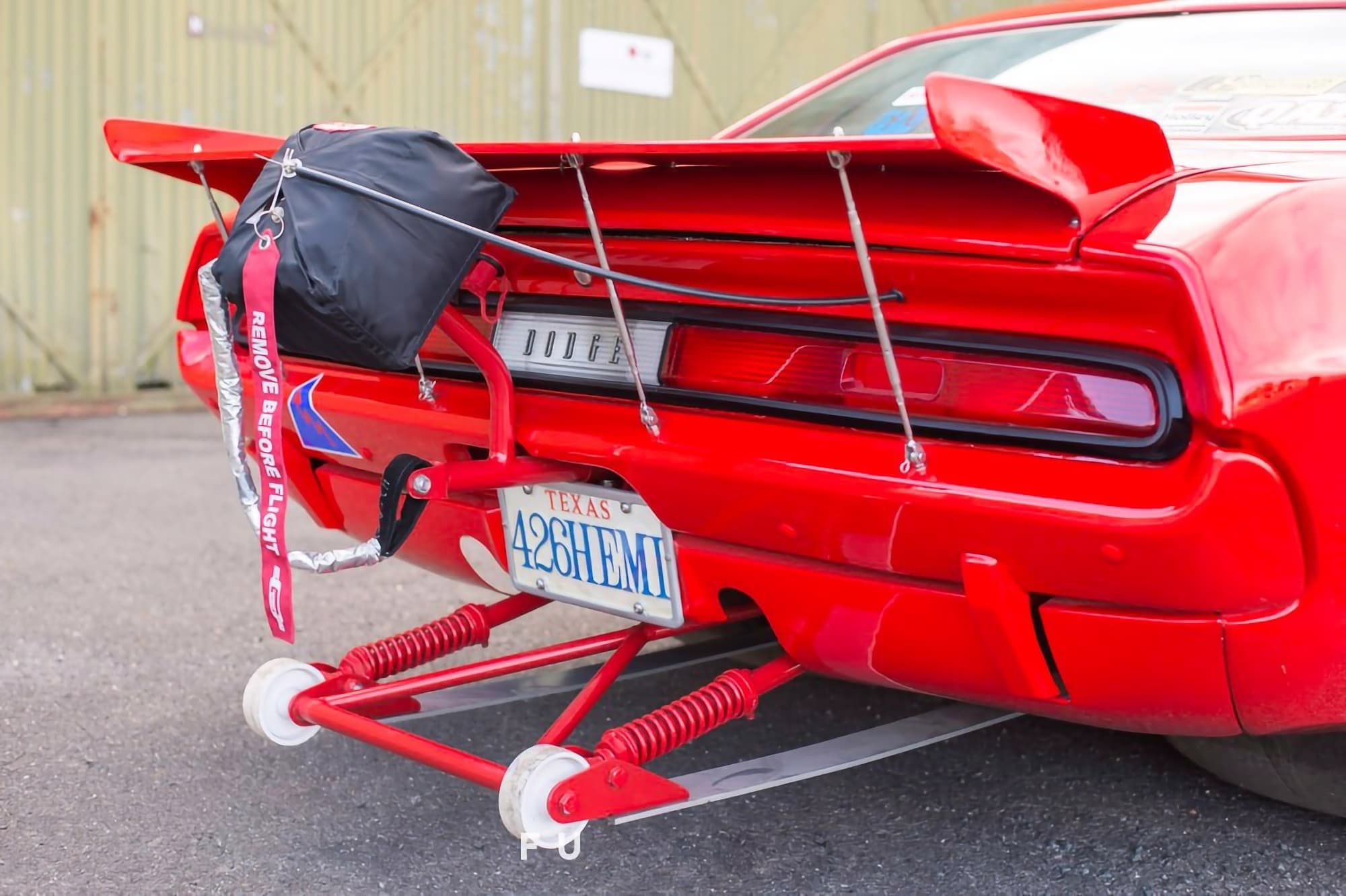 “Nous ne voulions pas trop enlever son look d’origine, nous l’avons donc personnalisée en faisant certaines choses à notre façon sans gâcher l’âme de la voiture. À l’origine, la Challenger était entièrement peinte dans une nuance de rouge plus foncé. Nous avons laissé le châssis dans cette couleur. Mais nous avons choisi un nouveau rouge plus vif pour la carrosserie. Nous avons mis des jantes et des pneus différents à l’avant, des slicks à l’arrière. Nous avons retiré l’écope du capot, construit un nouvel aileron arrière en aluminium, installé une goulotte Simpson à 180 mph, regarni les sièges, ajouté de la moquette et remplacé les feux avant/arrière”...