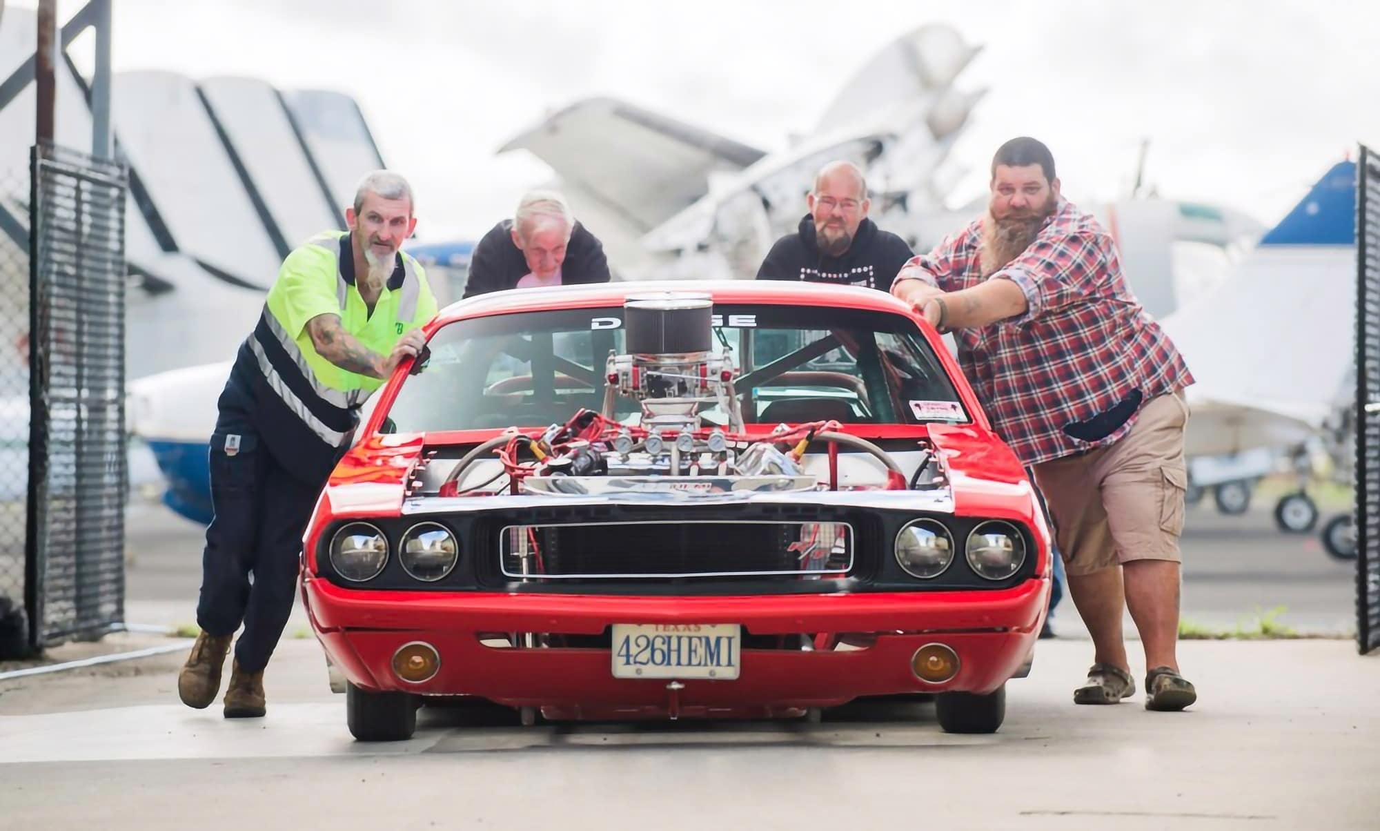 Cependant, cette histoire s’occulte (partiellement) par un projet de restauration père-fils, complet, concernant la Muscle-Car vedette de cet article, une ancienne voiture de course Dodge Challenger ayant appartenu à Kevin Monk… Vous connasse pas mes Popu’s… Aucun des deux cités… Trop loin… David Guy, a vu la Dodge pour la première fois à Summernats et a toujours dit que si jamais elle était mise en vente et qu’il avait l’argent, il l’achèterait. C’était en 1995, juste après sa construction. Dix ans plus tard, il l’a revue en vente. Il avait l’argent et l’a achetée car la Dodge Challenger avait eu une histoire assez illustre.