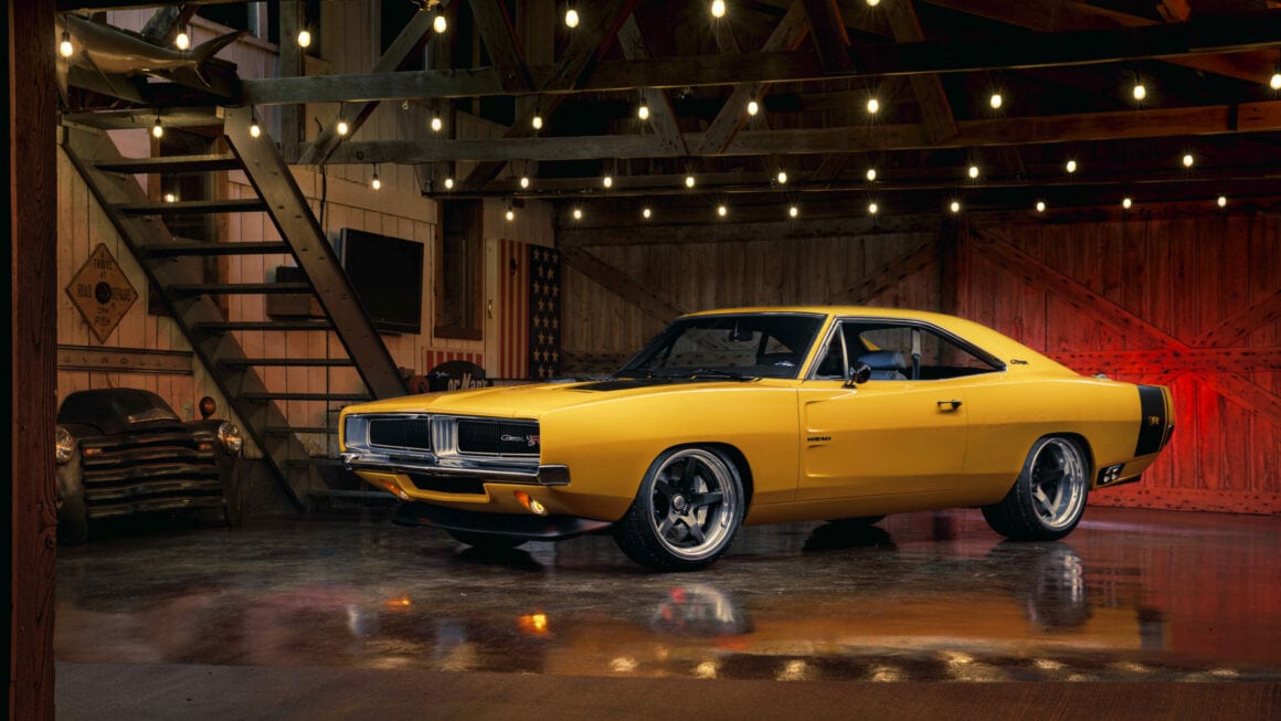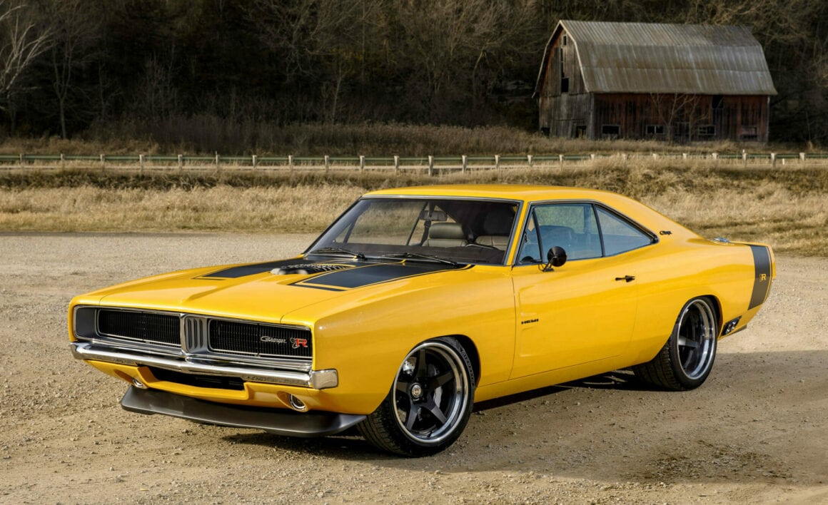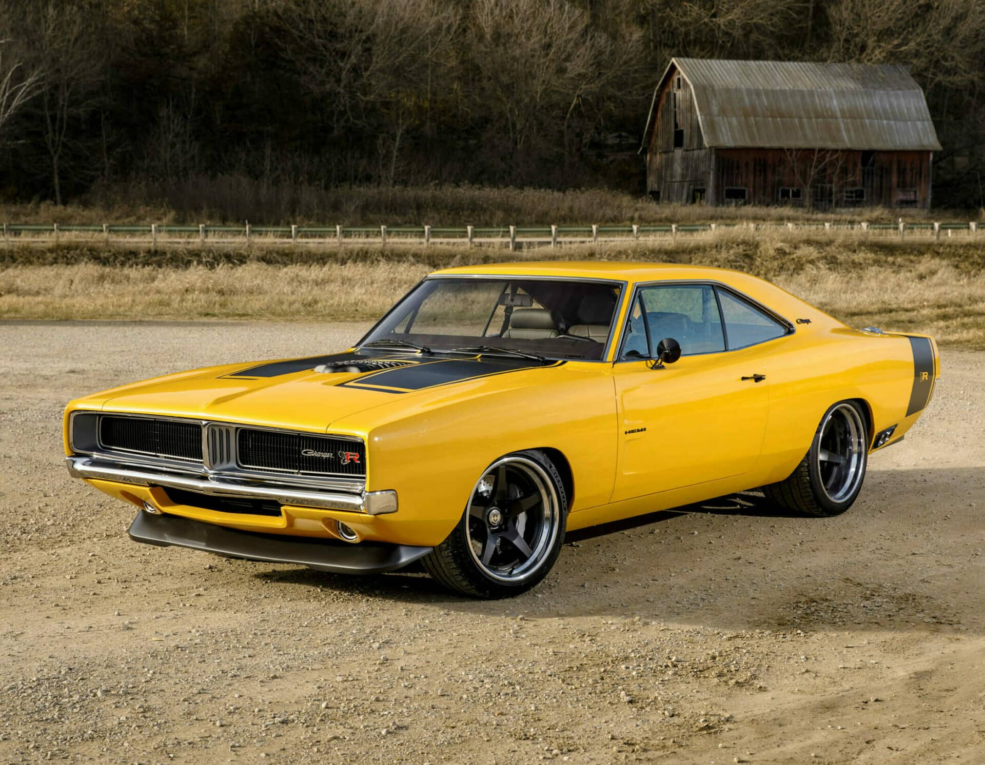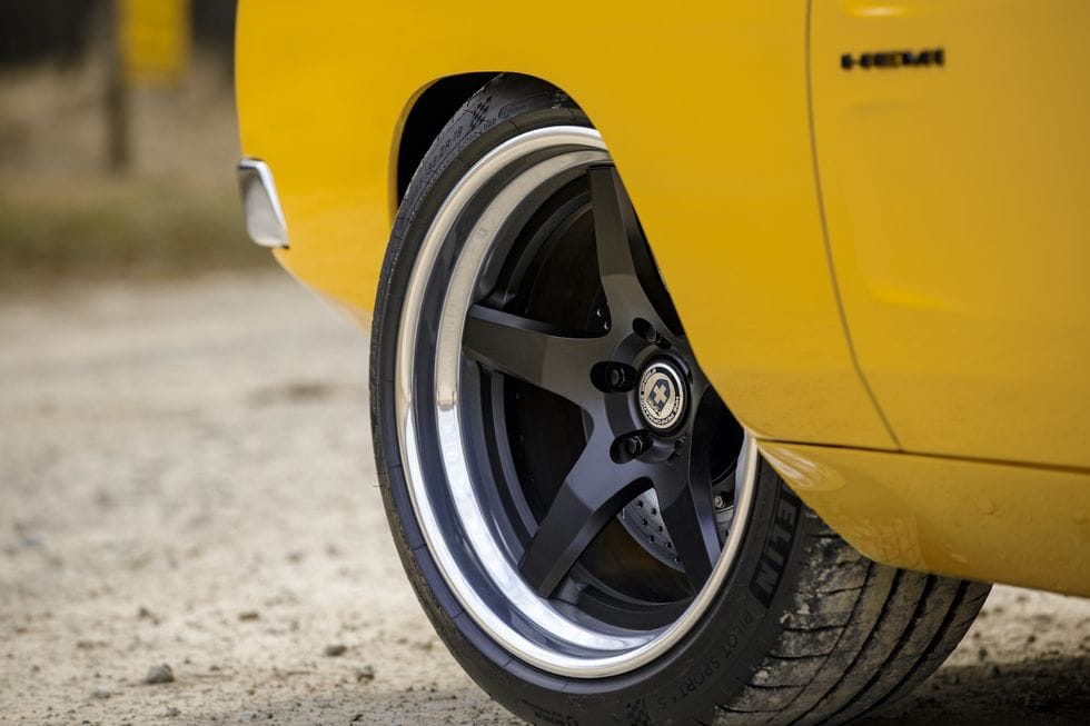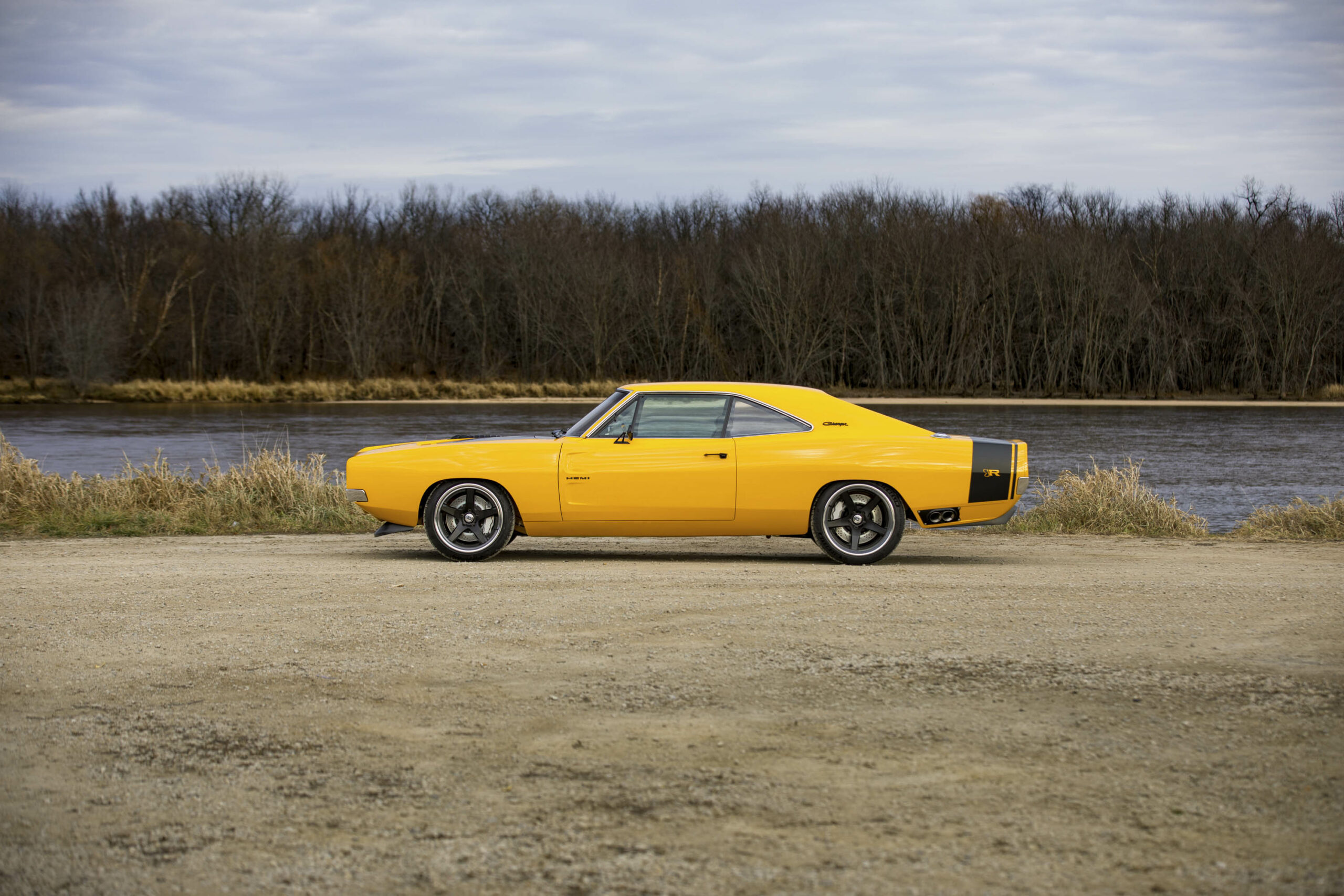 La disposition de la carrosserie sur châssis par dessous a été bannie en faveur d’une nouvelle conception monocoque, tandis que le moteur d’origine a été retiré pour un V8 Hemi Hellcat de 707 chevaux avec un compresseur qui “transpire” au travers du capot. La puissance va aux roues arrière via une transmission manuelle six vitessesTremec T-56 Magnum avec un arbre de transmission en fibre de carbone ! Parmi les autres améliorations, je mentionne les freins Bauer à six pistons, les amortisseurs réglables et les jantes HRE personnalisées enveloppées de pneus Michelin Pilot Sport 4S. La peinture est une nuance personnalisée appelée “Pile Up yellow”, au cas où vous seriez curieux… L’habitacle a été totalement remanié avec de nouveaux sièges, un nouveau tableau de bord, un volant Ringbrothers personnalisé, des compteurs MoTeC et un ECU MoTeC pour contrôler toute l’électronique. Cette superbe et unique DodgeCharger R / T de 1969, jaune avec un décor “Bumblebee” à l’arrière m’a paru être un bon sujet. Hééééééééééééé ! Vous auriez fait quoi d’autre ?
