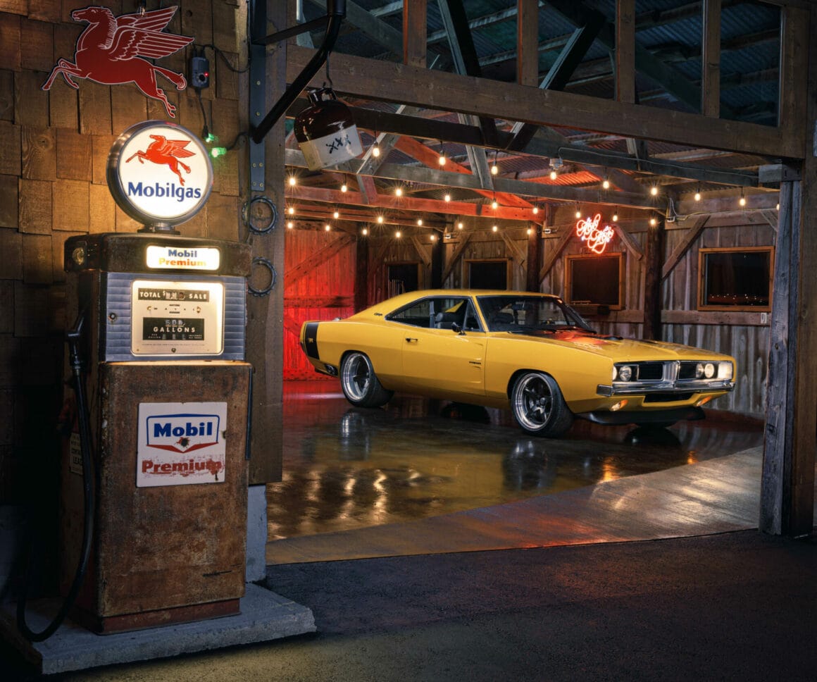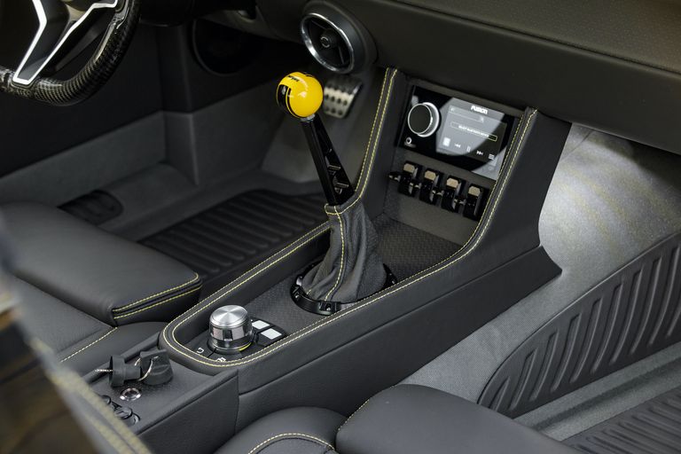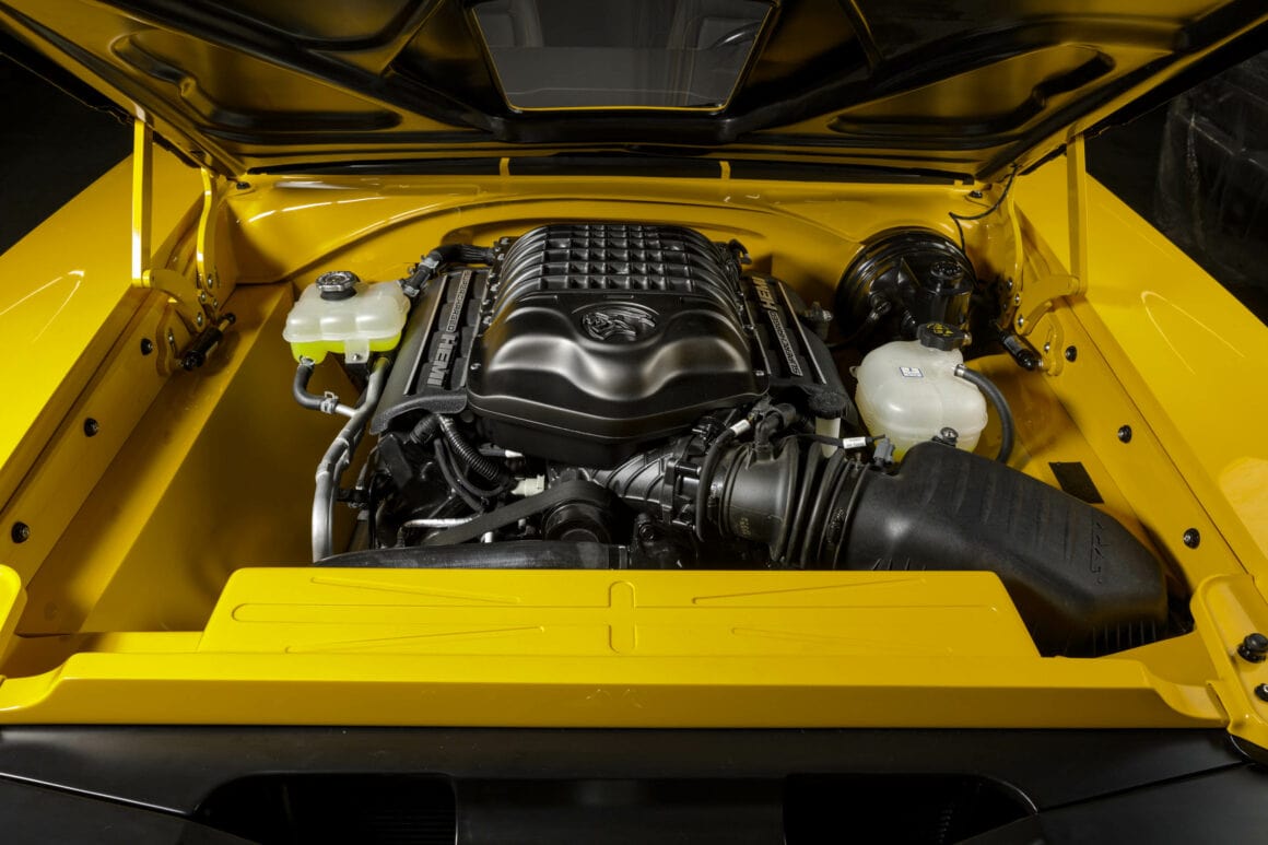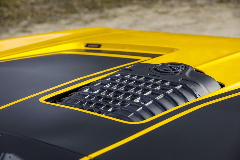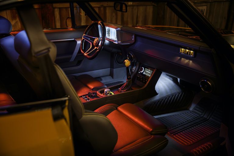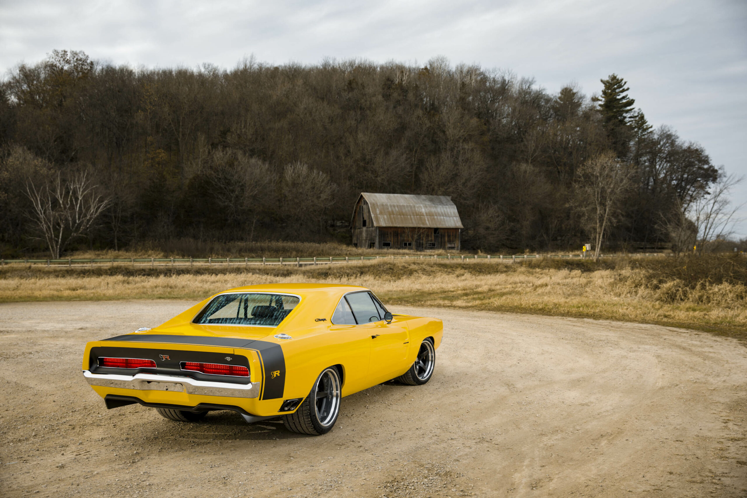La disposition de la carrosserie sur châssis par dessous a été bannie en faveur d’une nouvelle conception monocoque, tandis que le moteur d’origine a été retiré pour un V8 Hemi Hellcat de 707 chevaux avec un compresseur qui “transpire” au travers du capot. La puissance va aux roues arrière via une transmission manuelle six vitessesTremec T-56 Magnum avec un arbre de transmission en fibre de carbone ! Parmi les autres améliorations, je mentionne les freins Bauer à six pistons, les amortisseurs réglables et les jantes HRE personnalisées enveloppées de pneus Michelin Pilot Sport 4S. La peinture est une nuance personnalisée appelée “Pile Up yellow”, au cas où vous seriez curieux… L’habitacle a été totalement remanié avec de nouveaux sièges, un nouveau tableau de bord, un volant Ringbrothers personnalisé, des compteurs MoTeC et un ECU MoTeC pour contrôler toute l’électronique. Cette superbe et unique DodgeCharger R / T de 1969, jaune avec un décor “Bumblebee” à l’arrière m’a paru être un bon sujet. Hééééééééééééé ! Vous auriez fait quoi d’autre ?