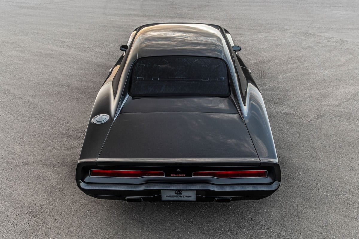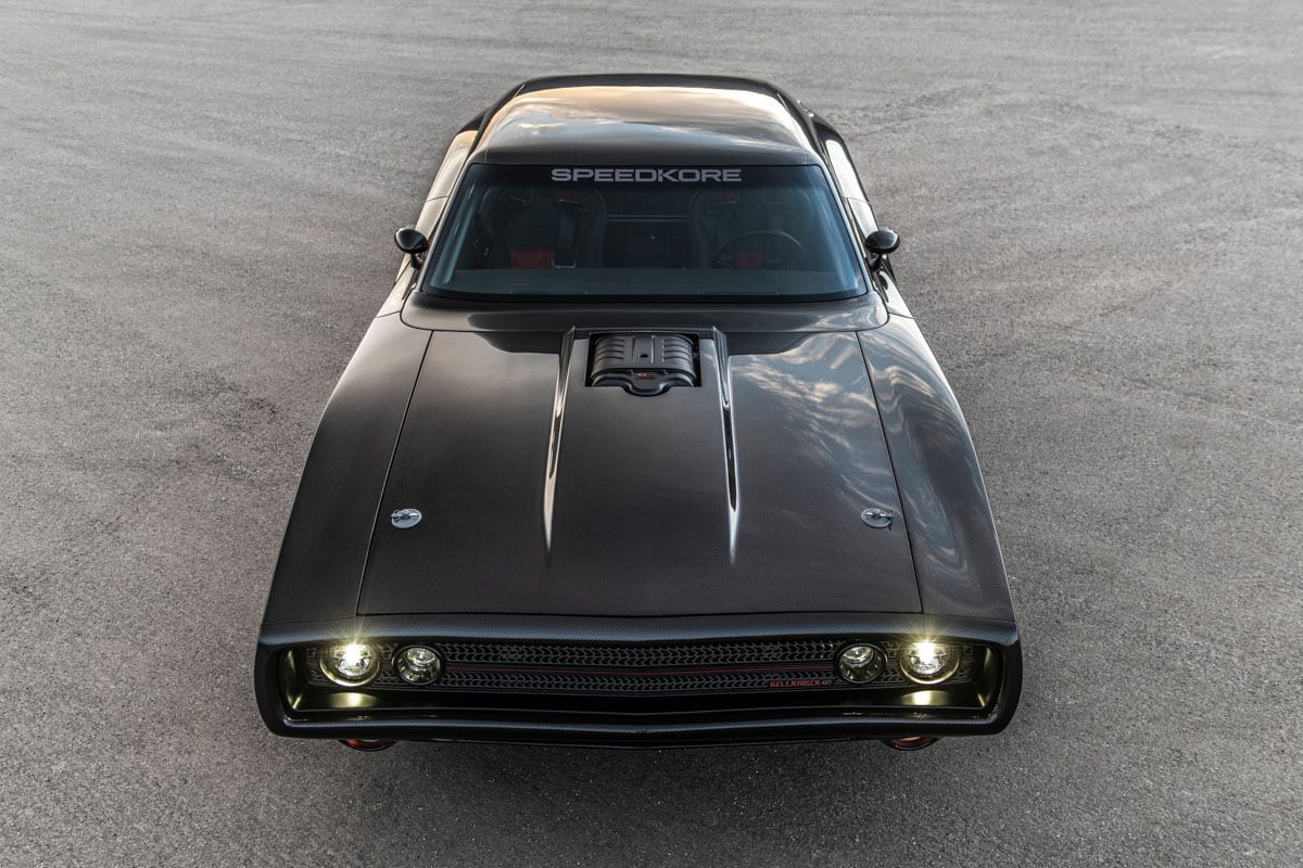 Le processus de construction a consisté à effectuer un balayage à la lumière bleue d’une Dodge charger d’origine, à partir de laquelle une machine CNC à cinq axes a créé des moules et des bouchons pour construire les panneaux en fibre de carbone. SpeedKore utilise de la fibre de carbone pré-imprégnée de qualité aérospatiale et un autoclave interne pour assurer une consolidation constante des fibres, l’épaisseur des panneaux et l’uniformité du tissage.