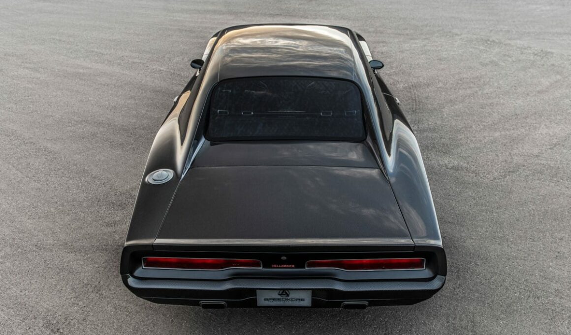 Des équipements modernes tels qu’un système audio complet utilisant des composants Kicker et Focal et des commandes de climatisation modernes confèrent à la Charger un look grand tourisme confortable. Vous avez donc sous vos yeux ébahis, une version en fibre de carbone d’une carrosserie de muscle-car classique de 50 ans motorisée par un Hemi suralimenté de 1.000 chevaux soutenu par une boîte de vitesses à huit rapports.