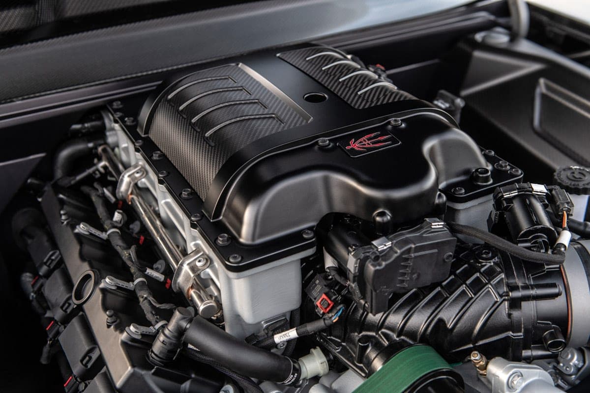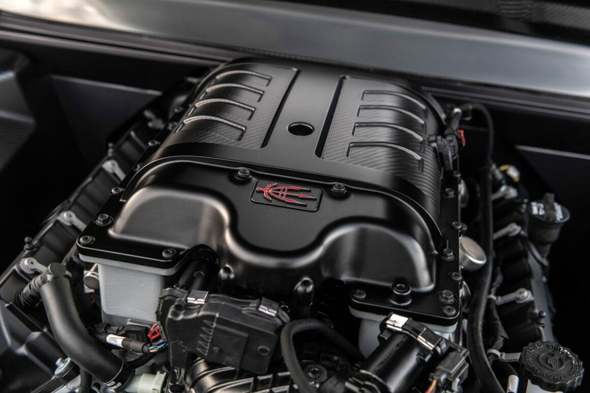 Avec une puissance de 1.000 chevaux et un couple de 950 lb-pi, le moteur Hellcrate n’avait pas besoin d’améliorations de performance. L’équipe SpeedKore a construit un échappement personnalisé à l’aide de collecteurs fabriqués et de deux silencieux Magnaflow et a soutenu le moteur avec une transmission automatique à huit vitesses ZF 8HP90 de Dodge Demon. La carrosserie et le moteur sont soutenus par un châssis personnalisé conçu par SpeedKore.