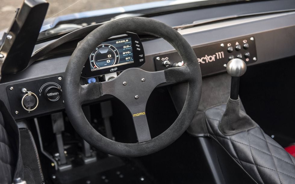 La longueur du levier devait être le meilleur compromis pour la tâche à accomplir. De même, le diamètre du volant gainé de daim, petit et racé, choisi pour le look et le manque d’espace vital implique des biceps développés pour réaliser tout effort de direction. Si vous cherchez une voiture de piste que vous pouvez conduire jusqu’à la piste et revenir tout en vous sentant comme un morceau de bœuf pulvérisé, cela pourrait être ça.