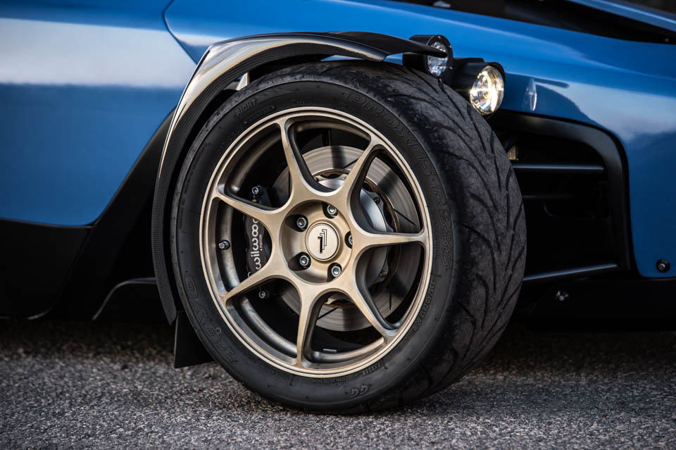 Les panneaux de carrosserie sont montés sur un châssis Chromoly conçu par Palatov Motorsport. L’équipement comprend des ailes en fibre de carbone, des arceaux de sécurité doubles, des phares bi-xénon, des spoilers ARP Performance avant et arrière en fibre de carbone, des feux arrière Hella LED et des clignotants à DEL. Les jantes HRE de 17po sont enveloppées dans des pneus Toyo Proxes R888R.