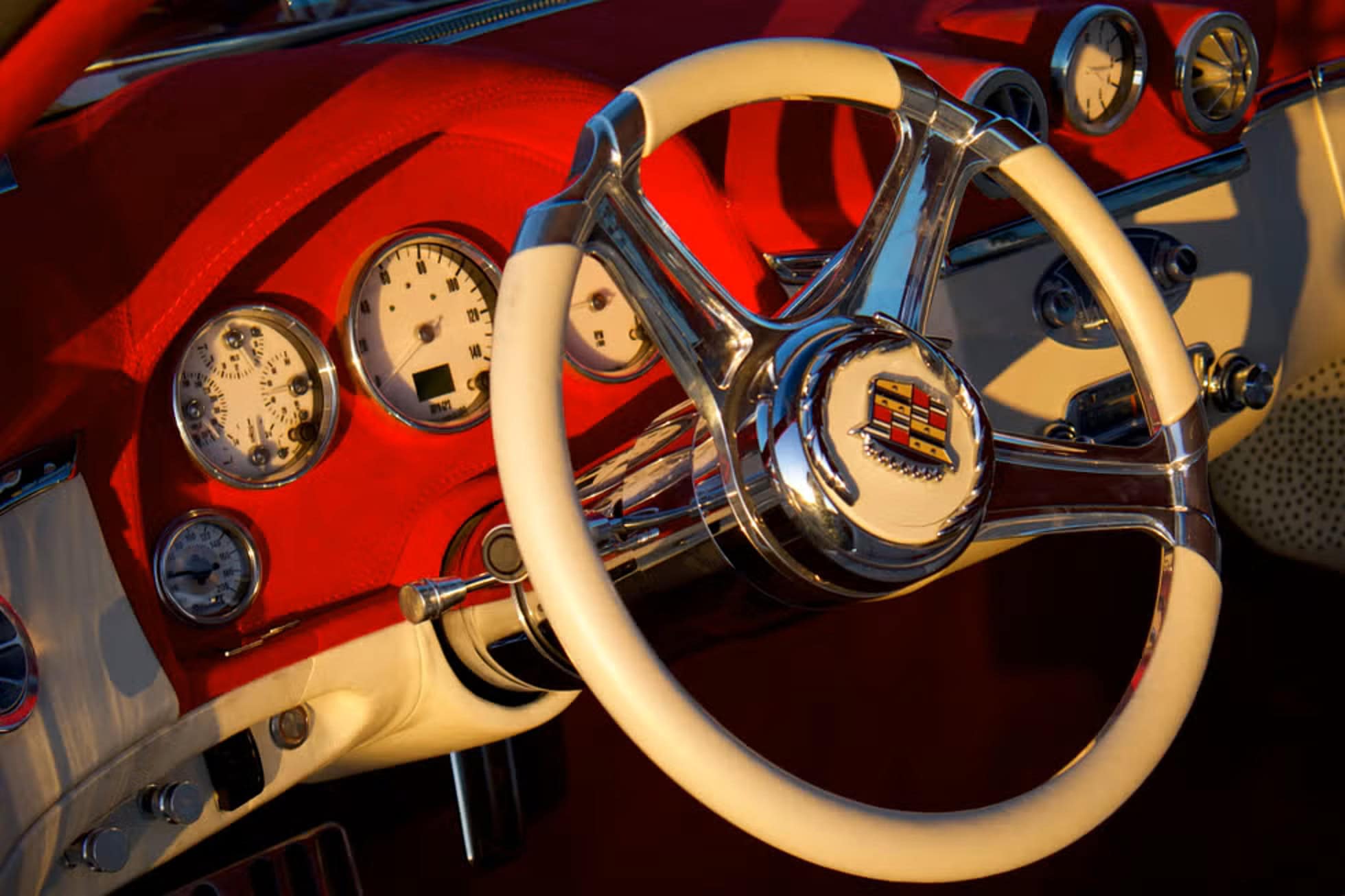 Sa première initiative fut de l’emmener à un rassemblement de voitures anciennes à Lodi, qui a lieu tous les jeudis soirs au restaurant A&W local. Le moteur avait été remonté avec une telle précision qu’il fallait qu’il soit glacé pour le redémarrer ; Clark dut donc patienter des heures avant de pouvoir rentrer chez lui après le rassemblement. Et puis, les phares refusèrent de fonctionner. “L’Eldomino est un projet en constante évolution. Une restauration comme celle-ci n’est jamais vraiment terminée”. Clark espère présenter sa voiture à ses premiers grands salons automobiles en 2026. Vu le style résolument extravagant du véhicule, il s’est offert un costume Gucci en velours rouge pour l’occasion. Lors d’un court tour de sa propriété, il conduit avec un sourire aussi large que le pare-chocs avant chromé de l’Eldomino, si imposant qu’il faut être deux pour le soulever.
