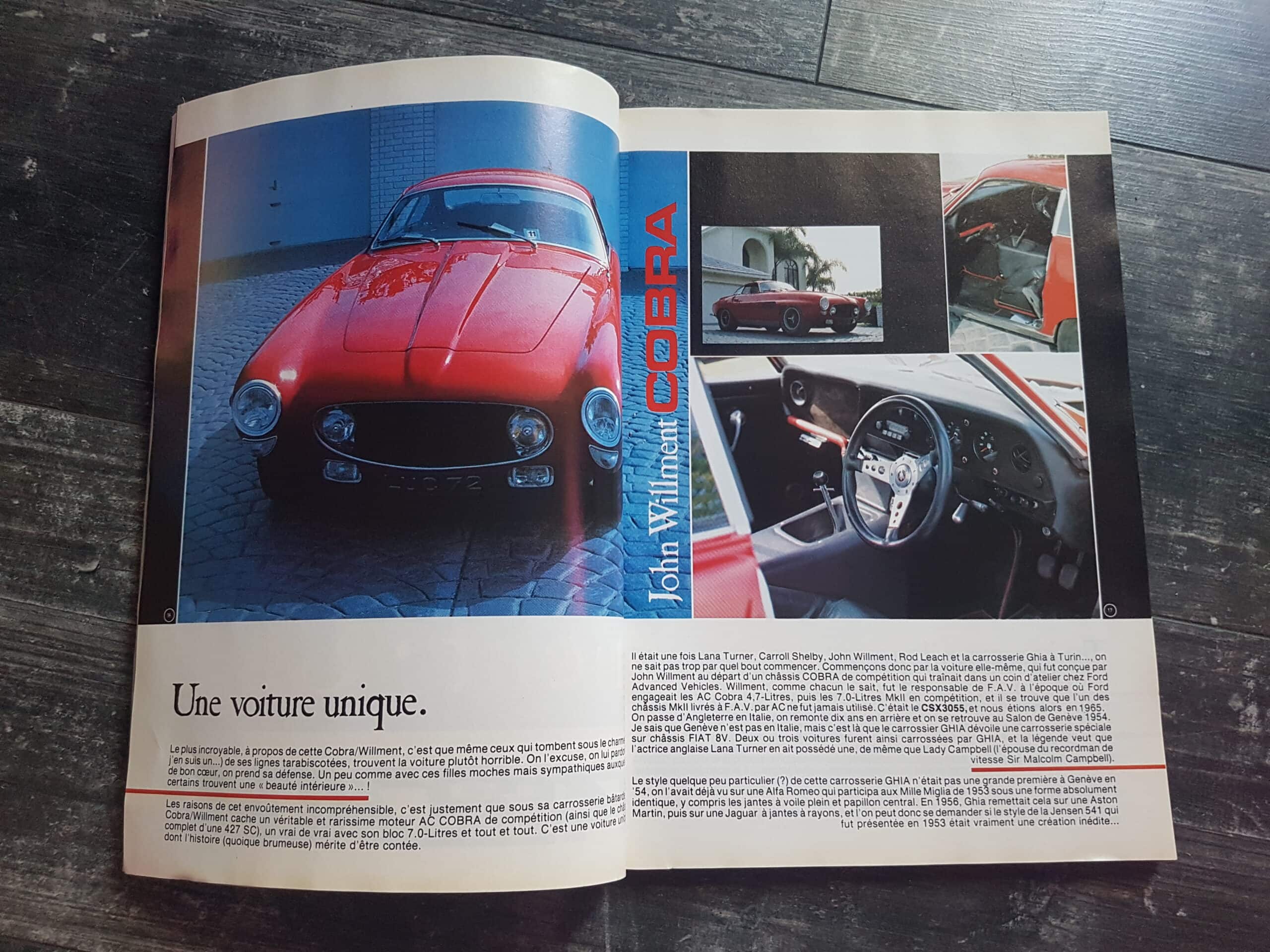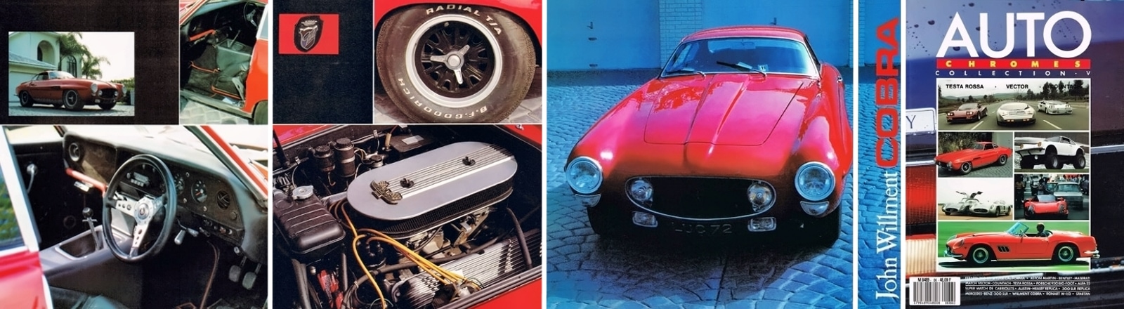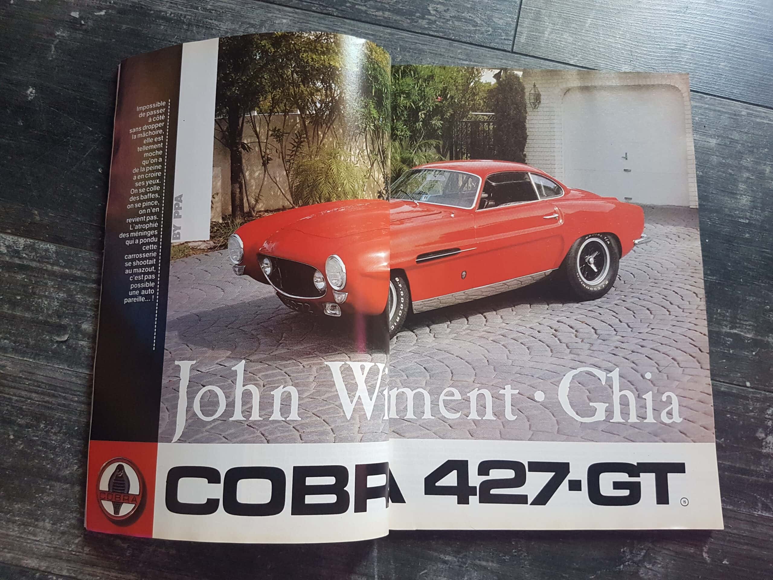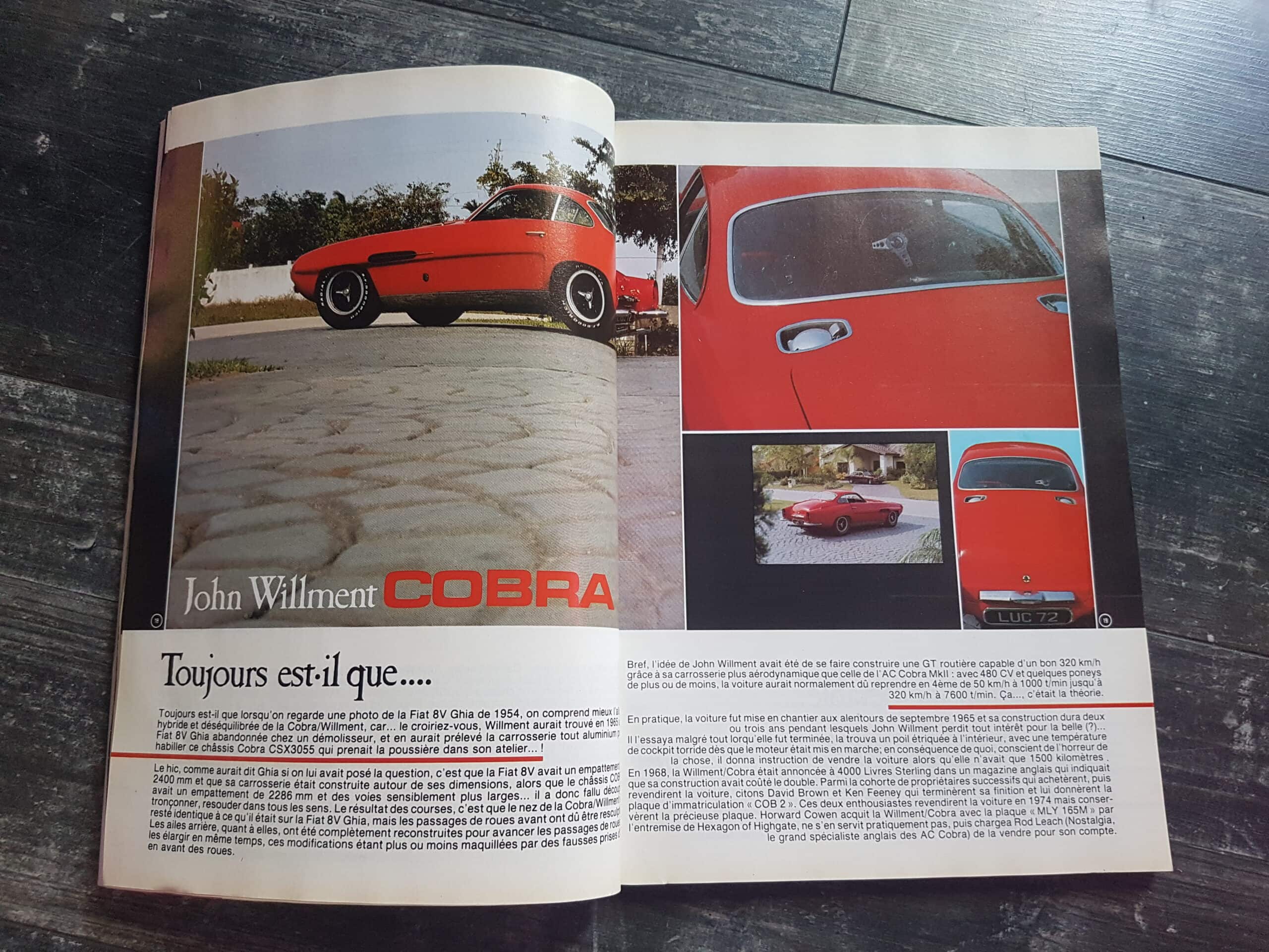 Le temps de réfléchir à l’acheter 50.000$c’est “The Checkered Flag” à Marina Del Rey, Californie qui m’a battu à plate-couture. Il l’a exposée pour la vendre le double, soit un peu plus de 100.000$ !!! John Mc Evoy que j’employais comme Rédacteur en Chef aux cotés de Jacky Ickx pour mes magazines des années ’80/’90 dépité comme moi que la Cobra-Willment nous passe sous le nez, s’est lâché pour écrire : “Impossible de passer à côté sans se “dropper” la mâchoire… Elle est tellement moche qu’on a de la peine à en croire ses yeux. On se colle des baffes, on se pince, on n’en revient pas. L’atrophié des méninges qui a pondu cette horreur se shootait au mazout… Ce n’est pas possible une auto pareille ! Et pourtant, le plus incroyable, à propos de cette Cobra/Willment, c’est que même ceux qui tombent sous le charme (et j’en suis un tout comme mon Boss l’éditeur Patrice De Bruyne…) de ses lignes tarabiscotées, trouvent la voiture plutôt horrible. On l’excuse, on lui pardonne de bon cœur, on prend sa défense, un peu comme avec ces filles moches mais sympathiques auxquelles certains trouvent une “beauté intérieure” ! Les raisons de cet envoûtement incompréhensible, c’est justement que sous sa carrosserie bâtarde de Fiat 8V dont les rares survivantes en version d’origine, se négocient des fortunes, la Cobra/Willment cache un véritable et rarissime moteur AC Cobra de compétition (ainsi que le châssis complet d’une 427 SC), un vrai de vrai avec son bloc 7.0-Litres et tout et tout ! C’est une voiture unique, dont l’histoire (quoique brumeuse) mérite d’être contée.