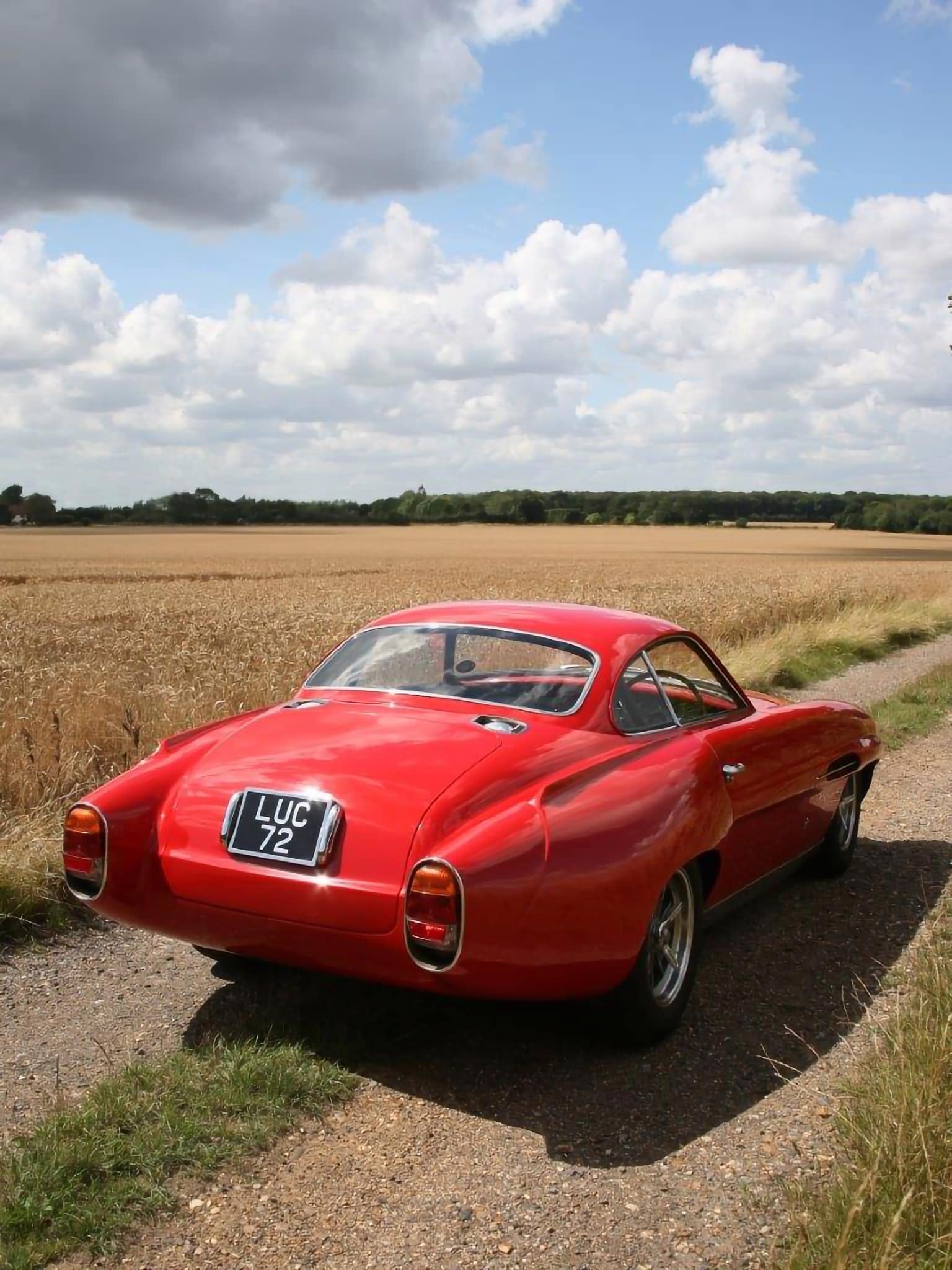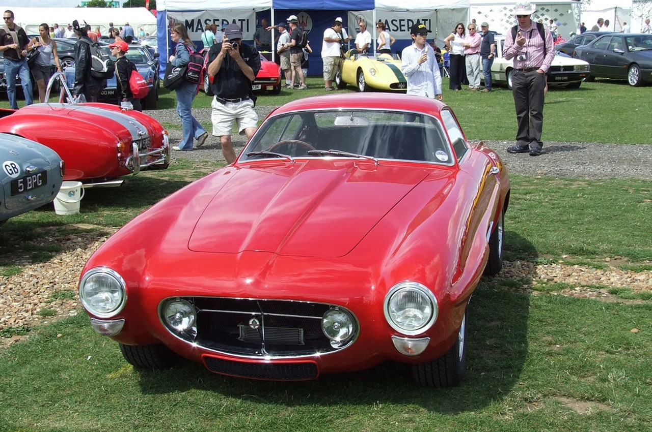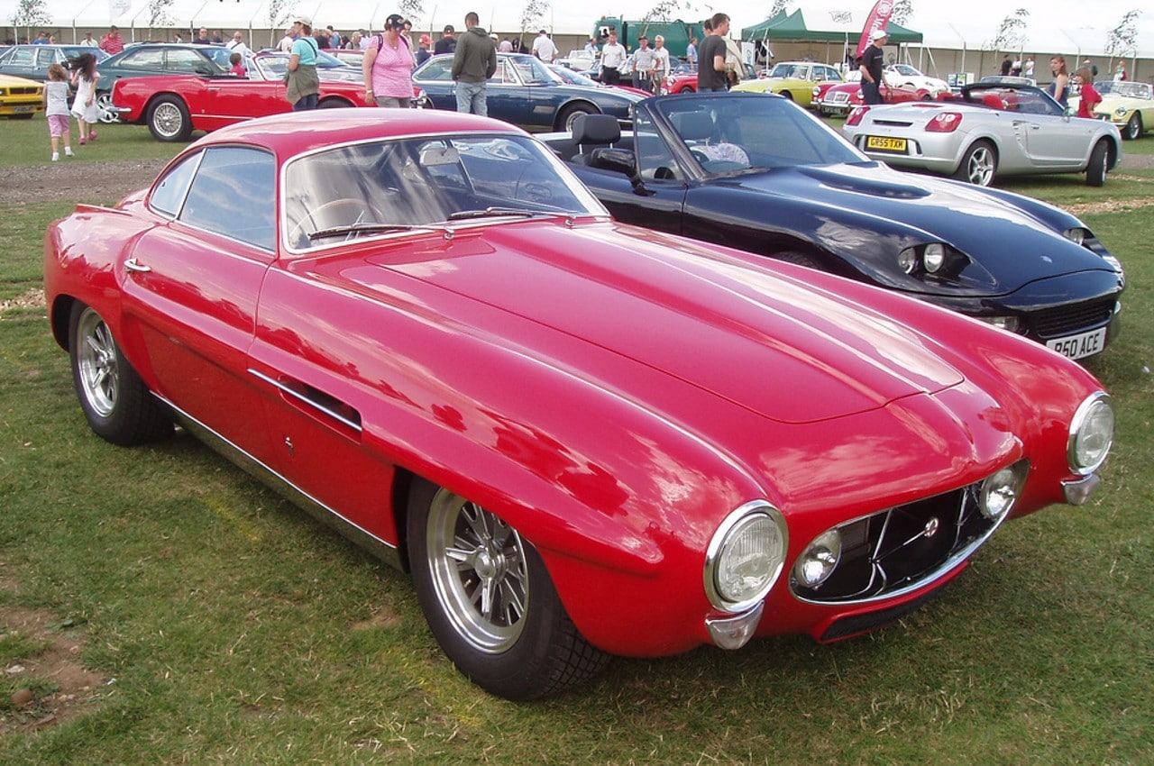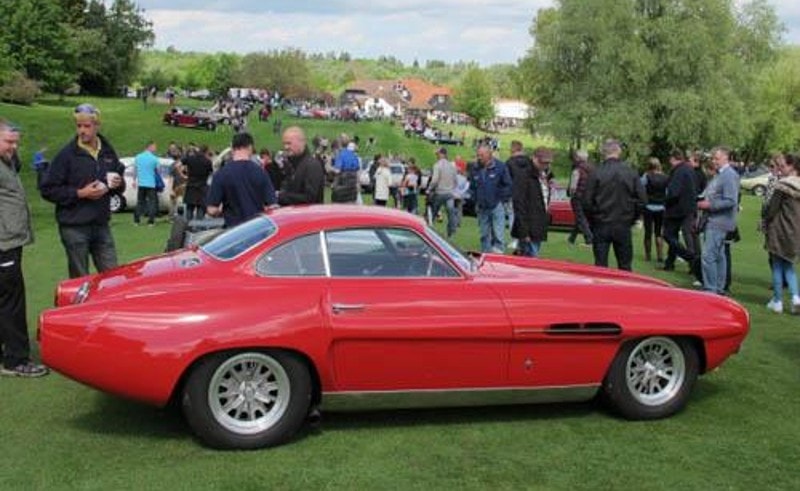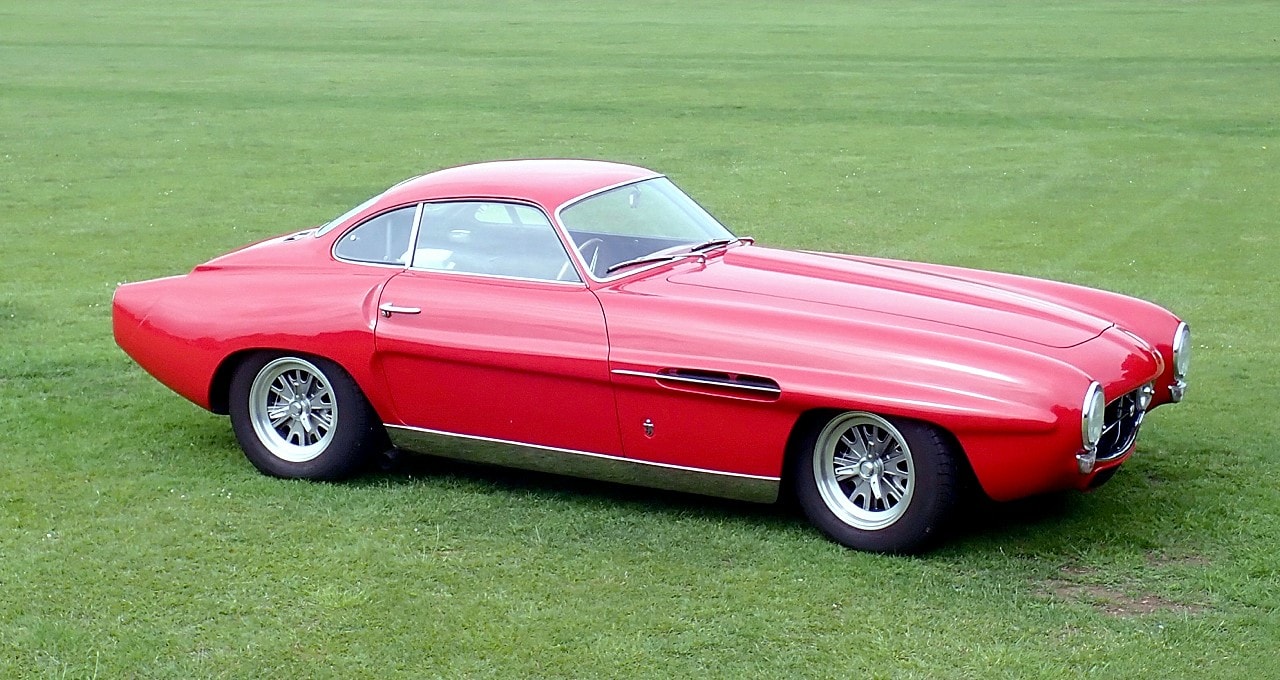 Il était une fois Lana Turner, Carroll Shelby, John Willment, Rod Leach, Fiat… et la carrosserie Ghia à Turin… On ne sait pas trop par quel bout commencer. Commençons donc par la voiture elle-même, la Fiat 8V (“Otto Vu” à l’italienne), est un coupé deux places présenté pour la première fois au Salon International de Genève de mars 1952. Cette voiture était entièrement nouvelle et n’utilisait aucun composant déjà connu sur un autre modèle de la marque Fiat, le nouveau moteur, un V8 à 70° de 1996 cm3 était équipé de 2 carburateurs et développait 105 chevaux. Les versions commercialisées comportaient 3 carburateurs et développaient 127 chevaux, leur vitesse atteignait les 190 km/h, ce qui était exceptionnel pour une voiture de série à l’époque. L’aérodynamique avait été soignée grâce à une mise au point réalisée dans le tunnel-soufflerie Fiat d’Orbassano. Disposant d’un châssis tubulaire, plus rigide et plus léger qu’une coque intégrale, la carrosserie en acier était le fruit de l’étude de l’ingénieur Rapi. En 1954, peu de temps avant l’arrêt de sa fabrication, une version prototype avec une carrosserie en fibres de verre a été présentée, mais elle ne connaîtra pas de développement industriel. 114 exemplaires de ce modèle ont été fabriqués, y compris les versions carrossées par Ghia et Siata. D’autres ateliers de carrosserie comme Vignale, Pininfarina et Zagato réaliseront aussi d’intéressants exemplaires. On passe d’Angleterre en Italie, on remonte dix ans en arrière et on se retrouve au Salon de Genève 1954.