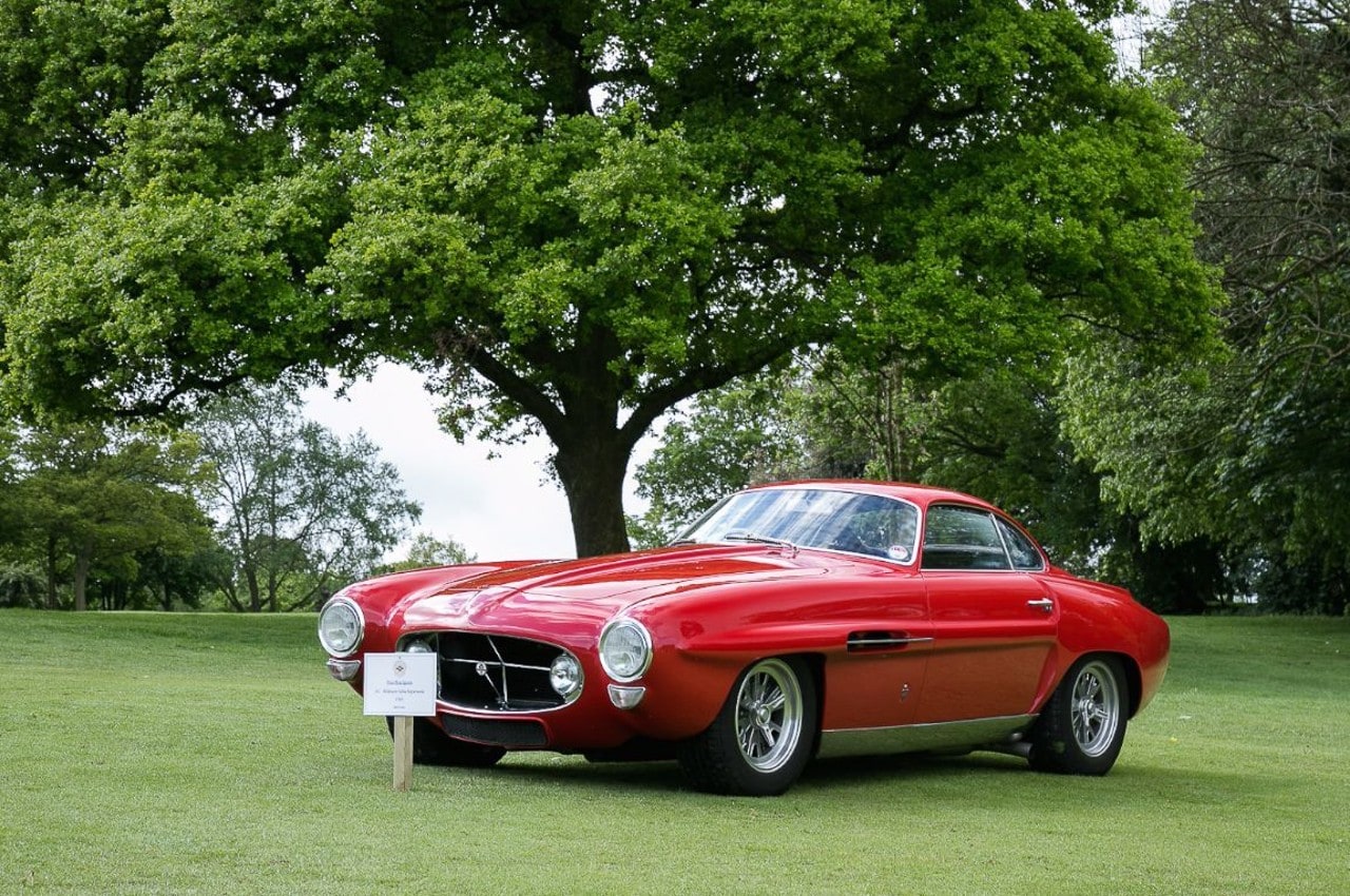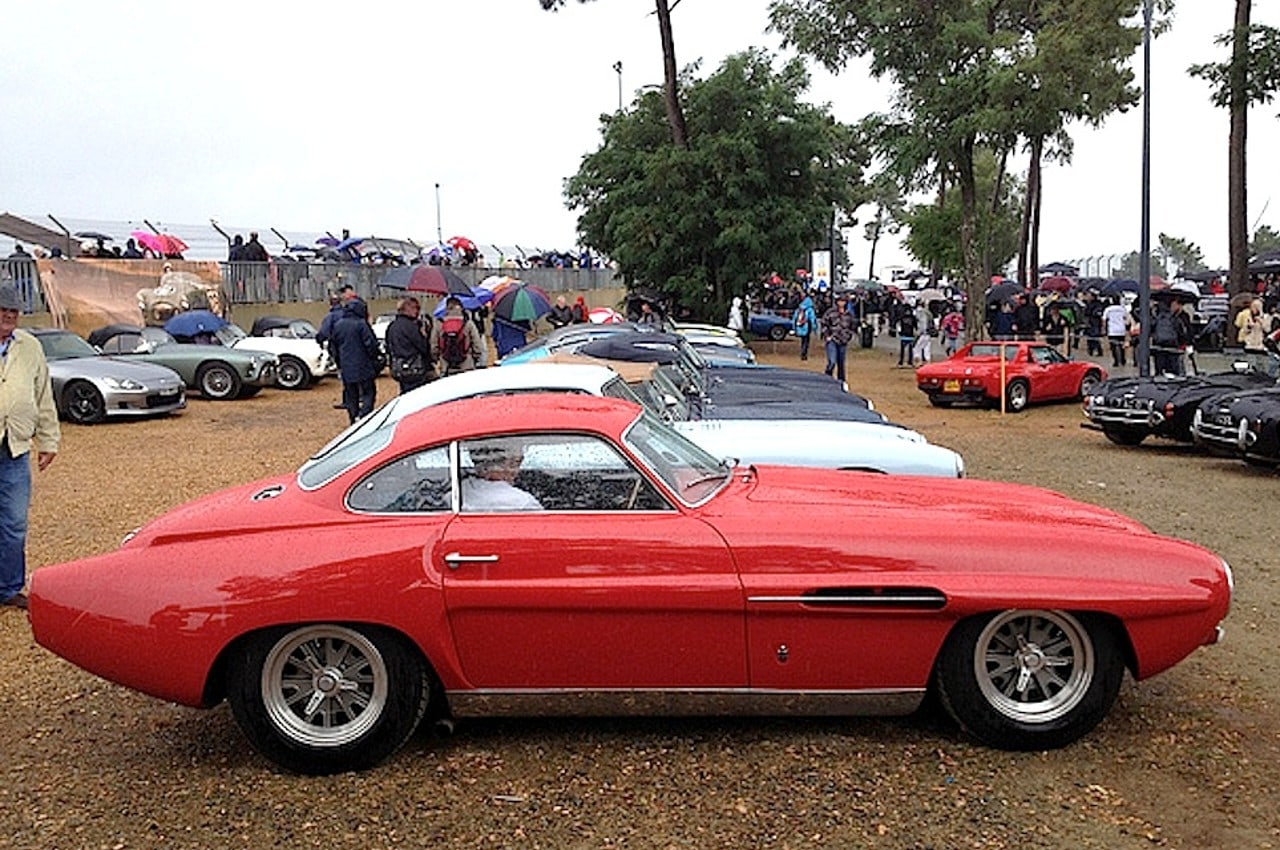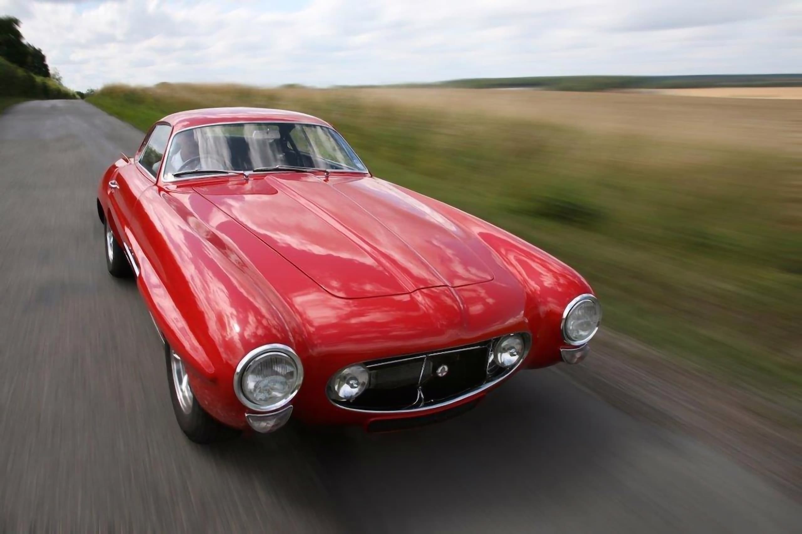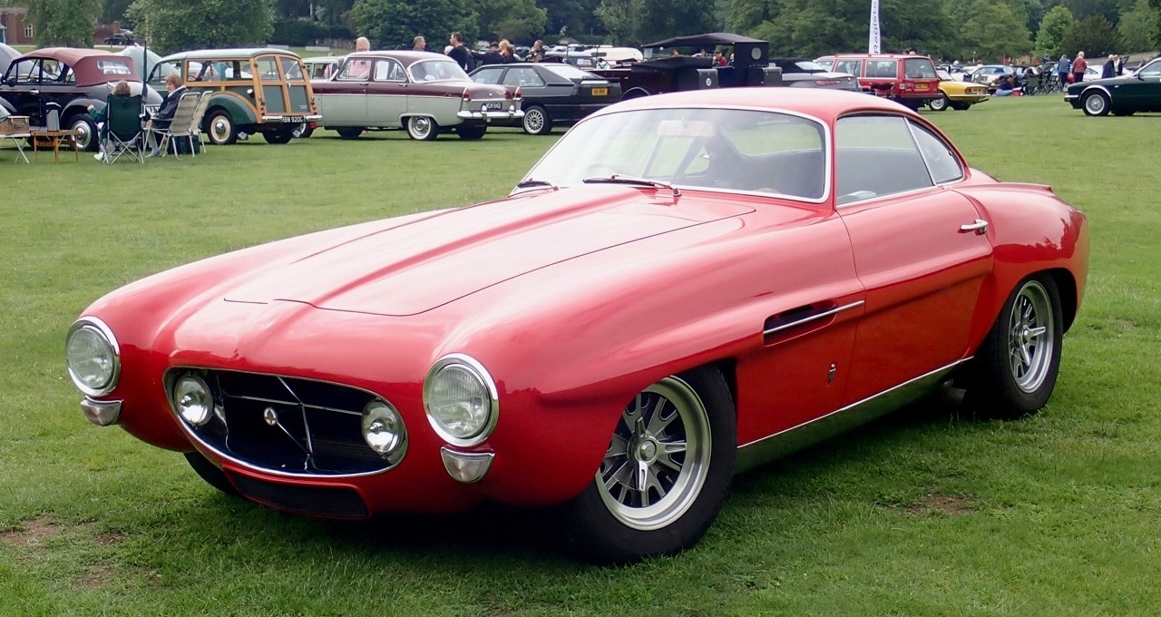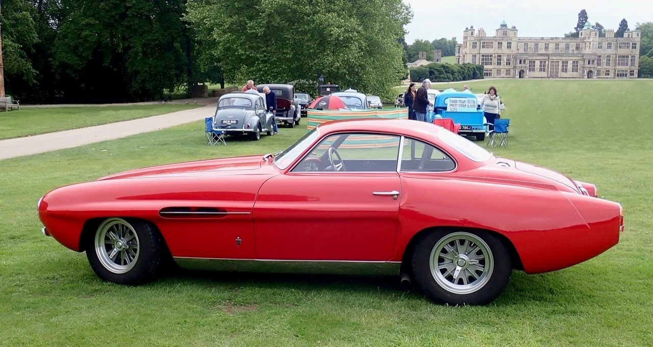 Il était une fois Lana Turner, Carroll Shelby, John Willment, Rod Leach, Fiat… et la carrosserie Ghia à Turin… On ne sait pas trop par quel bout commencer. Commençons donc par la voiture elle-même, la Fiat 8V (“Otto Vu” à l’italienne), est un coupé deux places présenté pour la première fois au Salon International de Genève de mars 1952. Cette voiture était entièrement nouvelle et n’utilisait aucun composant déjà connu sur un autre modèle de la marque Fiat, le nouveau moteur, un V8 à 70° de 1996 cm3 était équipé de 2 carburateurs et développait 105 chevaux. Les versions commercialisées comportaient 3 carburateurs et développaient 127 chevaux, leur vitesse atteignait les 190 km/h, ce qui était exceptionnel pour une voiture de série à l’époque. L’aérodynamique avait été soignée grâce à une mise au point réalisée dans le tunnel-soufflerie Fiat d’Orbassano. Disposant d’un châssis tubulaire, plus rigide et plus léger qu’une coque intégrale, la carrosserie en acier était le fruit de l’étude de l’ingénieur Rapi. En 1954, peu de temps avant l’arrêt de sa fabrication, une version prototype avec une carrosserie en fibres de verre a été présentée, mais elle ne connaîtra pas de développement industriel. 114 exemplaires de ce modèle ont été fabriqués, y compris les versions carrossées par Ghia et Siata. D’autres ateliers de carrosserie comme Vignale, Pininfarina et Zagato réaliseront aussi d’intéressants exemplaires. On passe d’Angleterre en Italie, on remonte dix ans en arrière et on se retrouve au Salon de Genève 1954.