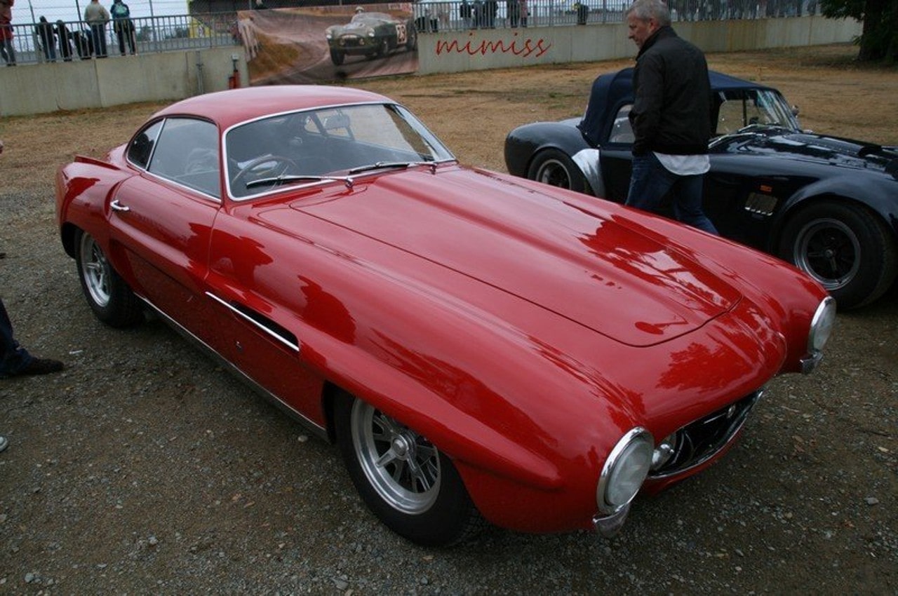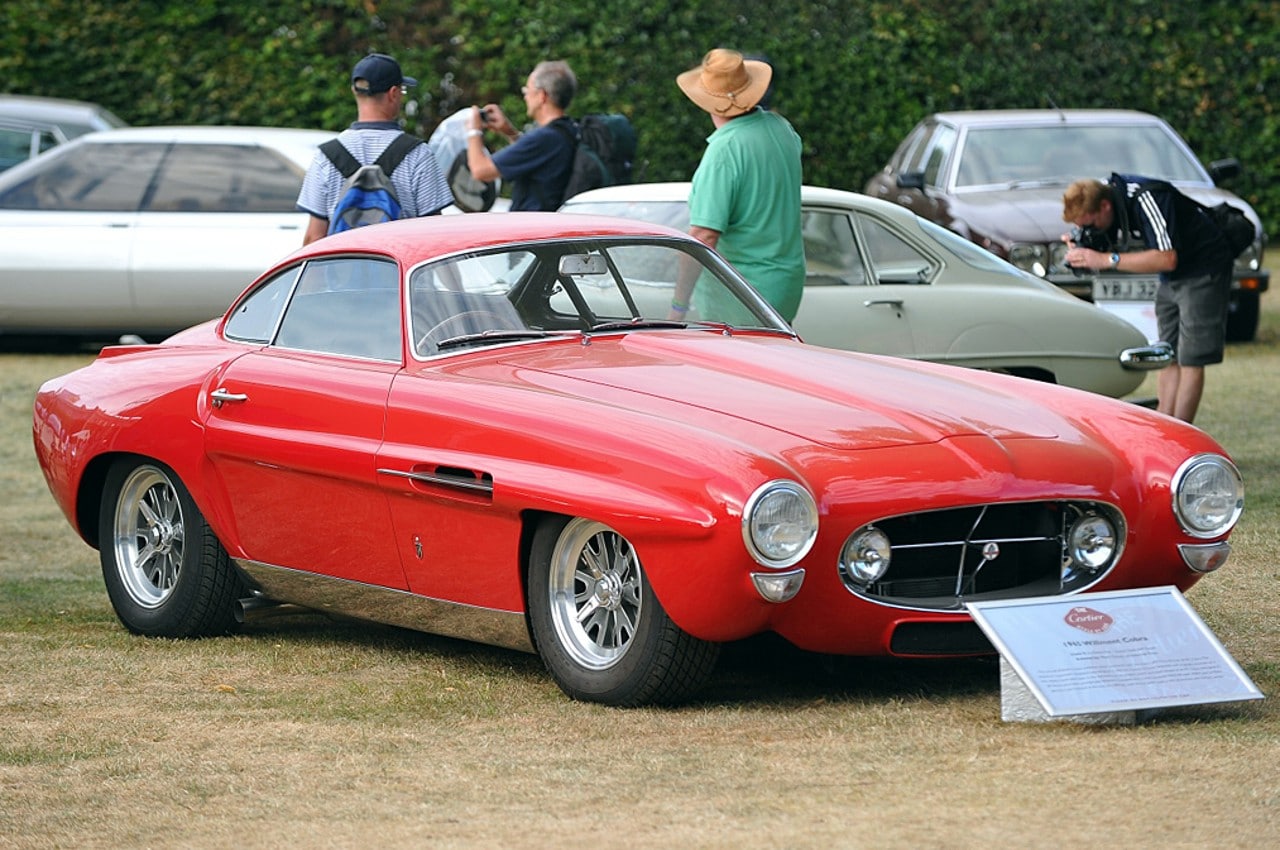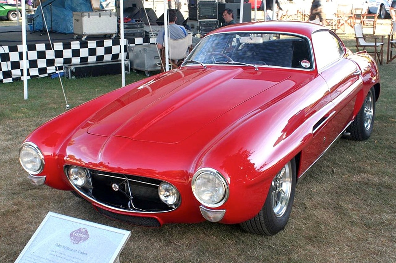 Je sais que Genève n’est pas en Italie, mais c’est là que le carrossier Ghia y dévoilait une carrosserie spéciale sur châssis Fiat 8V. Deux ou trois voitures furent ainsi carrossées par Ghia… et la légende veut que l’actrice anglaise Lana Turner en ait possédé une, de même que Lady Campbell (l’épouse du recordman de vitesse Sir Malcolm Campbell). Ces vieilles rumeurs sont fausses plus particulièrement concernant Lady Campbell ! Quand j’ai entendu cette rumeur pour la 19e fois, je me suis impatienté et je lui ai parlé au téléphone et elle m’a dit : “Que j’en aurais été propriétaire, ce n’est pas vrai, on m’a cependant proposé cette voiture, ça oui, elle ou une Jaguar Type E et j’ai pris la Jaguar”. Le style quelque peu particulier (sic !) de cette carrosserie Ghia n’était pas une grande première à Genève en ’54, on l’avait déjà vu sur une Alfa Romeo qui participa aux Mille Miglia de 1953 sous une forme absolument identique, y compris les jantes à voile plein et papillon central. En 1956, Ghia remettait cela sur une Aston Martin, puis sur une Jaguar à jantes à rayons… et l’on peut donc se demander si le style de la Jensen 541 qui fut présentée en 1953 était vraiment une création inédite… Toujours est il que lorsqu’on regarde une photo de la Fiat 8V Ghia de 1954, on comprend mieux l’allure hybride et déséquilibrée de la Cobra/Willment, car, le croiriez-vous, Willment aurait trouvé en 1965 une Fiat 8V Ghia abandonnée chez un démolisseur… et en aurait prélevé la carrosserie tout aluminium pour habiller ce châssis Cobra CSX3055 qui prenait la poussière dans son atelier”… !