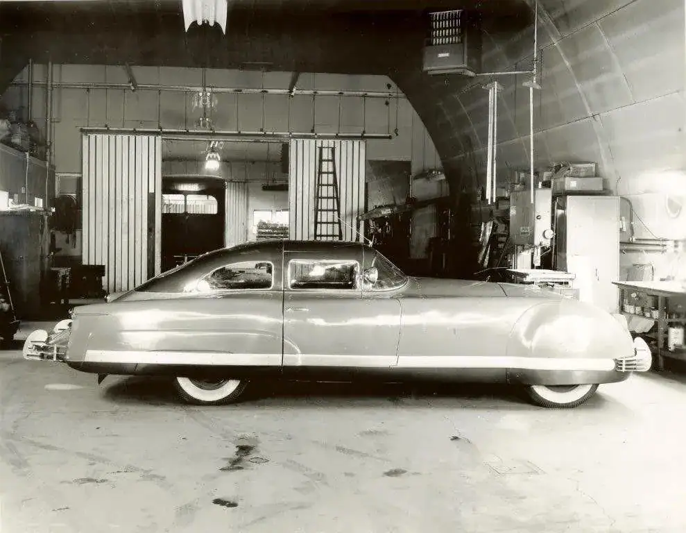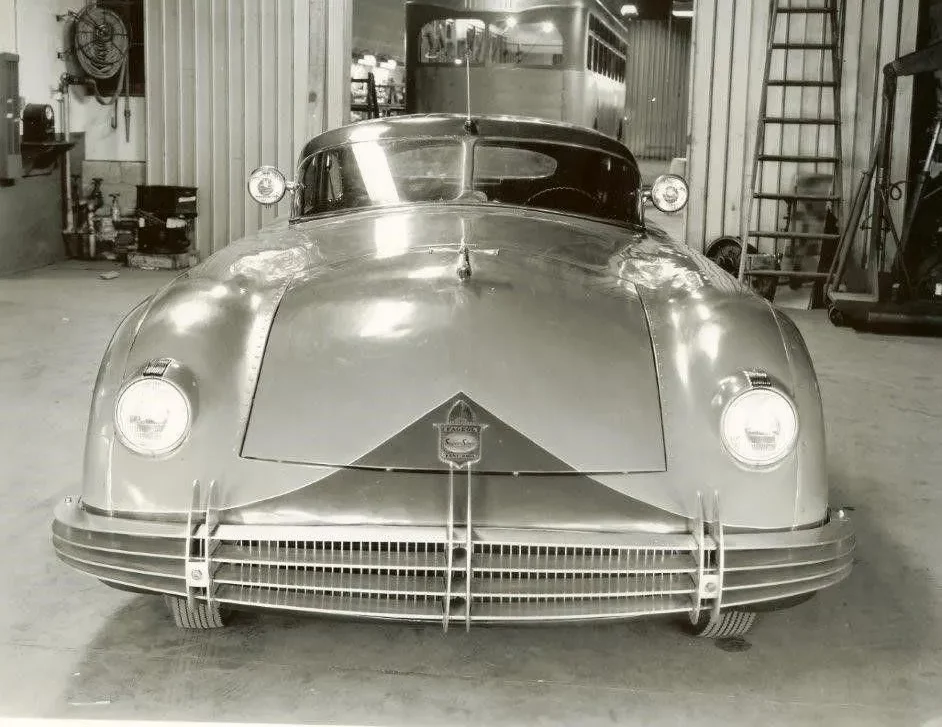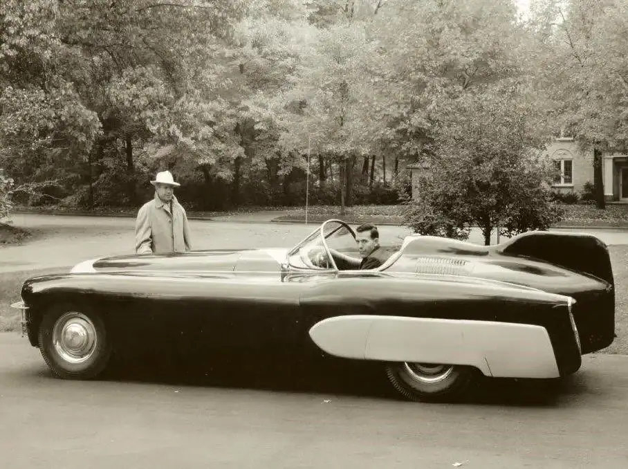 “Mon père Lou Fageol menait une double vie”, m’a raconté son fils Ray Fageol qui avait 16 ans à l’époque et est maintenant presque centenaire : “Il était président de Twin Coach Co et continuellement débordé, même pour moi, je ne pouvais pas le voir. Mais il avait aussi sa passion pour le sport, les bateaux et les voitures. C’est ainsi qu’en 1948, je lui a fait acheter le prototype de Joel Thorne qui a été envoyé à l’atelier expérimental de Twin Coach Co à Kent, dans l’Ohio, aux USA”... Lou Fageol ne partageait cependant pas les ambitions de Joel Thorne pour établir des records du monde avec cette voiture… Lou Fageol envisageait plutôt profiter de l’avènement des autoroutes américaines découvertes en 1944/1945 lors de la libération de l’Europe et ainsi recopiées sur celles des nazis (de même que les fusées et autres folies), où les automobilistes américains fileraient sans effort à des vitesses à trois chiffres d’une ville à l’autre dans des voitures puissantes et aérodynamiques, toutes semblables (voire clonéess) au prototype Thorne-Sparks-Diedt.