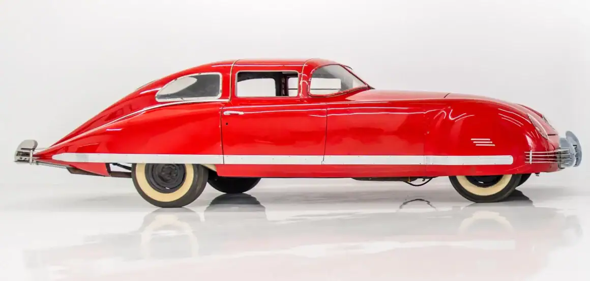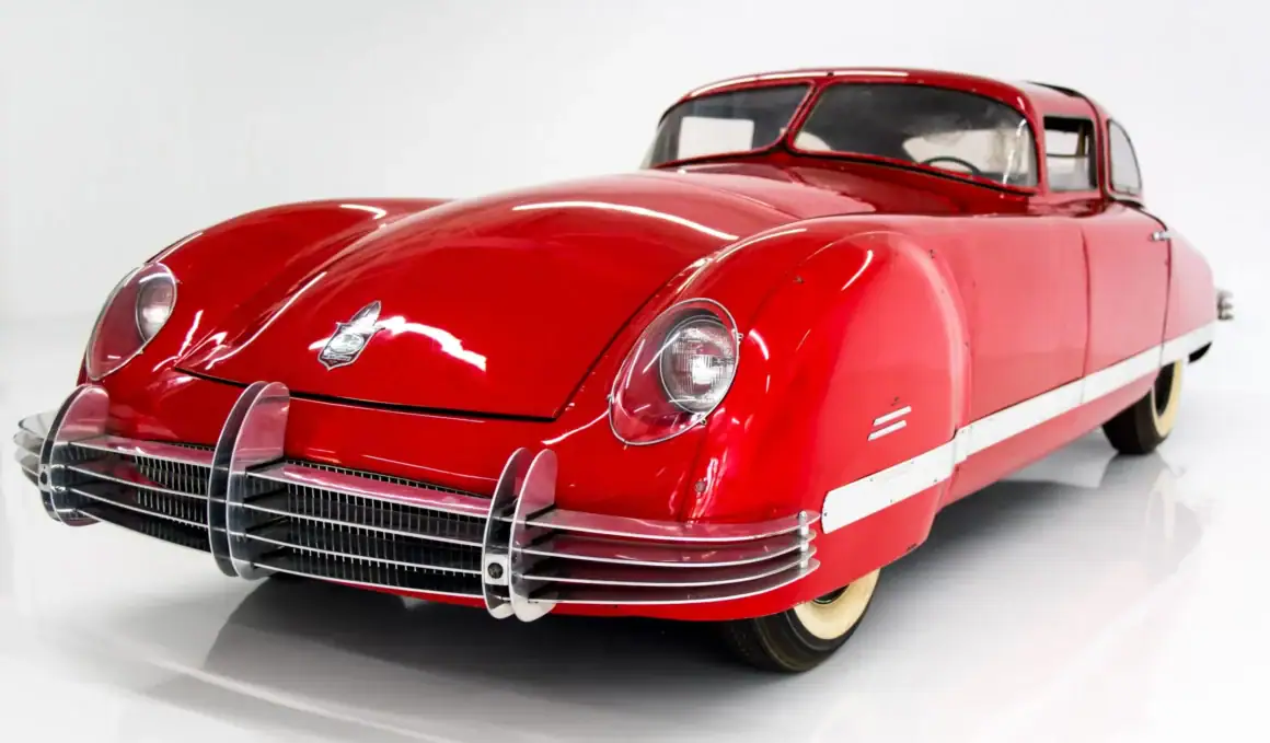 Nombreux sont les collectionneurs de voitures rares et exclusives qui rêvent de posséder un jour la rarissime Fageol Supersonic telle qu’elle était en 1949, lorsque cet étrange et lourd coupé sport profilé (pour l’époque) fit une apparition remarquée aux 500 Miles d’Indianapolis, incarnant la vision audacieuse, téméraire et hallucinée, de Lou Fageol pour l’avenir de l’automobile américaine qui devait être capable d’atteindre de très grandes vitesses (300km/h). Mark Brinker, comme tous les collectionneurs foldingues, nourrissait également ce souhait depuis 25 ans, et lorsqu’il a croisé Lou Fageol ils ont décidés de collaborer… Illuminés par l’un l’autre, ils sont parvenus à rassembler toutes sortes de pièces automobiles sous la forme d’un gigantesque bric-à-brac, de “choses” dispersées depuis 70 ans dans des casses, convaincu que la Fageol Supersonic deviendrait une automobile d’avenir, et plus que certainement certainement “la” voiture américaine la plus passionnante du monde !
