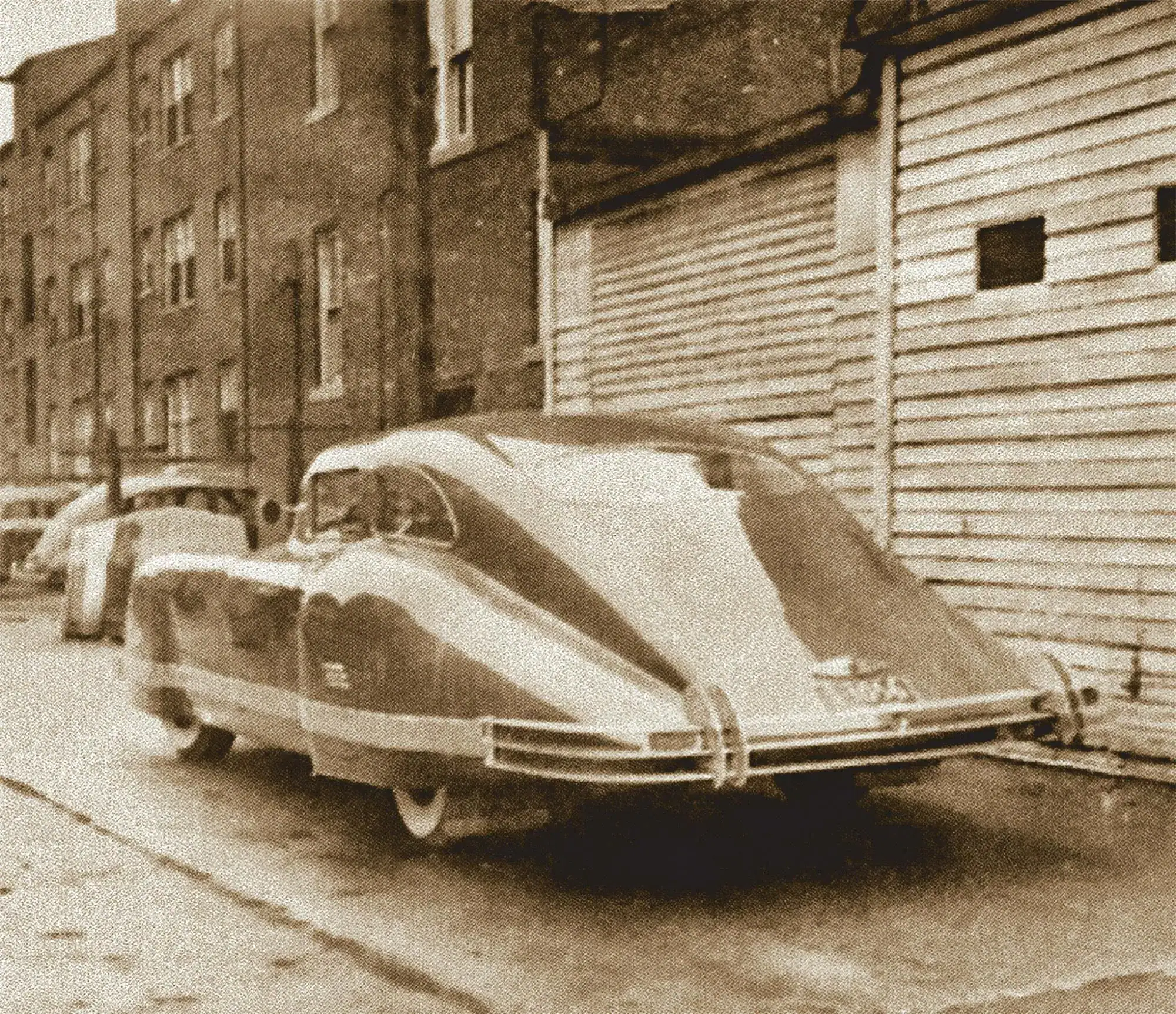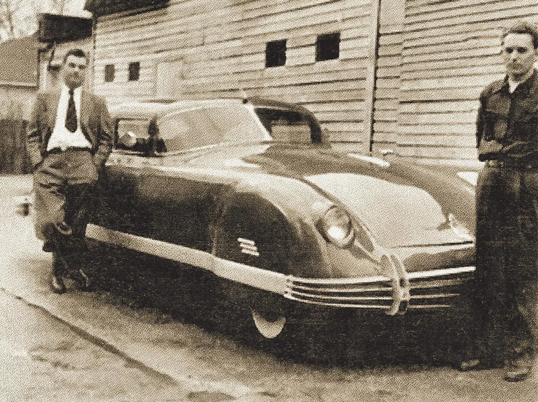 “Mon père Lou Fageol menait une double vie”, m’a raconté son fils Ray Fageol qui avait 16 ans à l’époque et est maintenant presque centenaire : “Il était président de Twin Coach Co et continuellement débordé, même pour moi, je ne pouvais pas le voir. Mais il avait aussi sa passion pour le sport, les bateaux et les voitures. C’est ainsi qu’en 1948, je lui a fait acheter le prototype de Joel Thorne qui a été envoyé à l’atelier expérimental de Twin Coach Co à Kent, dans l’Ohio, aux USA”... Lou Fageol ne partageait cependant pas les ambitions de Joel Thorne pour établir des records du monde avec cette voiture… Lou Fageol envisageait plutôt profiter de l’avènement des autoroutes américaines découvertes en 1944/1945 lors de la libération de l’Europe et ainsi recopiées sur celles des nazis (de même que les fusées et autres folies), où les automobilistes américains fileraient sans effort à des vitesses à trois chiffres d’une ville à l’autre dans des voitures puissantes et aérodynamiques, toutes semblables (voire clonéess) au prototype Thorne-Sparks-Diedt.