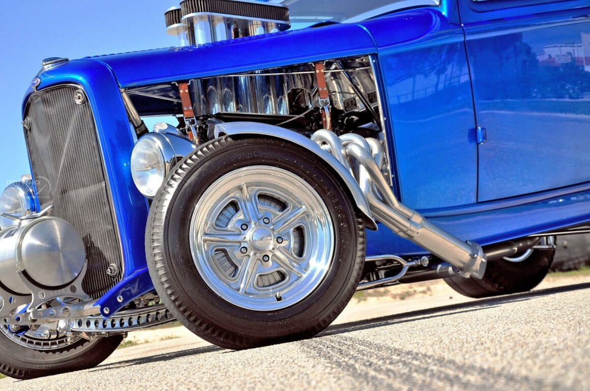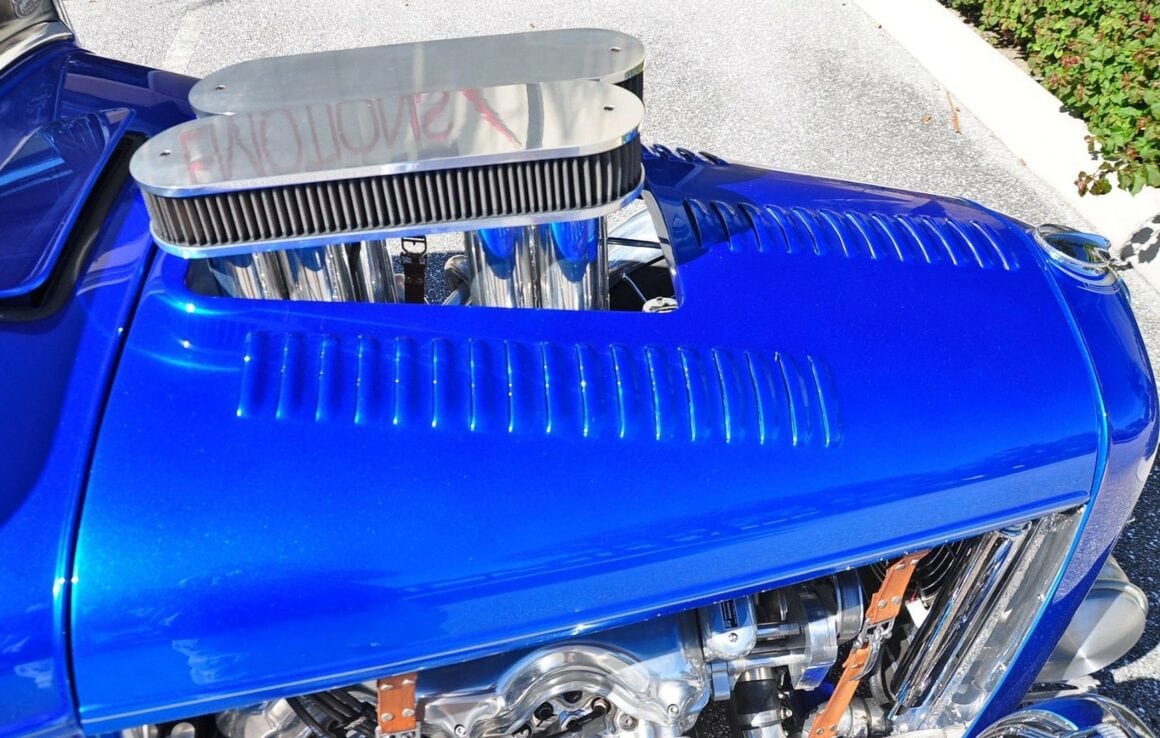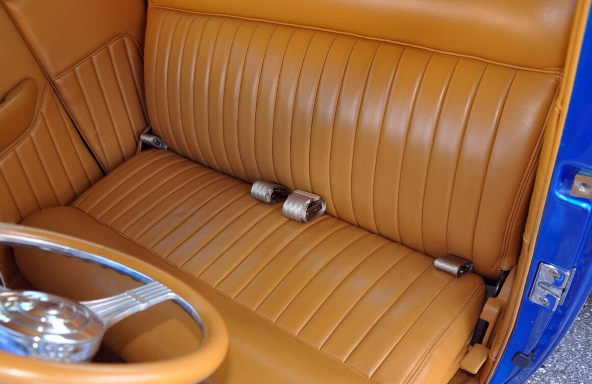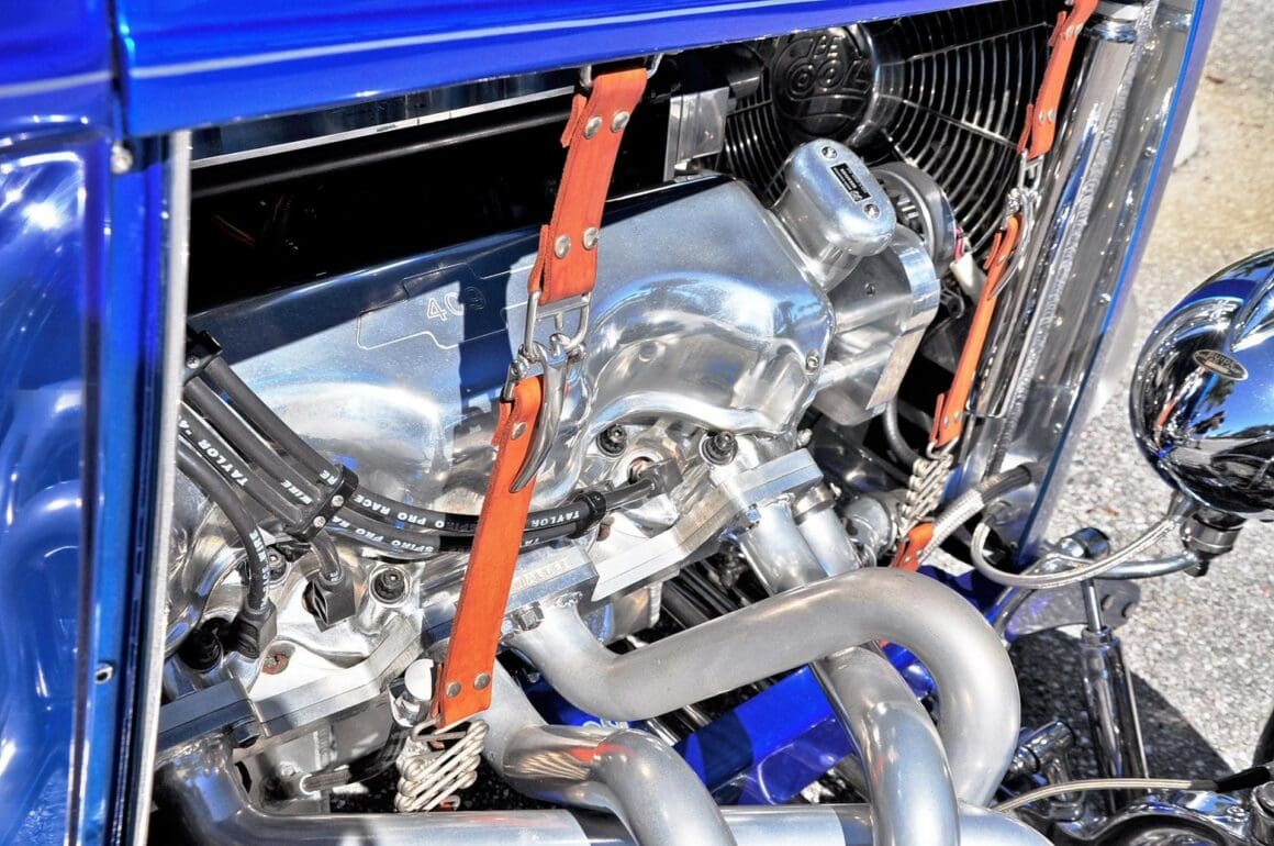 Je vous préviens que ça va être chaud-brûlant, tel que les photos… Je commence cool… Ce Hot Rod Ford Coupe’32 à carrosserie en acier 5 fenêtres n’a que seulement 288 Miles depuis sa construction. Il est équipé d’un V8 409ci réalésé modifié à 509ci avec une transmission automatique turbo 400 3 vitesses et une injection électronique de carburant, la puissance est estimée à 1.000 CV ! Ses freins avant sont des disques Willwood, mais les freins sont des tambour, avec maître-cylindre SoCal, boîtier de direction Vega, pont/différentiel quick-change, tableau de bord en acier, colonne de direction chromée, lunette arrière avec dégivrage, jantes Billett, réservoir de carburant en aluminium, caméra de recul, air-co et bien plus encore !! ! Voilà, c’est tout… C’est tapoté à Saint-Tropez, le village indissociable du mythe Bardot et des villas de rêve face à la Méditerranée. Mais aussi des vignes à perte de vue, des yachts au luxe rutilant (bardés de tant de marbre que c’est presque un miracle qu’ils puissent encore flotter)…
