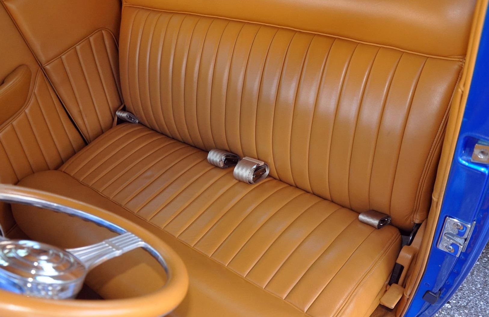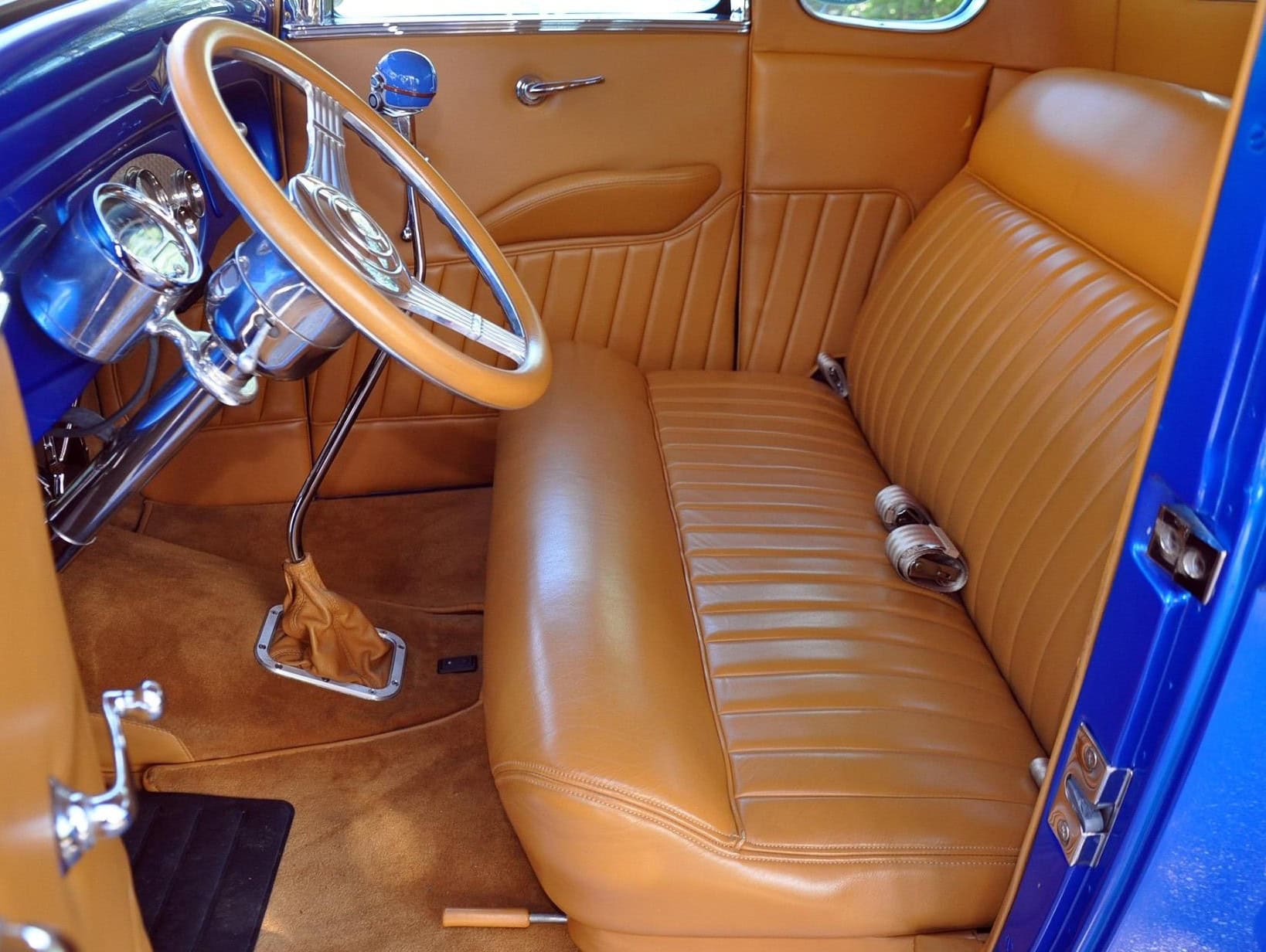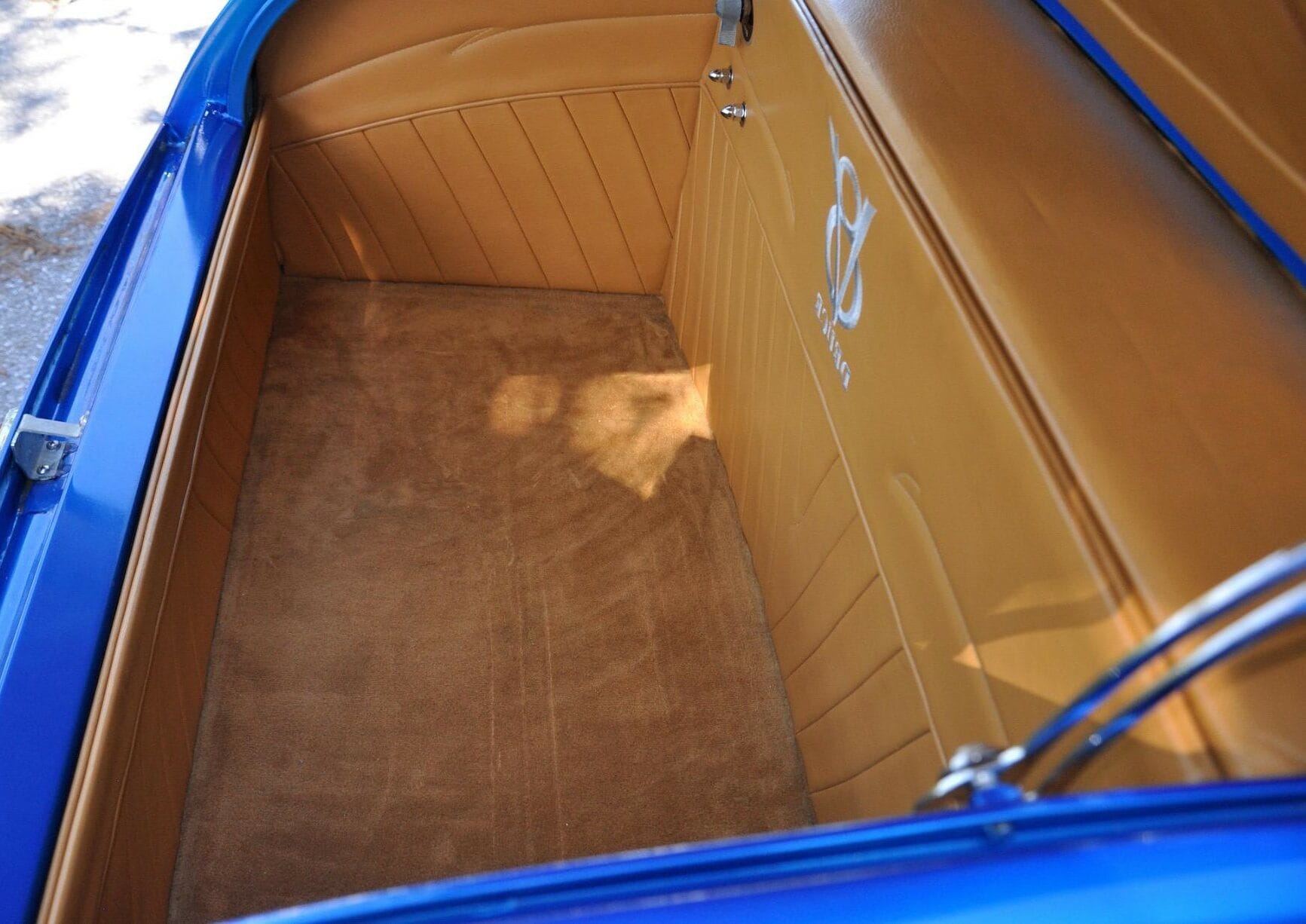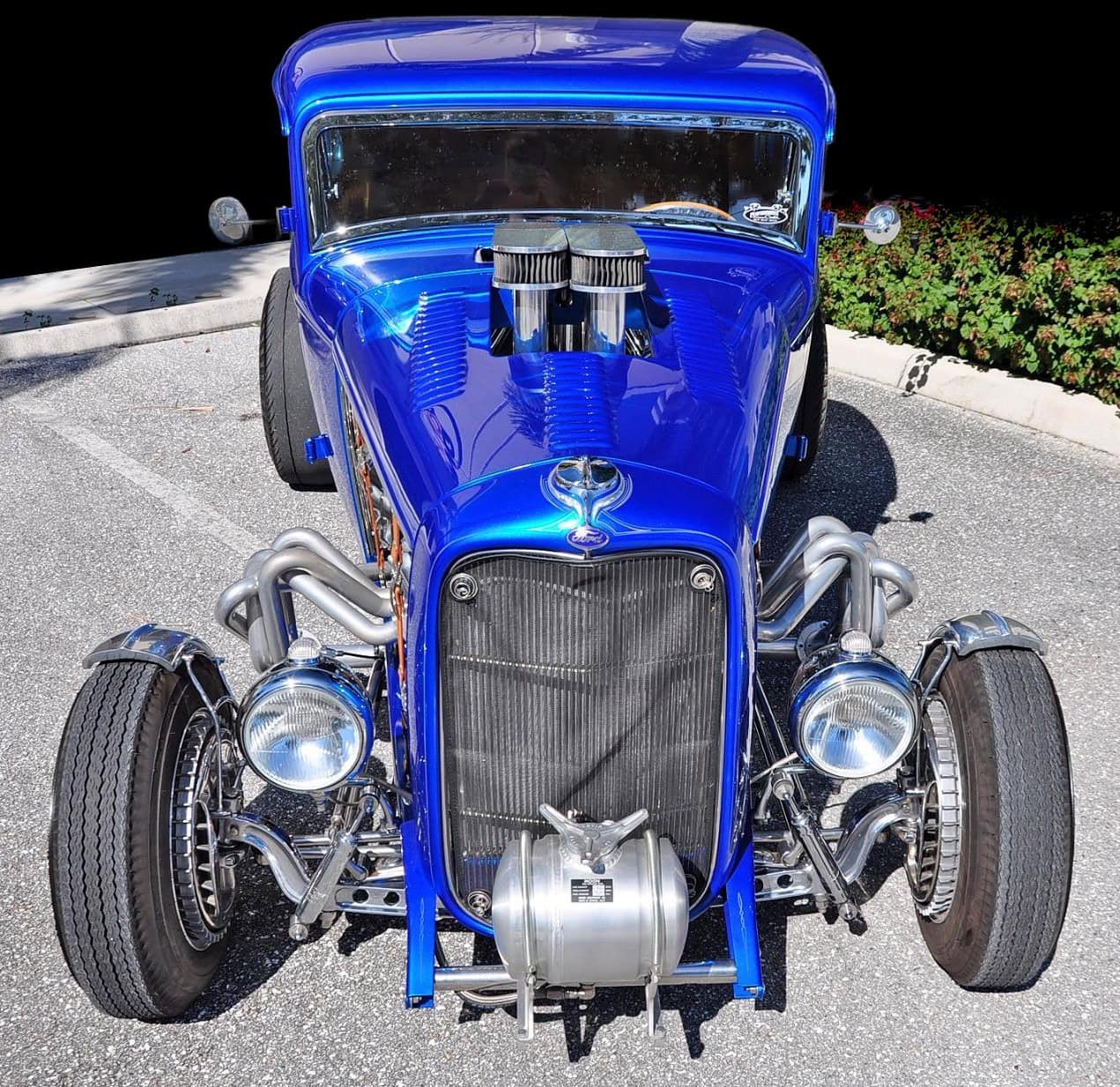Je vous préviens que ça va être chaud-brûlant, tel que les photos… Je commence cool… Ce Hot Rod Ford Coupe’32 à carrosserie en acier 5 fenêtres n’a que seulement 288 Miles depuis sa construction. Il est équipé d’un V8 409ci réalésé modifié à 509ci avec une transmission automatique turbo 400 3 vitesses et une injection électronique de carburant, la puissance est estimée à 1.000 CV ! Ses freins avant sont des disques Willwood, mais les freins sont des tambour, avec maître-cylindre SoCal, boîtier de direction Vega, pont/différentiel quick-change, tableau de bord en acier, colonne de direction chromée, lunette arrière avec dégivrage, jantes Billett, réservoir de carburant en aluminium, caméra de recul, air-co et bien plus encore !! ! Voilà, c’est tout… C’est tapoté à Saint-Tropez, le village indissociable du mythe Bardot et des villas de rêve face à la Méditerranée. Mais aussi des vignes à perte de vue, des yachts au luxe rutilant (bardés de tant de marbre que c’est presque un miracle qu’ils puissent encore flotter)…