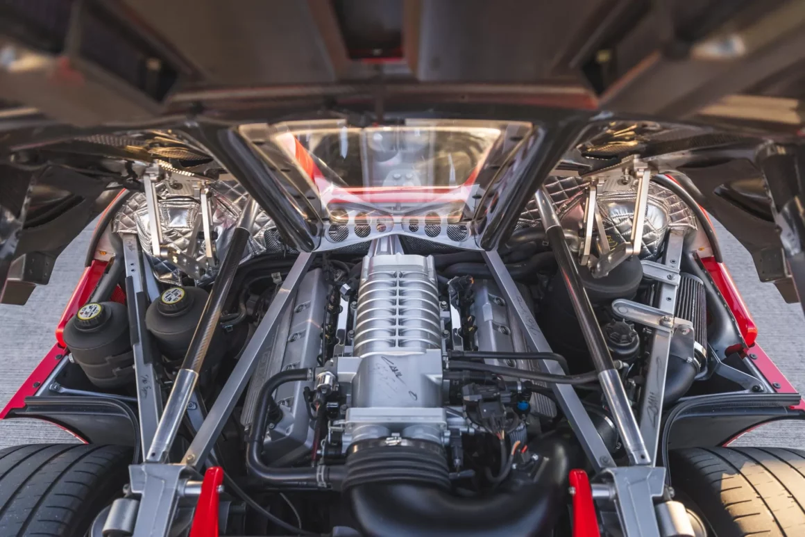 Sachez que le placement de deux turbos peut libérer plus de 1.000 chevaux avec un effort modeste (c’est-à-dire en utilisant toujours le moteur d’origine et le système d’admission à 16 injecteurs de carburant). Les modifications à plus petite échelle comprennent un échappement Cat-back, un refroidisseur de boîte-pont, un accoudoir/rangement sur la console centrale, des coussinets d’accoudoir pour les portes, des harnais de course, la suppression du pare-chocs AR.