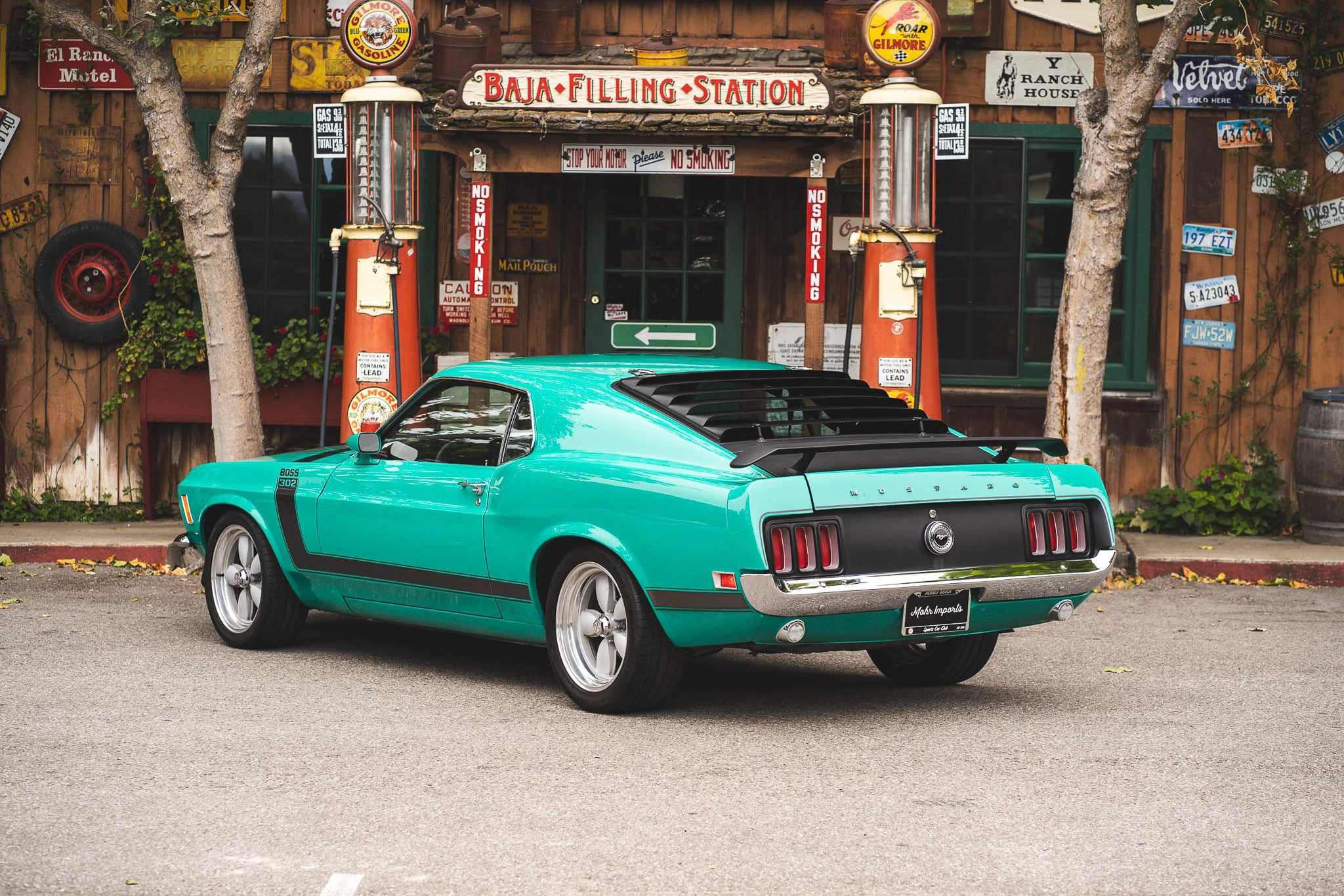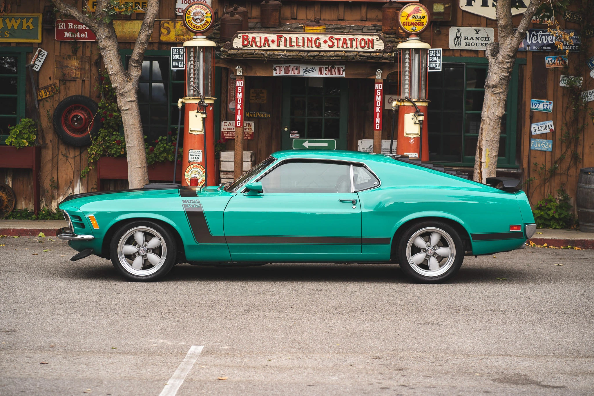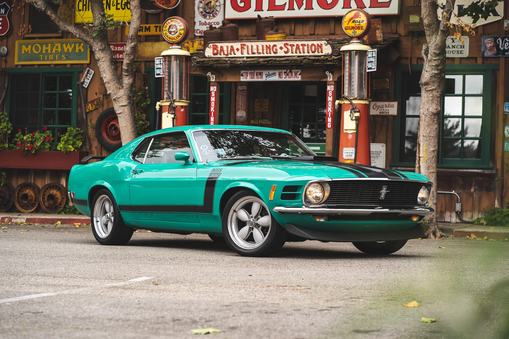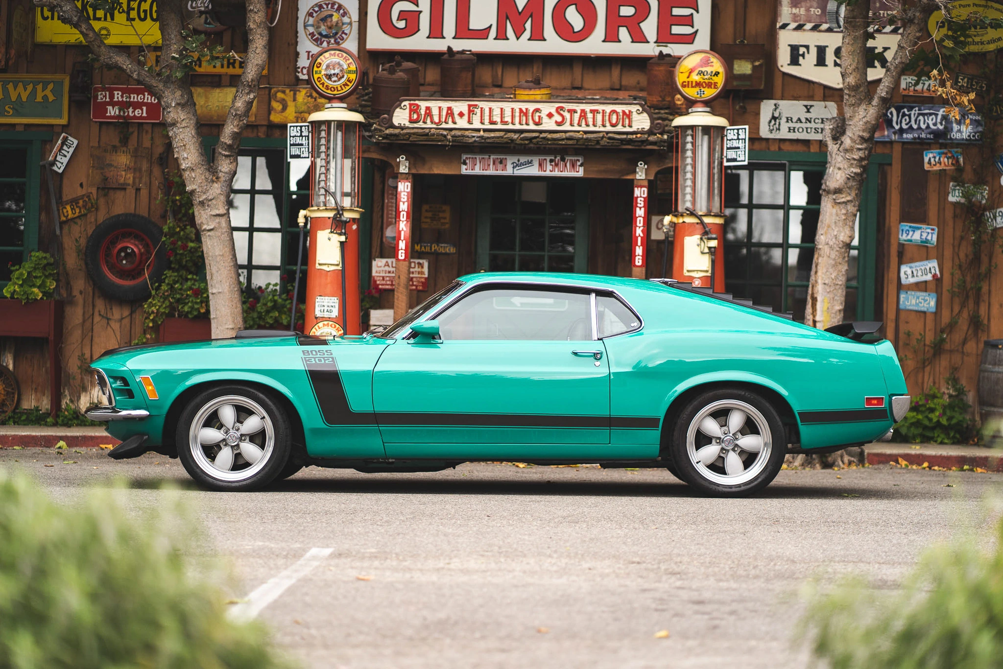 Destinées aux “branchés” de l’époque, la Boss 302 devait spermettre à Ford d’éjaculer à Donf des flots de dollars… Voilà, c’est imagé pour que vous puissiez continuer à lire… On arrive à la fin ! Cette Ford Mustang Boss 302 de 1970 a été livrée neuve à North Brothers Ford de Westland, Michigan et a été rénovée au début des années 2000, ce qui comprenait la finition de la voiture en Grabber Green (vert pâle) avec des bandes BOSS 302 noires et l’intérieur en noir.