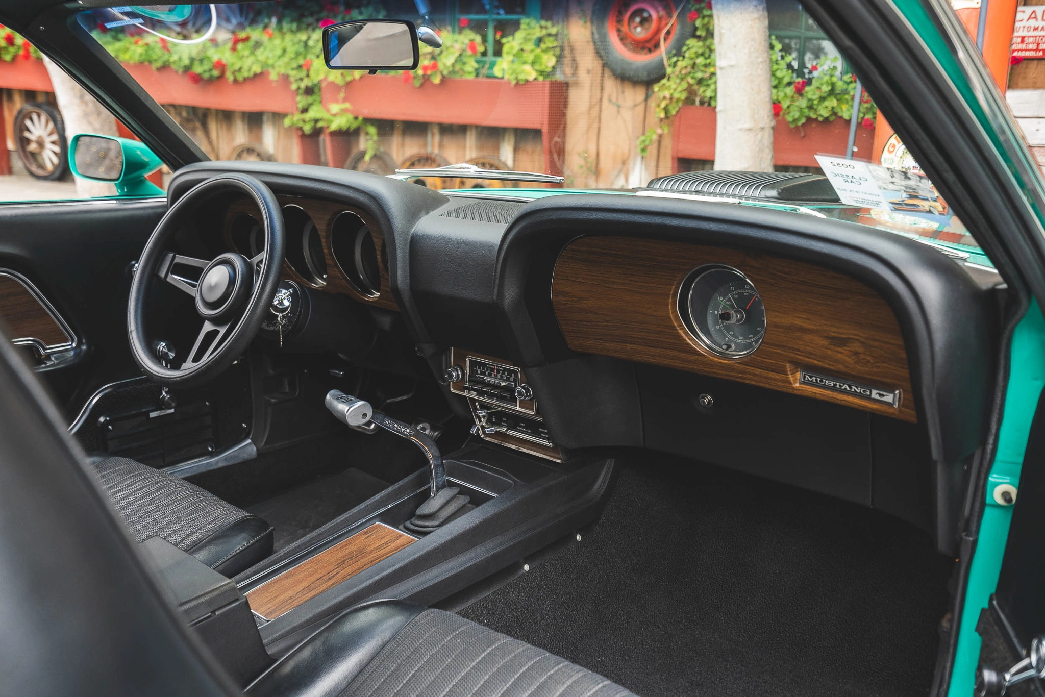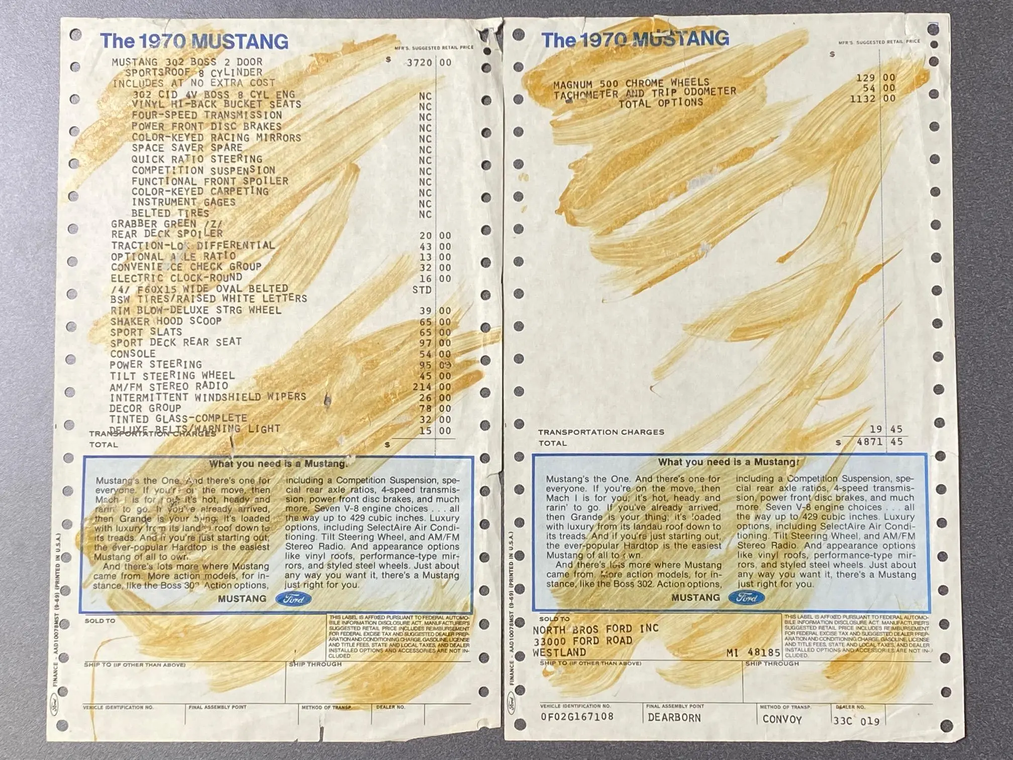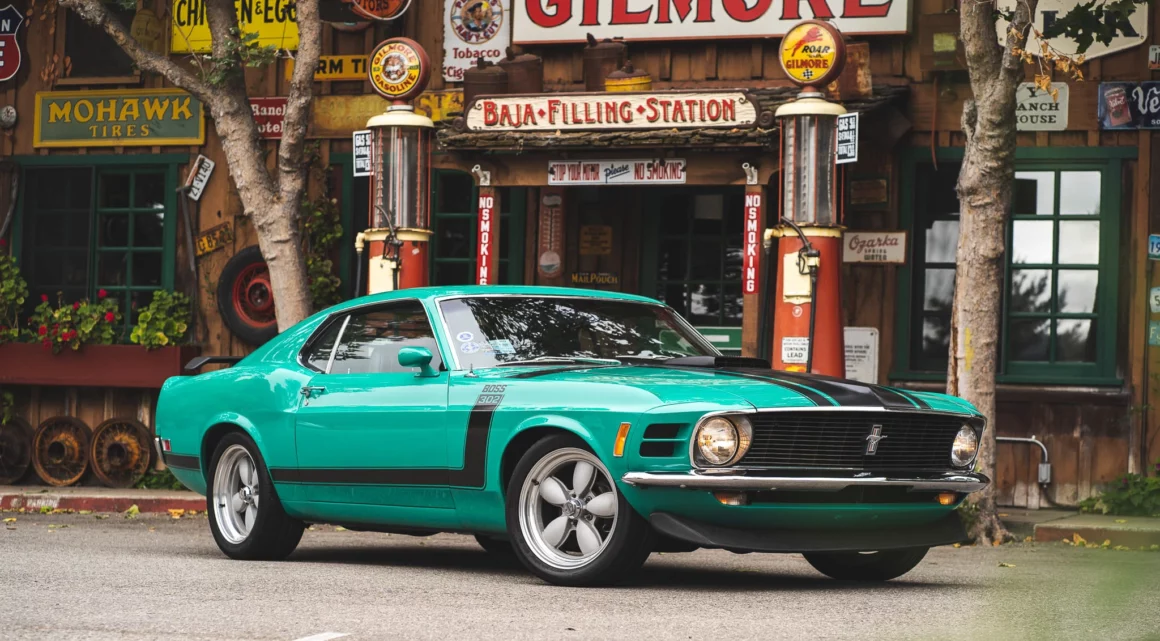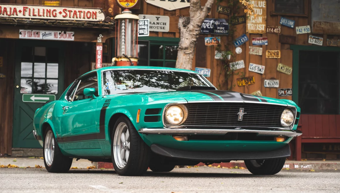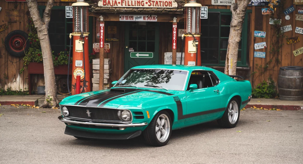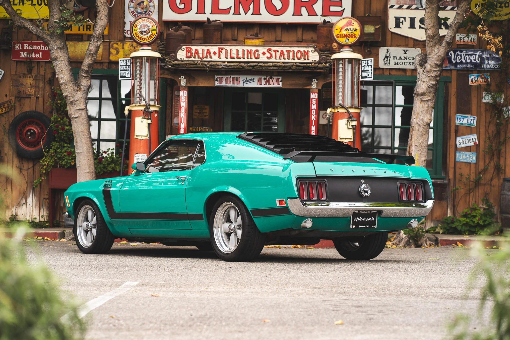 Destinées aux “branchés” de l’époque, la Boss 302 devait spermettre à Ford d’éjaculer à Donf des flots de dollars… Voilà, c’est imagé pour que vous puissiez continuer à lire… On arrive à la fin ! Cette Ford Mustang Boss 302 de 1970 a été livrée neuve à North Brothers Ford de Westland, Michigan et a été rénovée au début des années 2000, ce qui comprenait la finition de la voiture en Grabber Green (vert pâle) avec des bandes BOSS 302 noires et l’intérieur en noir.
