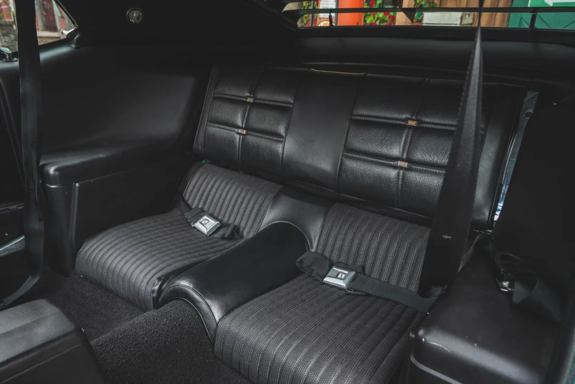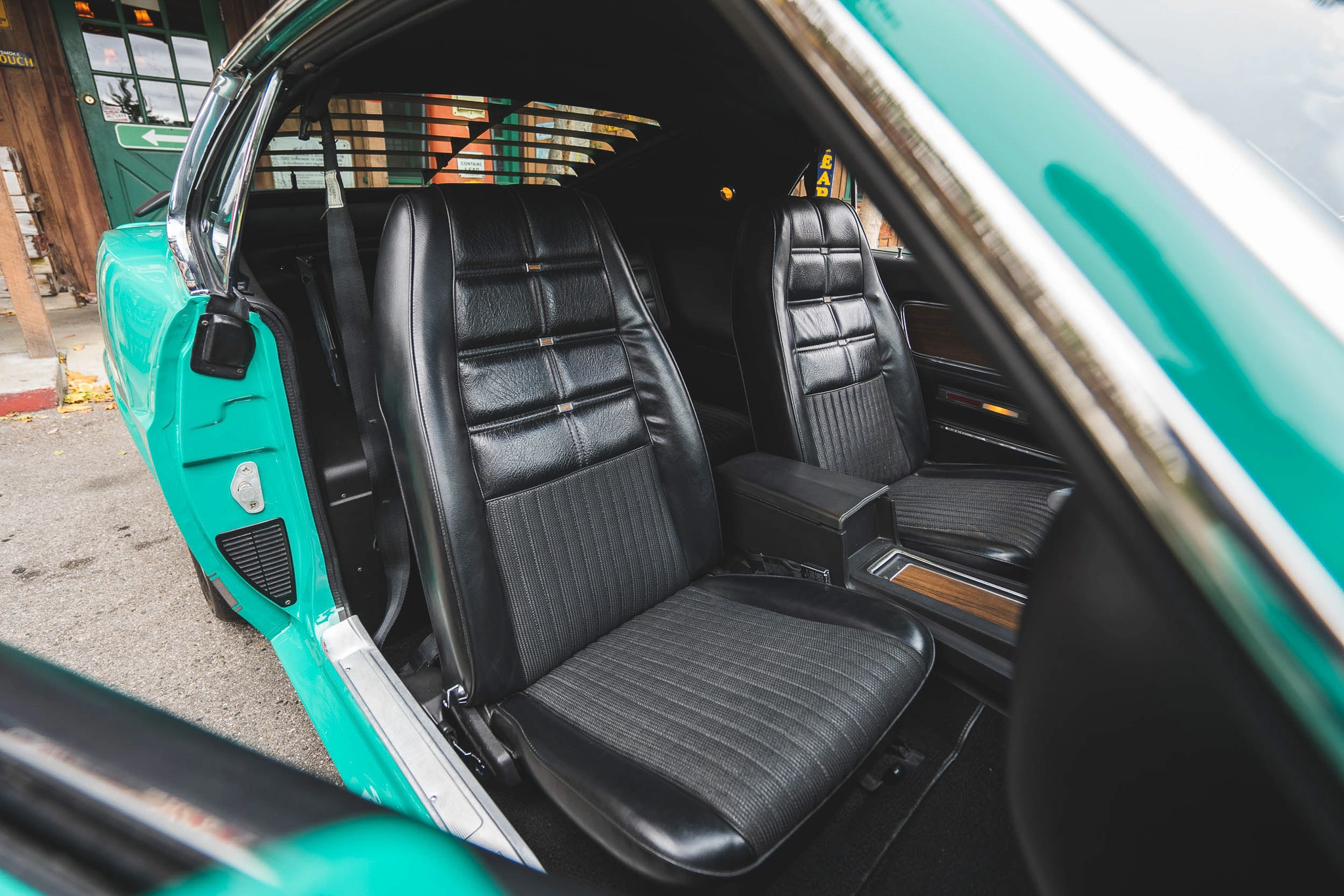 Le V8 302ci jumelé à une transmission manuelle quatre vitesses a été refait mieux que neuf, et les autres caractéristiques comprennent un essieu arrière de 9 pouces, des jantes American Racing Classic 200S de 17 pouces avec des pneus Michelin Pilot Sport 245/40 AV et 365/40 à l’arrière, des freins à disque aux quatre roues, et toute la panoplie Boss 302, becquet avant, aileron arrière, la persienne de lunette arrière, une console centrale, un levier de vitesses Hurst !