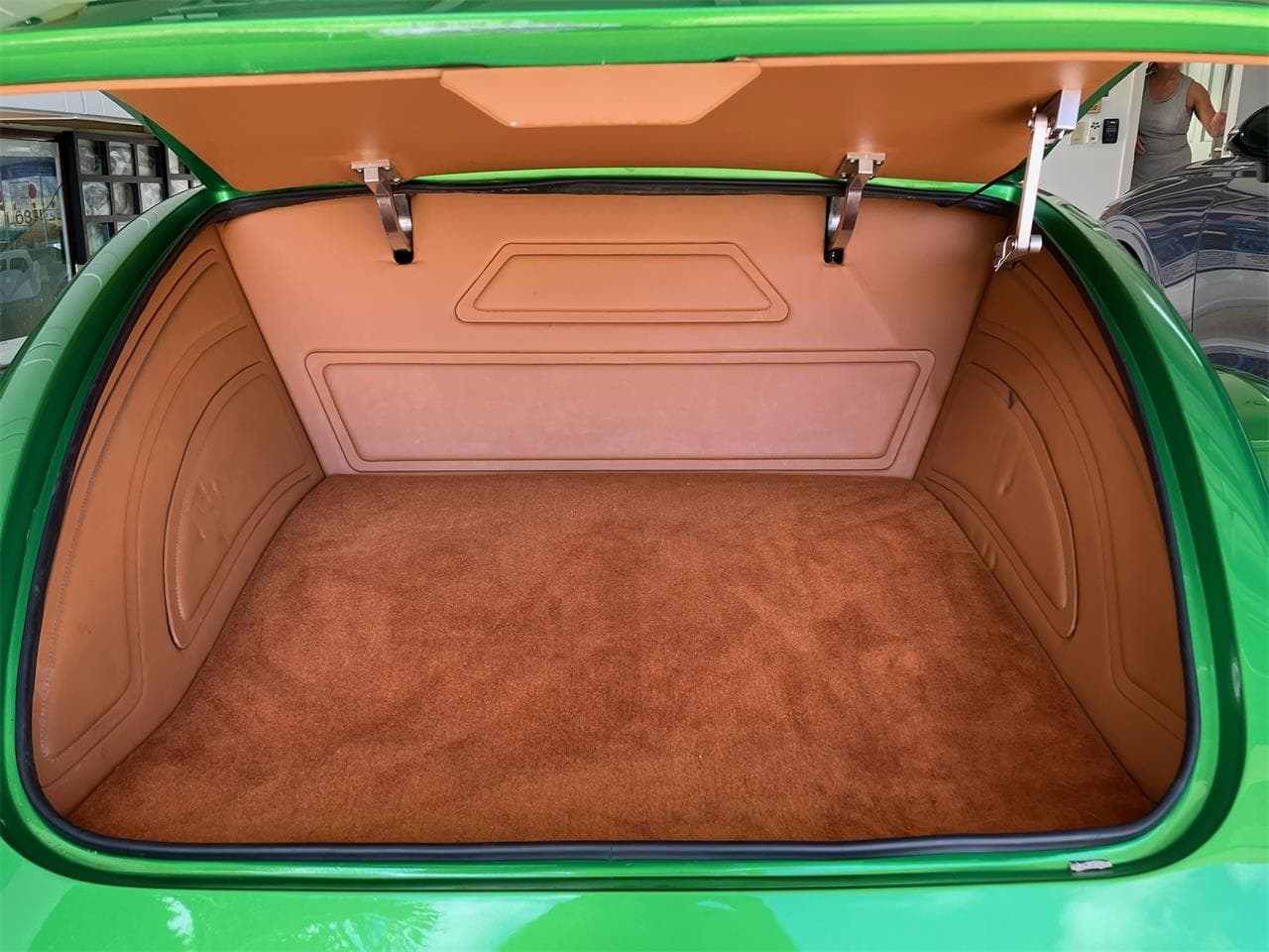Le compteur affiche seulement 4 604 miles, soit le kilométrage total de ce véhicule exceptionnel. Le conducteur bénéficie d’un volant trois branches beige et chromé avec klaxon fonctionnel, monté sur une colonne de direction inclinable chromée. Le sol est recouvert d’une moquette beige de haute qualité qui s’harmonise parfaitement avec les couleurs intérieures. À côté du siège conducteur, juste derrière le montant de la portière, se trouve un interrupteur qui commande l’ouverture électrique du coffre. Sans surprise, ce coffre est en harmonie avec l’intérieur : parois latérales et revêtement du couvercle en UltraLeather sur mesure, moquette beige neuve. Un chiffon à poussière California Duster est même fourni pour préserver l’aspect impeccable de ce véhicule qui a été vendu 85.000$ avec un dossier complet de factures et de photos de sa construction. Waouwww… Je métabolise des machines, les transformant en mythes, en fragments de civilisation, en éclats de mémoire contre l’oubli.