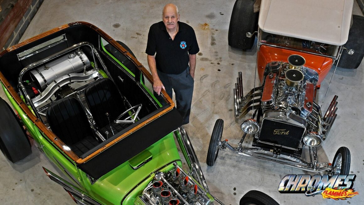 Ce peut être comparé à ce que sont les “faux amis”, des mots qui sonnent très semblables en anglais et en français, mais ne veulent nullement dire la même chose. Voilà, je termine ce trop long texte sur l’Amérique par la présentation d’un Hot Rod vert qui est là-bas emblématique… “Mes créations ont toujours eu un côté cartoon. Je puise mon inspiration dans mon enfance. Je lis le magazine CARtoons depuis sa parution en kiosque, et je pense que cela se ressent dans mon travail de constructeur de Hot Rod’s”, m’a expliqué Randy Bianchi à propos de sa collection impressionnante de bolides surpuissants. Il est unique en son genre, et le style de ses Hot Rod’s reflète son originalité débridée. Il y a quelque chose de spécial dans les créations Hot Rod’s de Randy, conçus avec une quantité impressionnante de pièces fabriquées “maison”, méticuleusement assemblées pour former un ensemble parfait et surpuissant. Randy a consacré toute sa carrière à poursuivre le rêve qu’il nourrissait enfant, lorsqu’il grandissait dans la banlieue de Cliffside Park, dans le New Jersey, près de New York : “À mon retour de l’armée, après une mission à l’étranger, j’ai ouvert mon atelier et j’ai commencé à construire des Hot Rod’s pour des clients. C’était mon rêve d’adolescent”… Une fois installé chez lui après son service militaire, Randy s’est concentré sur son objectif et n’a jamais dévié de sa trajectoire. Entre deux commandes, le jeune passionné de Hot Rod’s trouva le temps de se construire l’un des Ford T-bucket parmi les plus emblématiques. Son Ford’23 est connu dans le monde entier sous le nom de “Sunkist Model T”… “C’était le Hot Rod idéal, construit au moment idéal pour moi. Je l’ai préparé avec une puissance démesurée et un look extravagant, avec des gros pneus slicks à l’arrière” … Au fil des ans, Randy a parcouru de longues distances à bord de son super T-Bucket pour participer à de nombreux salons automobiles, et il fit même l’aller-retour entre son domicile dans le New Jersey et la Californie.